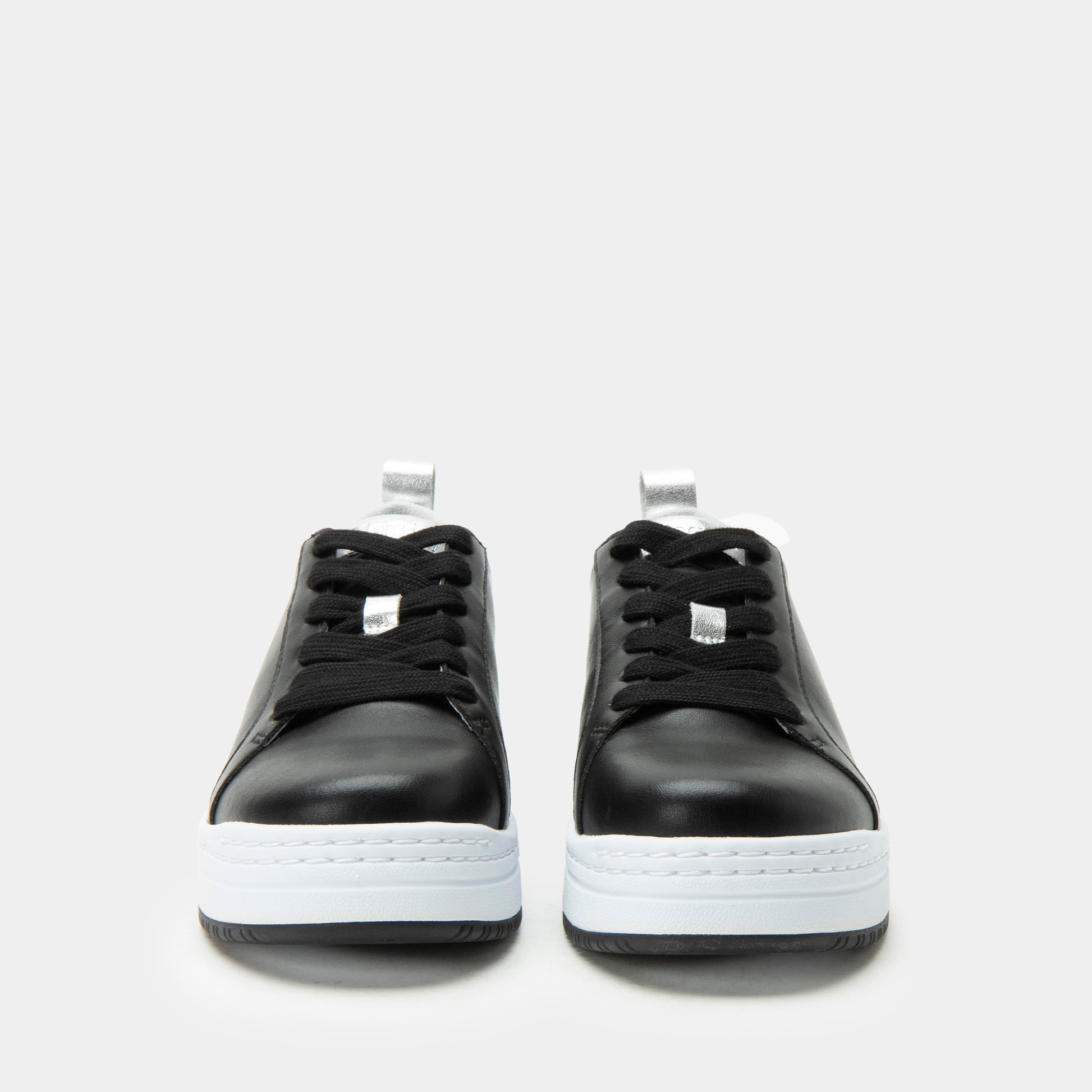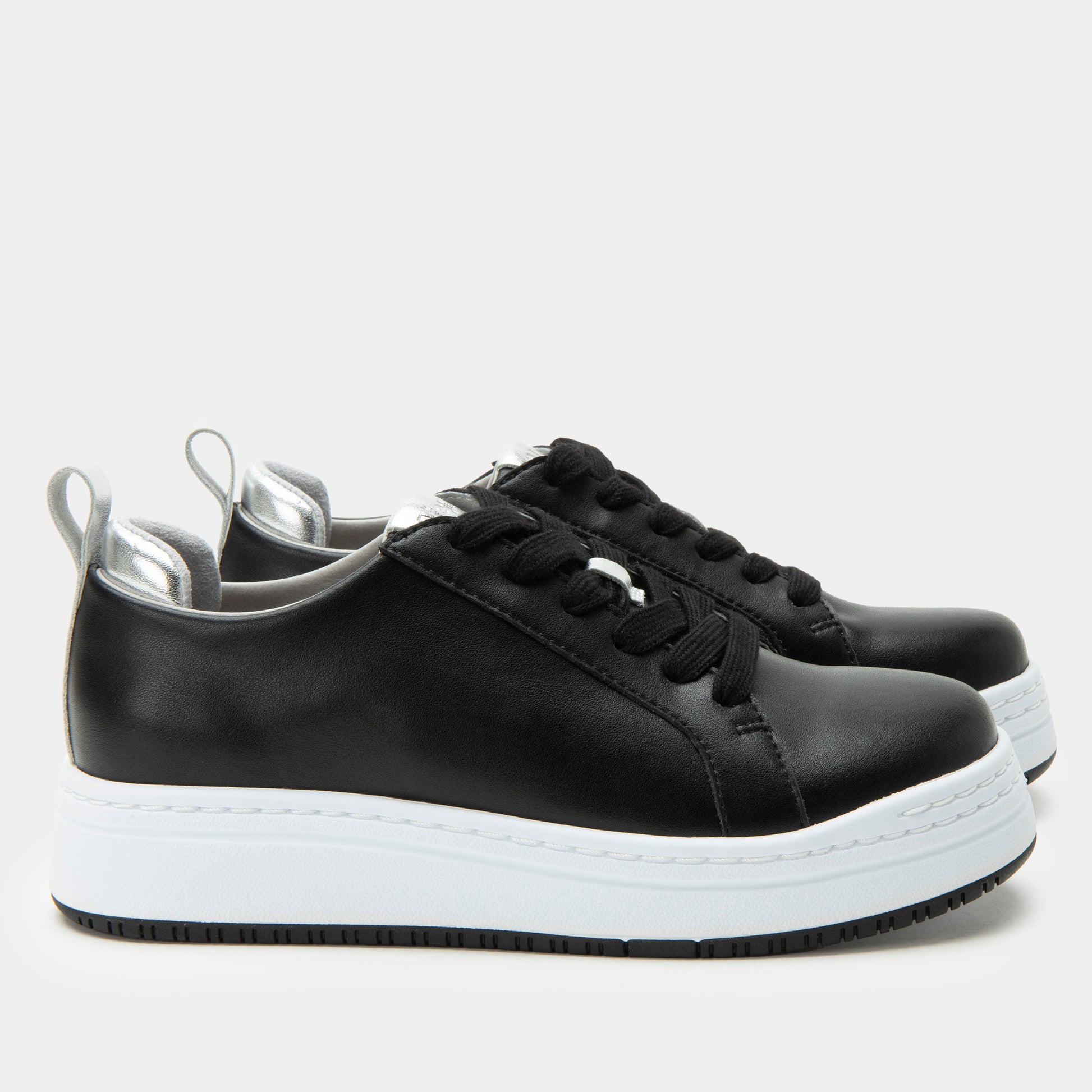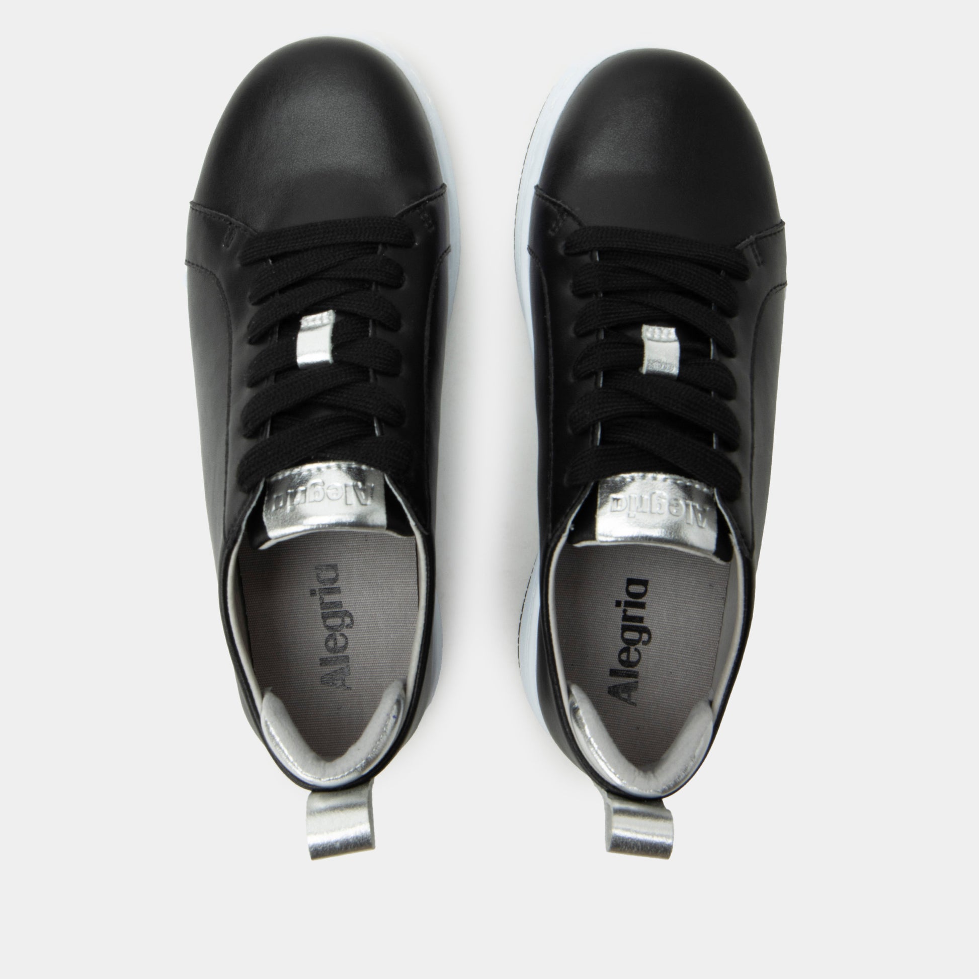 Step out in sleek style with the Alegria Adysen in Black. This versatile leather sneaker blends modern fashion with all-day comfort, making it an essential for any wardrobe. The smooth black leather upper is paired with a metallic counter loop and cushioned footbed, while the lightweight, slip-resistant outsole ensures lasting support and traction from morning to night.Additional Benefits: