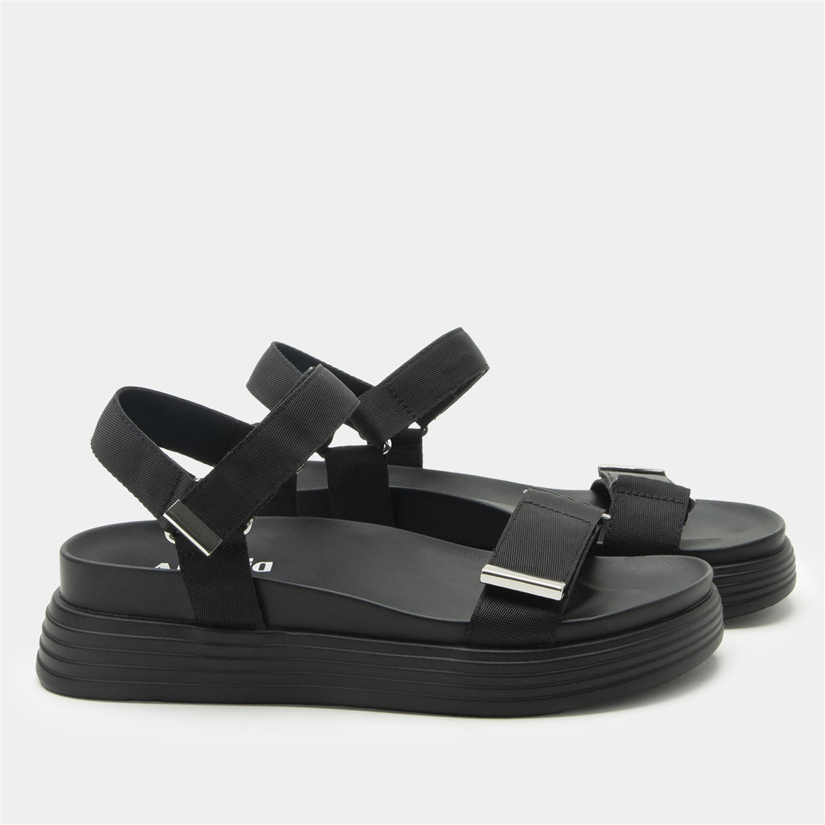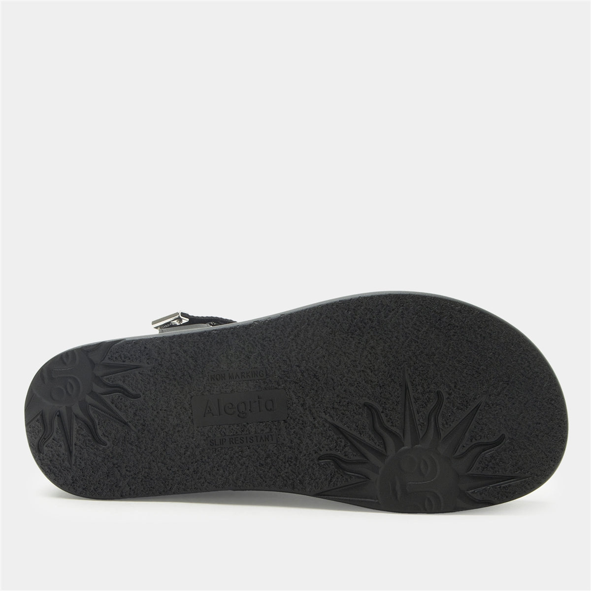 Experience effortless style and all-day comfort with the Alegria Allyson Black Sandals. Designed for versatility and function, these sandals feature a sleek Black textile upper that pairs seamlessly with any wardrobe. Whether for everyday wear or outdoor adventures, the Allyson provides the support you need with a contemporary look. Built with dual-density construction, these sandals offer a soft molded polyurethane insole with integrated arch support for superior cushioning. The lightweight, non-flexing polyurethane outsole ensures stability, making each step feel secure. Two adjustable hook-and-loop closures with metallic hardware allow for a custom fit, while the water-friendly design ensures durability in various conditions. A slip-resistant and non-marking outsole enhances traction on different surfaces, making these sandals the perfect choice for comfort and function.Why You Will Love the Alegria Allyson Black Sandals