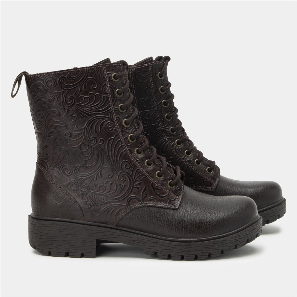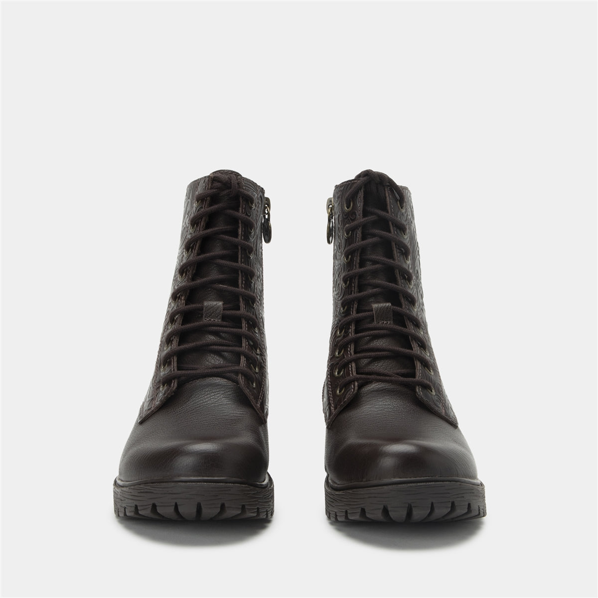Industrial styling takes a feminine turn in this water-resistant leather lace-up boot that fashionably rises to mid-calf. It incorporates a back tab and inside zipper making it a breeze to slip on and off. Stand securely on a slip-resistant lug outsole.Additional Benefits: