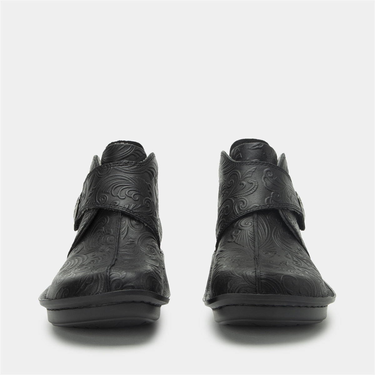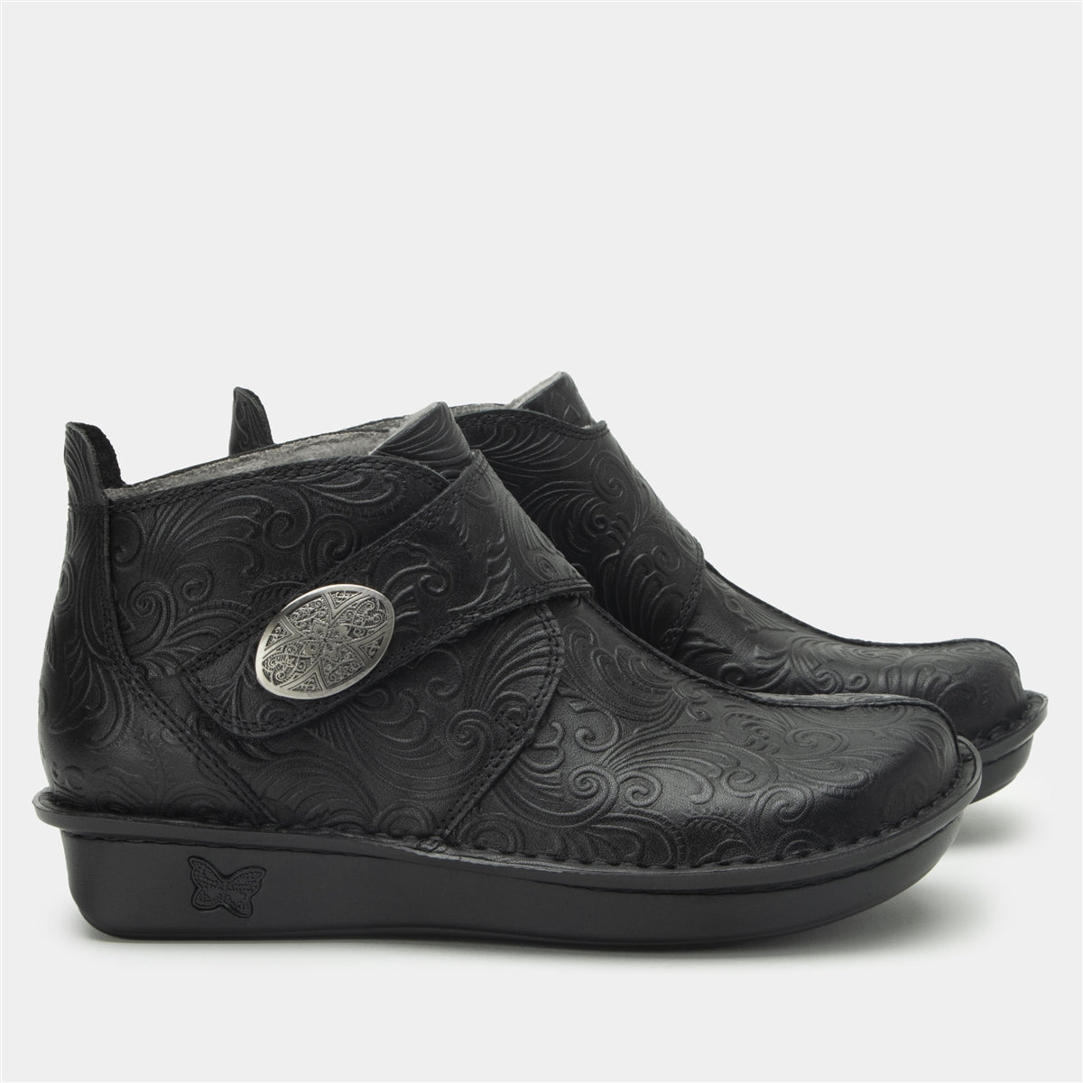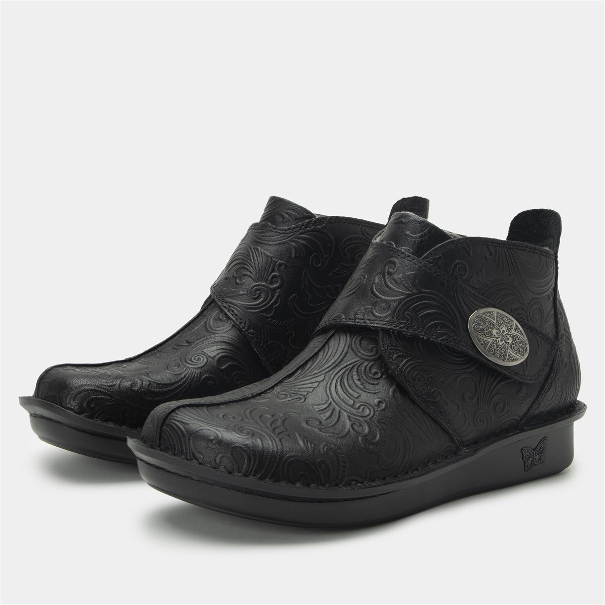 The Alegria Caiti Night N Gale orthopedic support boots are the perfect combination of style andcomfort. With a crossover strap and matching pattern buckle, these boots will add a touch of flair toany outfit. Whether you're at work or heading out for a night on the town, the soft inner lining and mini rocker outsole will keep your feet energized and comfortable all day long. These boots are versatile enough to pair with your favorite skirts of all lengths or show off with your skinny jeans. Why compromise on fashion or support? These boots have got you covered. Order your orthopedic support shoes today!Additional Benefits: