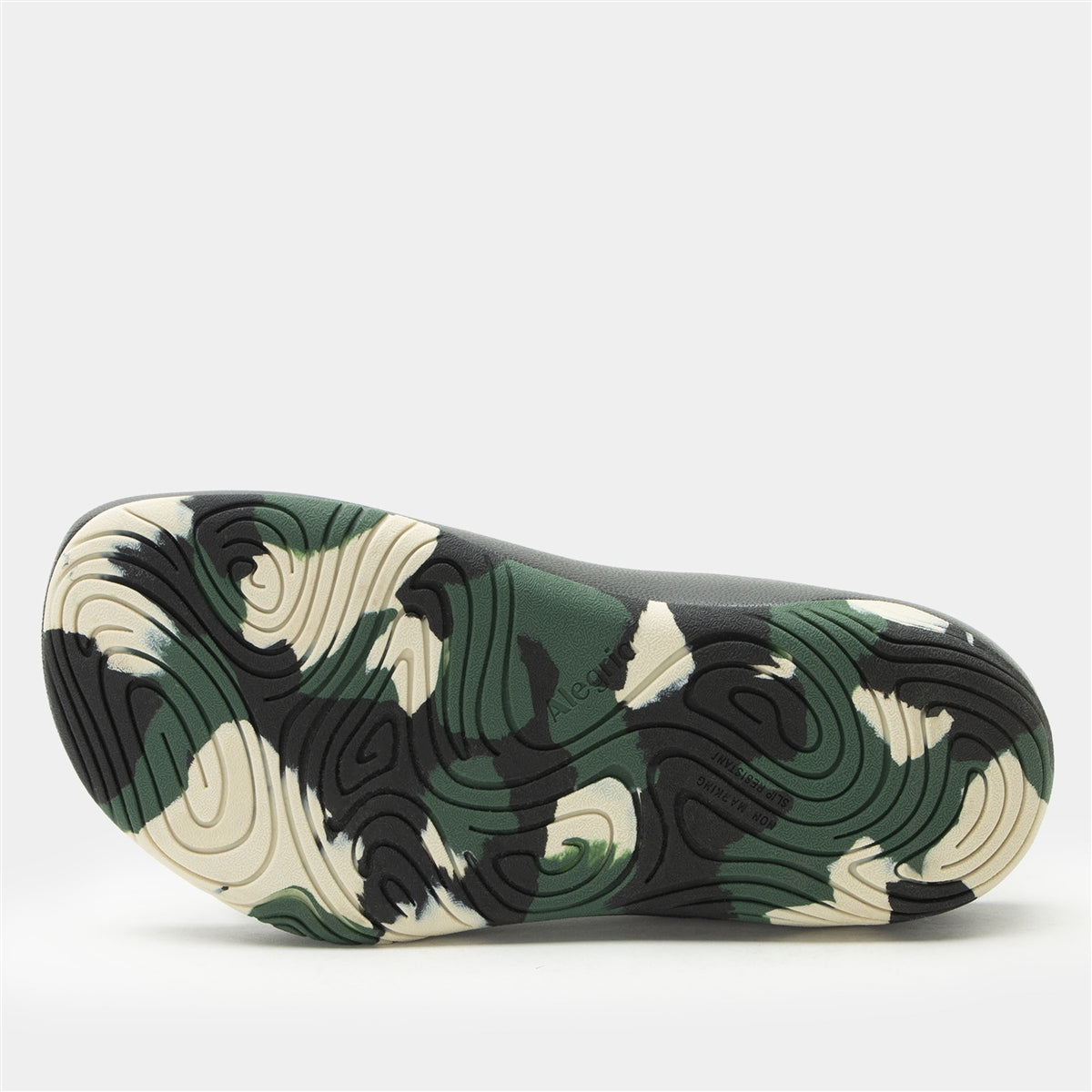 Enjoy lightweight comfort and effortless style with the Alegria Crea8tion Kahki Sandals, designed for those who seek a perfect balance of fashion and foot health. The unique Kahki color blends black, army green, and tan for a rugged and modern look, while the camo foot bottom adds a bold touch. With Alegria Fit contouring, these sandals feature a design that follows the foots natural shape, allowing for relaxed movement and a comfortable fit. The built in molded EVA footbed delivers exceptional arch support, helping to reduce foot fatigue and enhance stability.Why You Will Love the Alegria Crea8tion Kahki Sandals