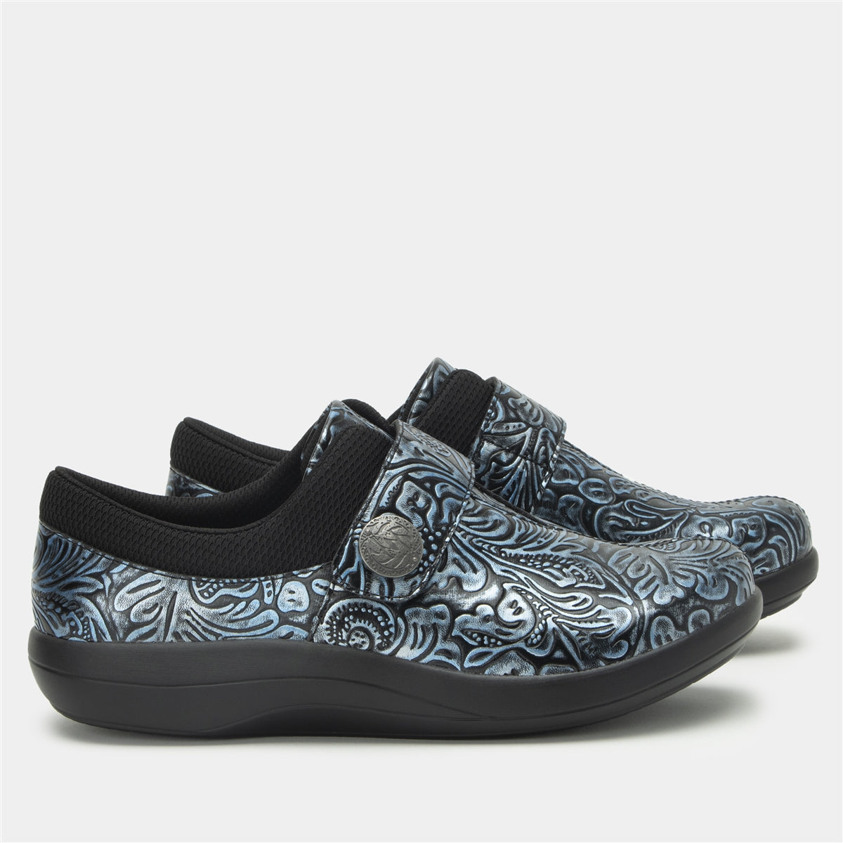 Keep it carefree with this vegan leather slip-on set on a lightweight slip-resistant polyurethane sport rocker outsole. Add an adjustable hook-and-loop close strap with decorative metal ornament for a customized fit, while a padded collar and removable footbed made of polyurethane, cork, and memory foam maximizes the comfort and support.