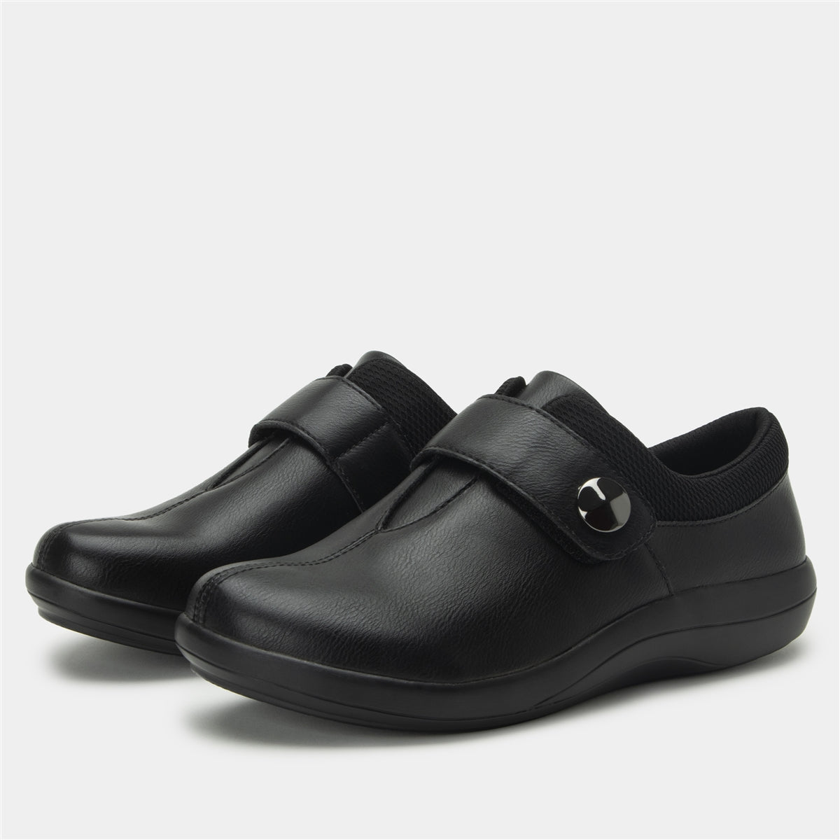 Keep it carefree with this vegan leather slip-on set on a lightweight slip-resistant polyurethane sport rocker outsole. Add an adjustable hook-and-loop close strap with decorative metal ornament for a customized fit, while a padded collar and removable footbed made of polyurethane, cork, and memory foam maximizes the comfort and support.