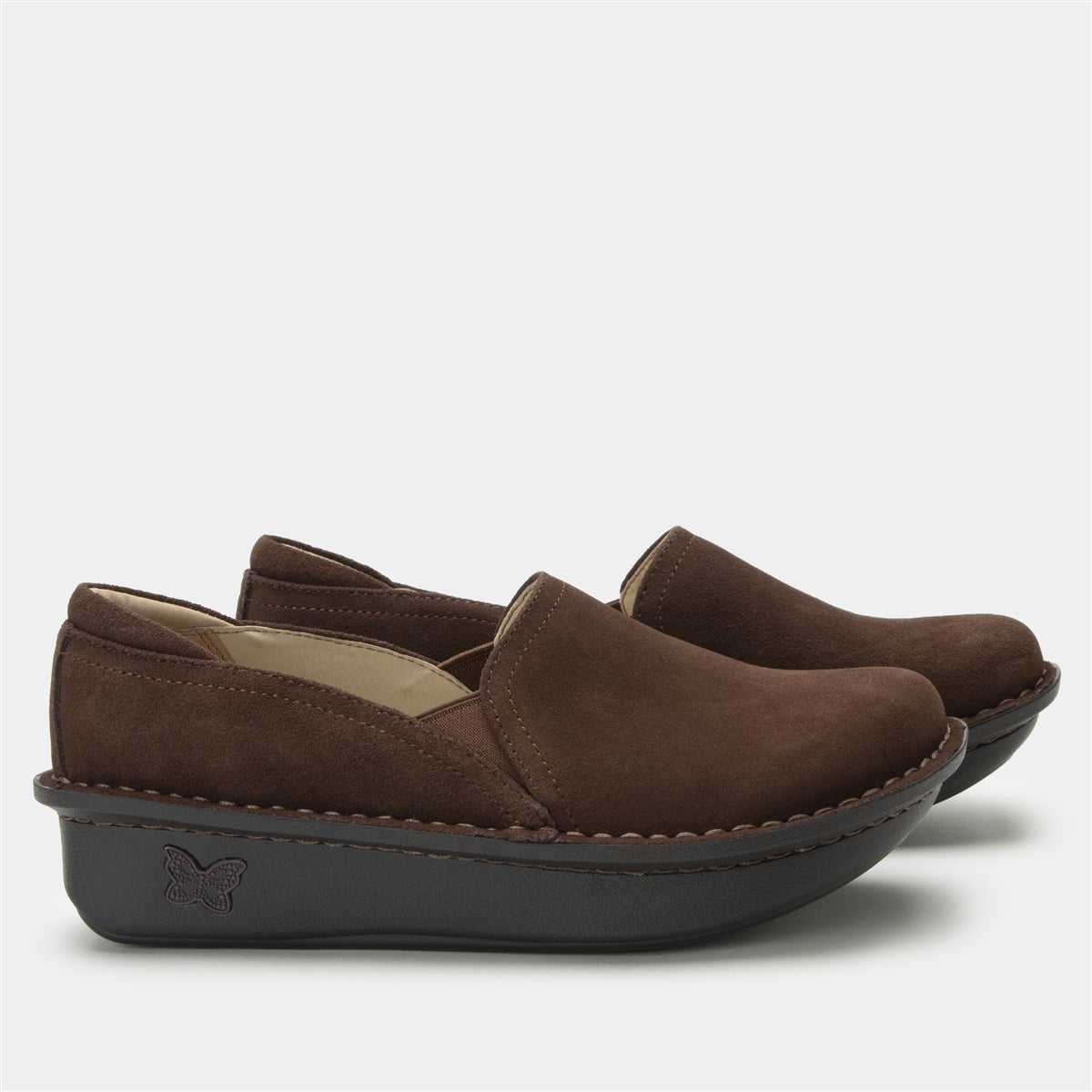 The Alegria Debra Cocoa is the perfect choice for those looking for a combination of comfort and style. Slip on these closed-heel clogs with ease and experience the ultimate comfort and style. The classic cocoa color adds a touch of professionalism to any outfit. Made with a genuine leather upper and double elastic gores, these slip-ons offer a perfect fit and make it easy to slip them on and off. Do not wait any longer, place your order for this rocker bottom orthopedic shoe today and give your feet the love and support they deserve.Additional Benefits: