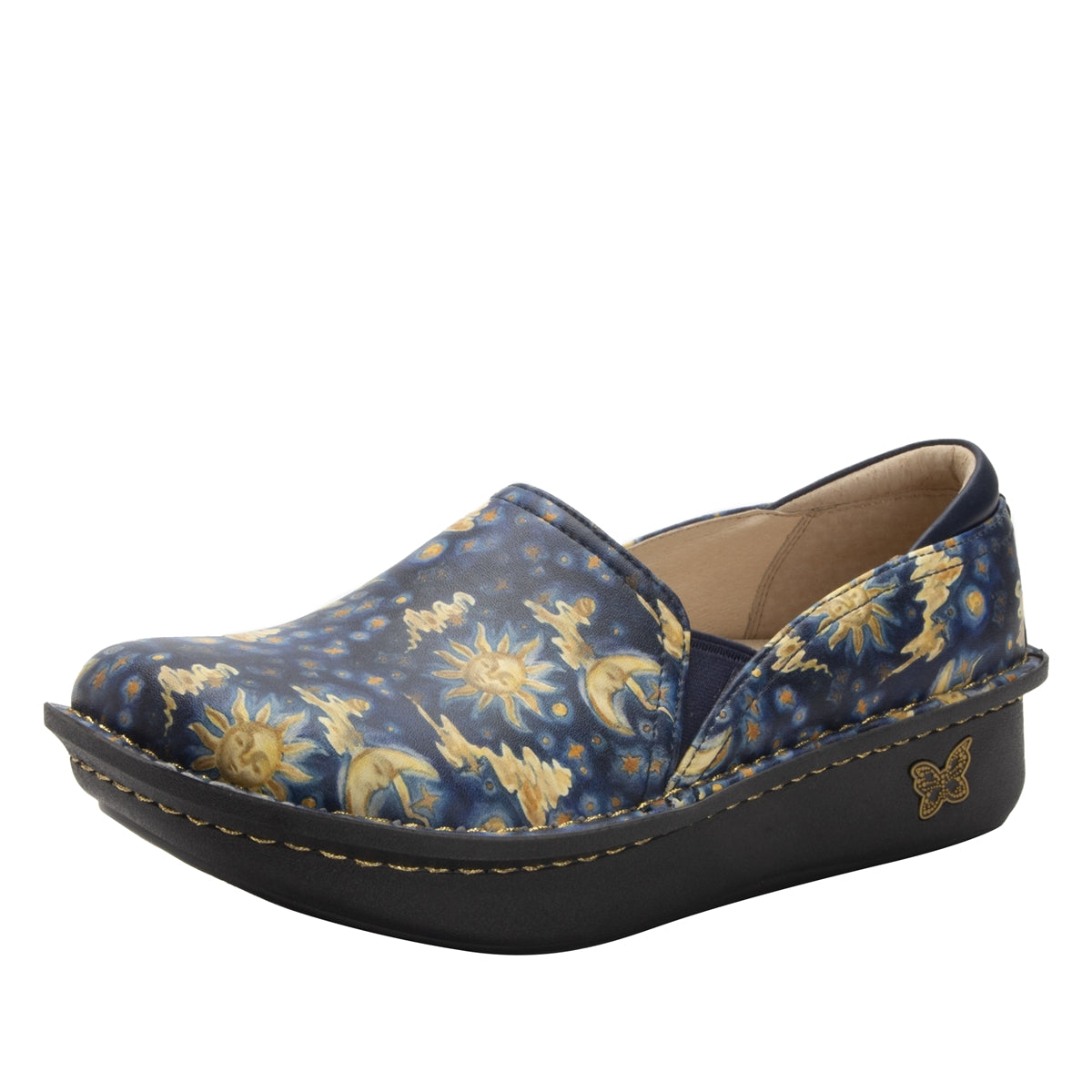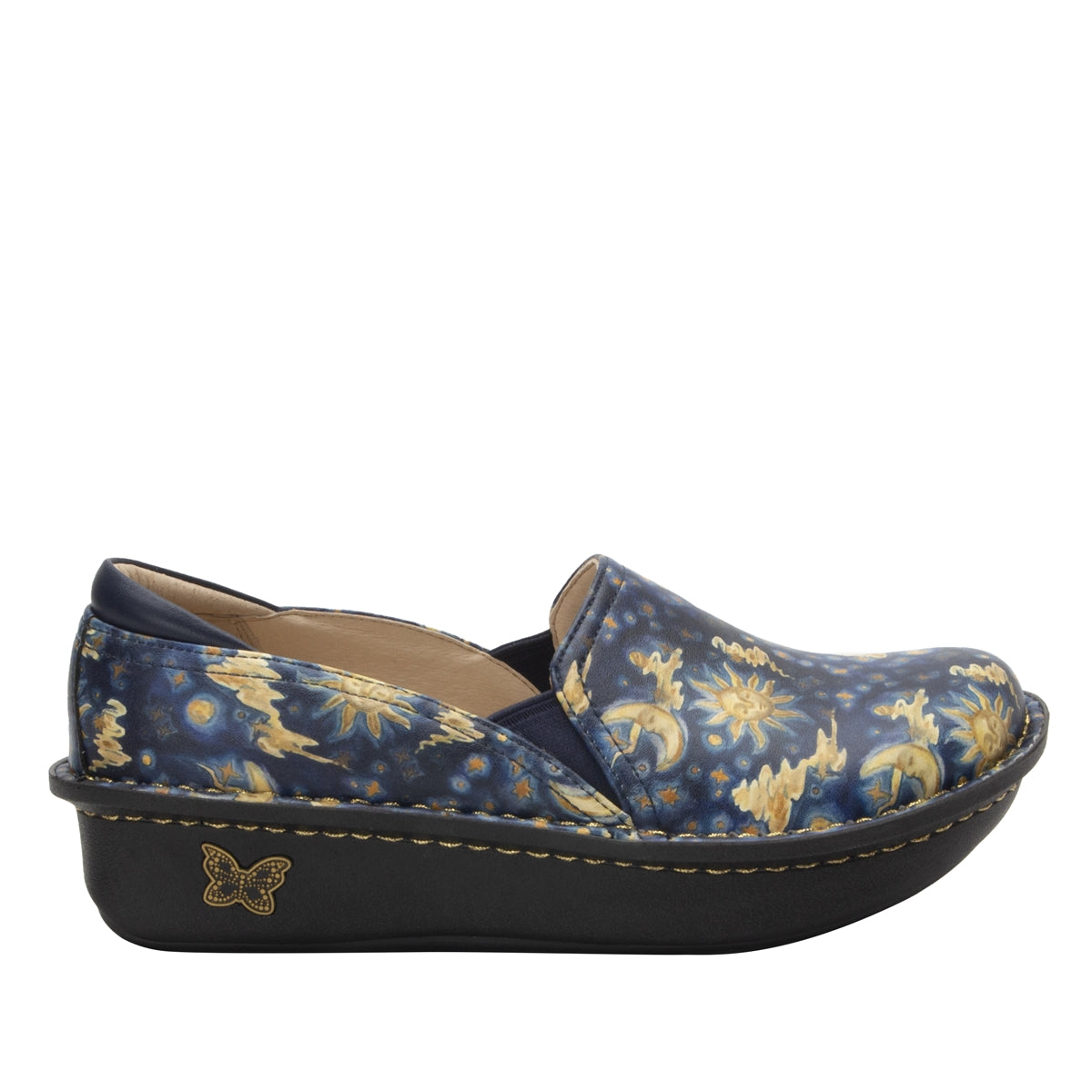 Slip on the Debra with ease, this closed-heel slip on clog style is designed to fit you perfectly. Featured in a beautiful original hand-drawn design on genuine leather upper, with double elastic gores for easy slip on and off.