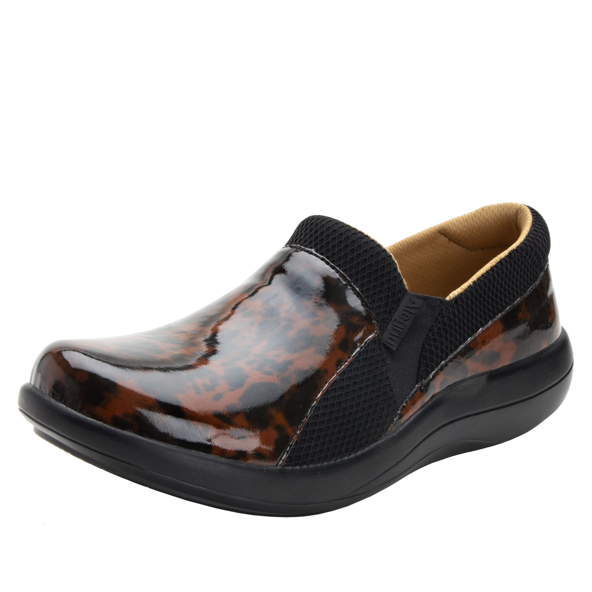 There’s nothing slow about the styling look of the Duette Tortoise Sport Rocker shoe! This contemporary take on a classic print will take your style points from 0-60 in nothing flat and keep you comfortable and supported, too! Warm brown tones in caramel and umber let you pair this classy shoe with lots of different color attire. The sport rocker outsole is made of a dual-density polyurethane that increases your support, balances weight distribution, provides excellent shock absorption and gives you better rebound with each step. Slip-resistant and stain-resistant, you’ll be steady on your feet no matter how fast your day goes and you’ll look wonderful, too. Double elastic gores make the Duette easy to slip into and out of. Perfect for multi-tasking, the Duette is a great choice for nurses and busy professionals of all types. Enjoy a pair today!