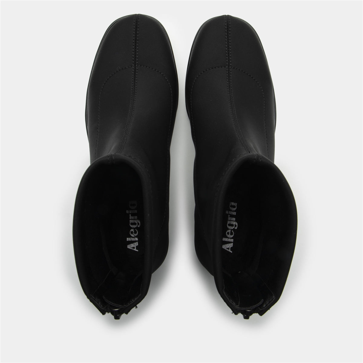 Introducing the Alegria Harmoni bootie in sleek black, a blend of high fashion and supreme comfort. Featuring a Dream Fit stretch upper, a NEW Signature Arch footbed, and a slip-resistant outsole, this bootie delivers the classic Alegria comfort in a modern stylish silhouette. With a counter zipper for easy on and off, you will enjoy both the protective heel cup and the chic one and three quarter inch heel, making it perfect for all day wear.Additional Benefits: