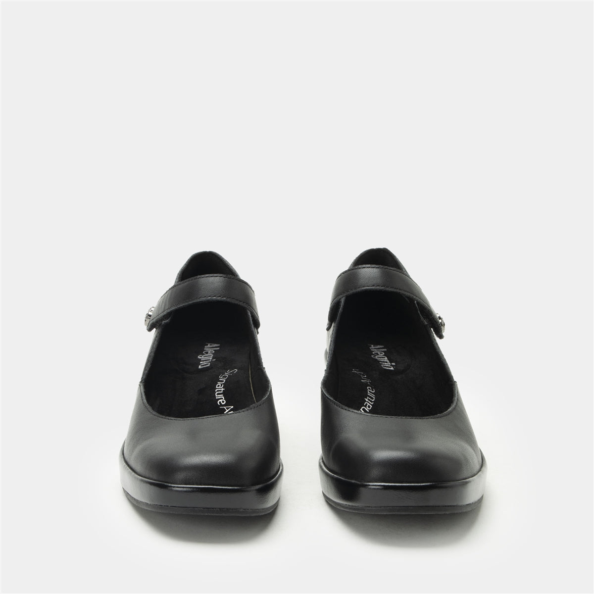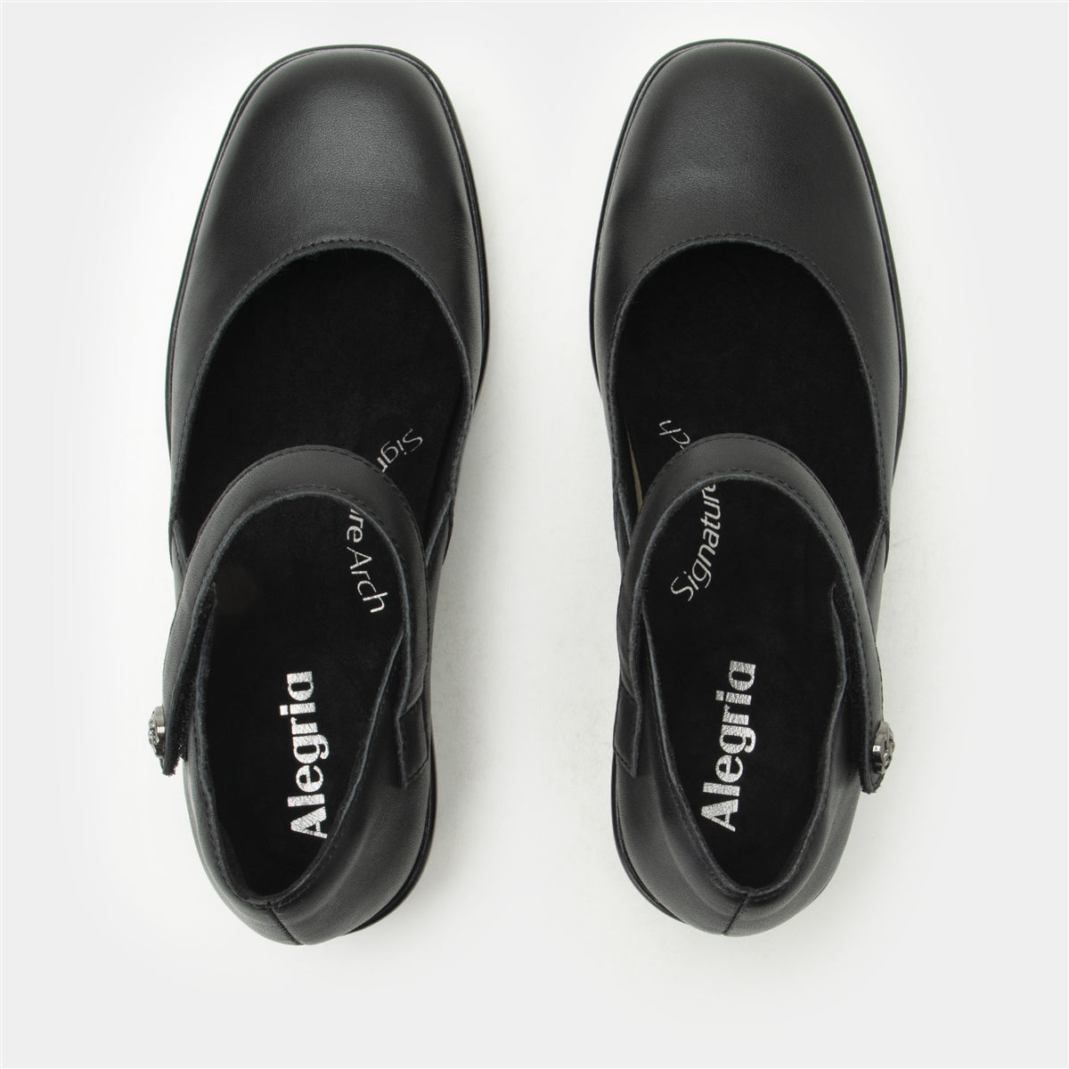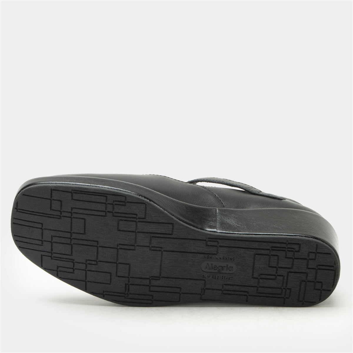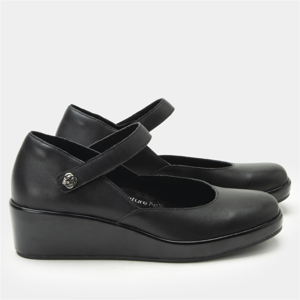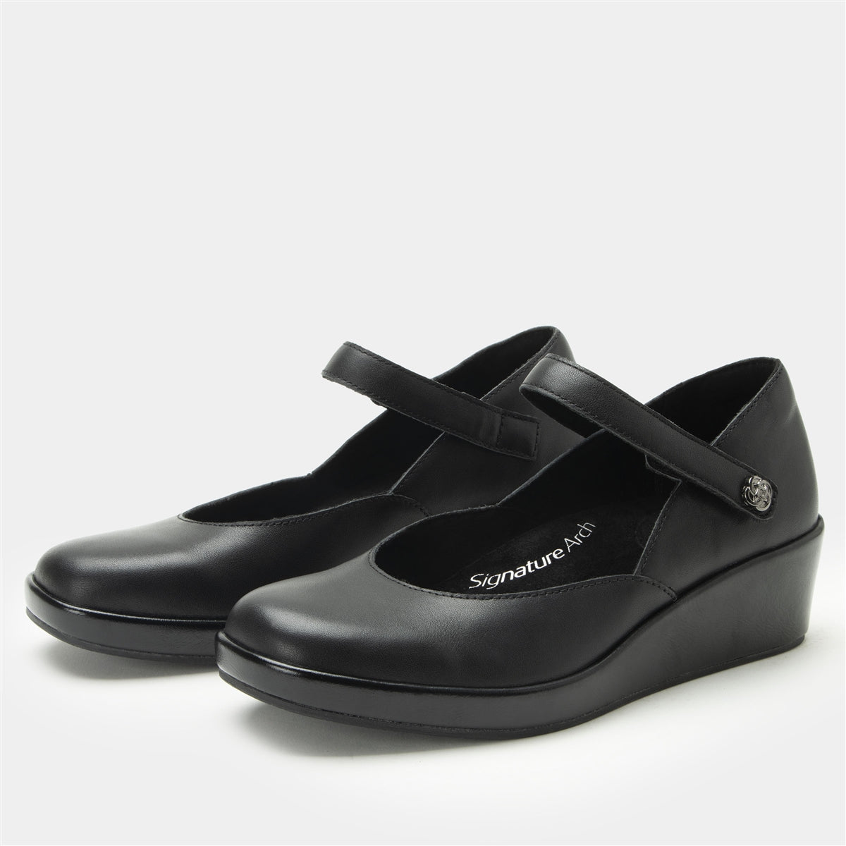 The Alegria Hayes Black brings modern elegance and unmatched comfort together in a stylish wedge design. Featuring premium leather uppers and an adjustable strap with a decorative button closure, this shoe ensures a secure and custom fit. Built on the advanced Tri-Form wedge outsole from Alegria, the Hayes delivers exceptional support, stability, and shock absorption for all-day comfort. The removable dual-density Signature Arch footbed promotes foot health, making this versatile style perfect for work or casual outings.Additional Benefits: