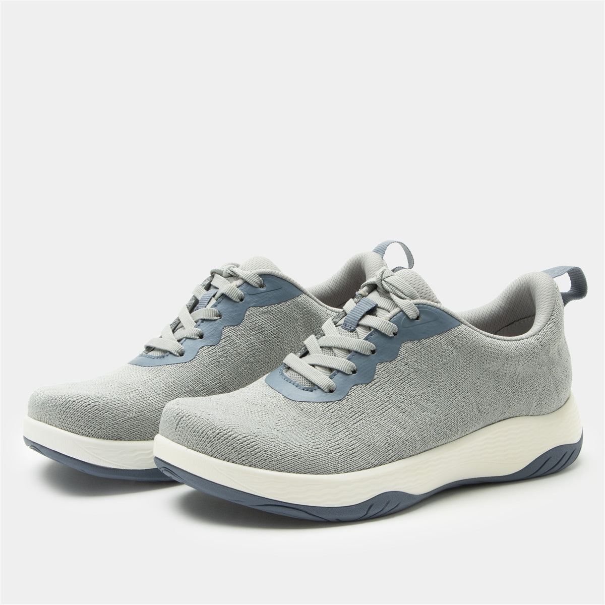 The Alegria IN8 Muted Grey blends casual elegance with all-day comfort. Designed with a breathable knit upper in soft grey and complemented by subtle blue accents, this sneaker offers a stylish, versatile look that pairs effortlessly with any outfit.