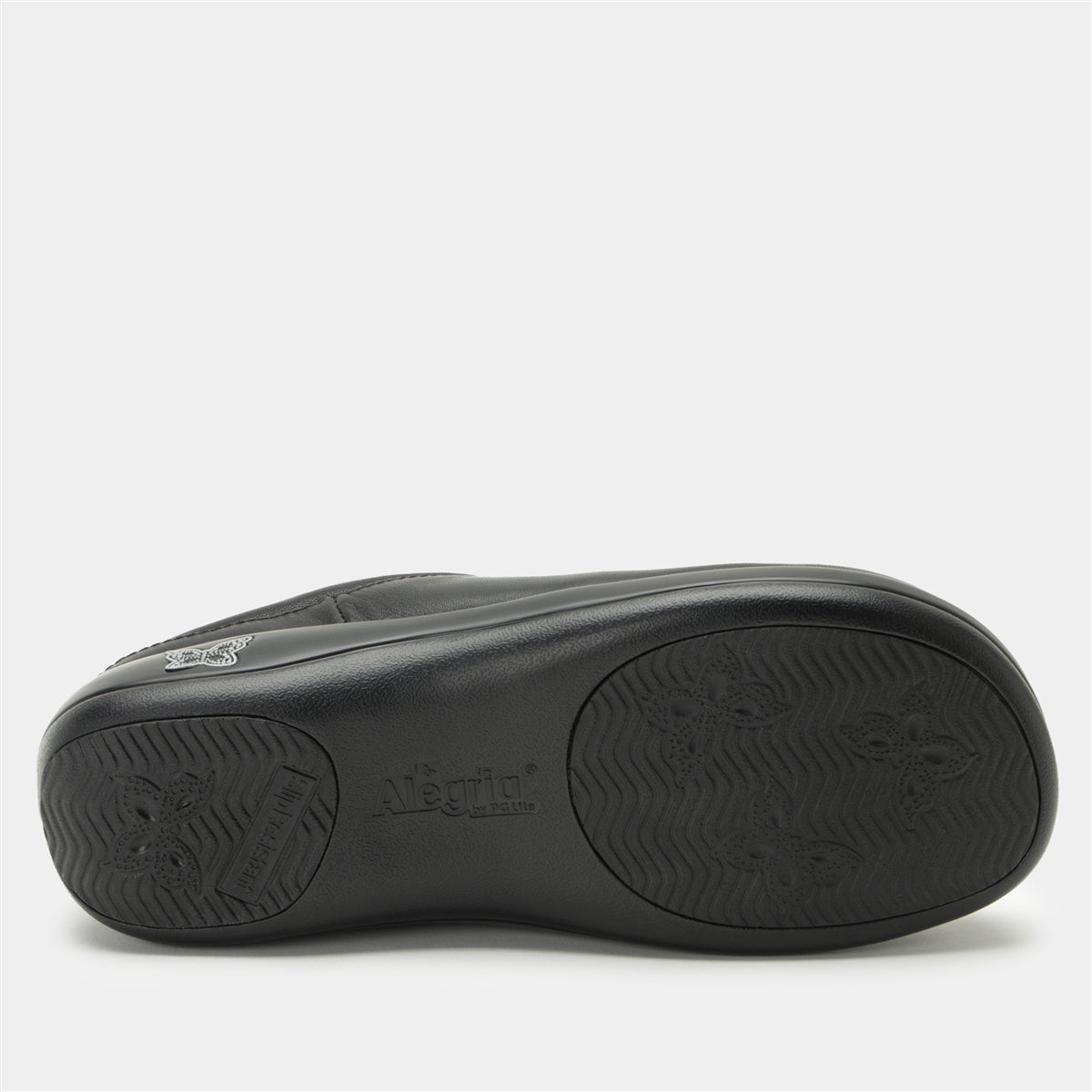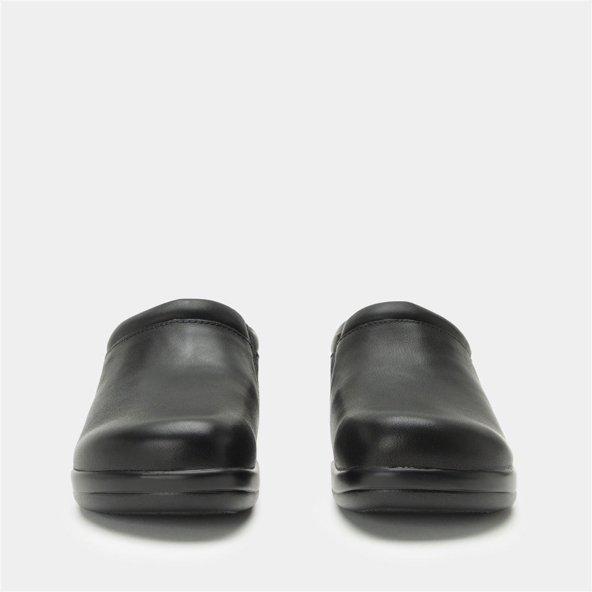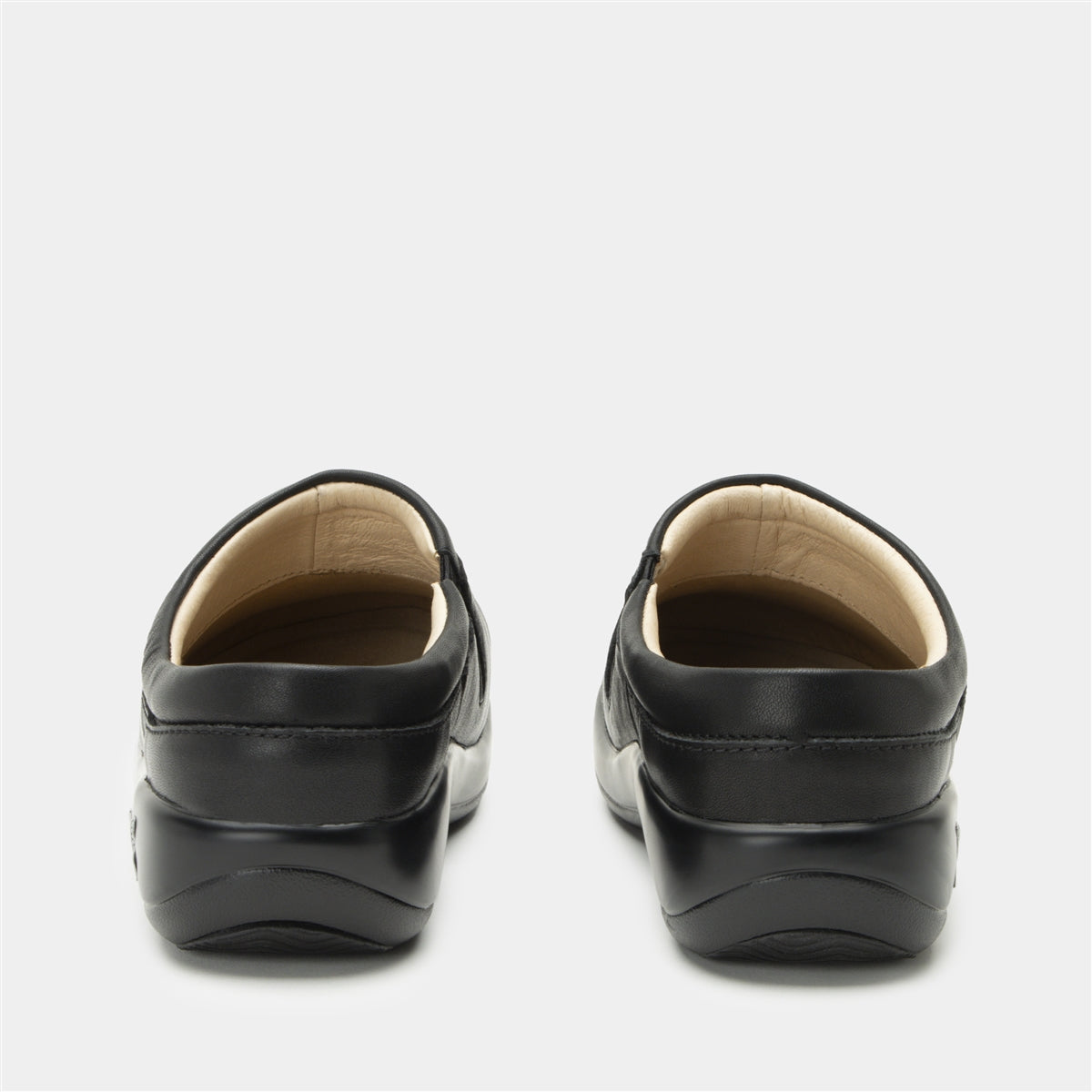 Every woman needs a pair of truly comfortable black shoes that she can slip on with just about anything. Don't have a pair in your closet? Check out the Alegria Kayla Black Leather. Kayla Black Leather is part of the Career Fashion PRO Collection. Being a member of this club means that it has everything you want and need in a shoe. The leather upper is stain resistant while the outsole is slip resistant--a great combination. It also has a padded collar and a partial heel cap. This fantastic open back mule also comes with removable insoles that take comfort to a new level. With shoe you just might find yourself wearing them everyday--that's comfort!Additional Benefits: