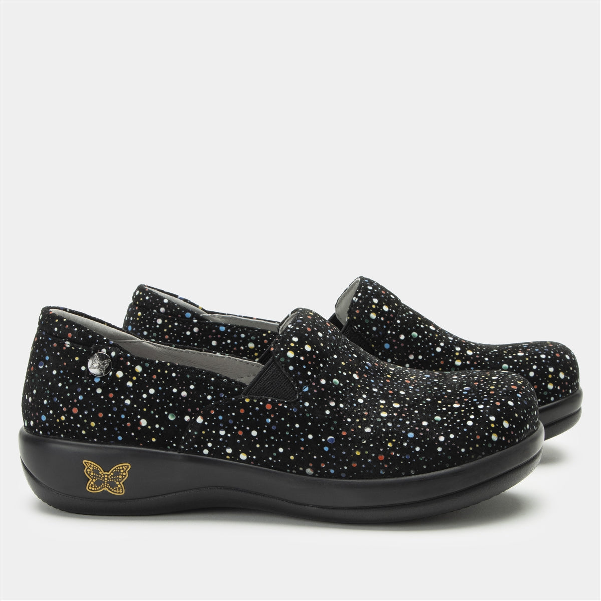 Perfect for nurses, teachers, retail workers and anyone who works on their feet all shift, the Keli features double elastic gores for easy on-and-off wear, a padded collar at the back for ankle support, and the signature removable and replaceable Alegria footbed for extra support and comfort. A 1 1/4-inch heel height on the career casual outsole gives you just the right amount of height while still protecting you from slick surfaces with its slip-resistant construction.Features you'll find in all Alegria Keli shoes include: