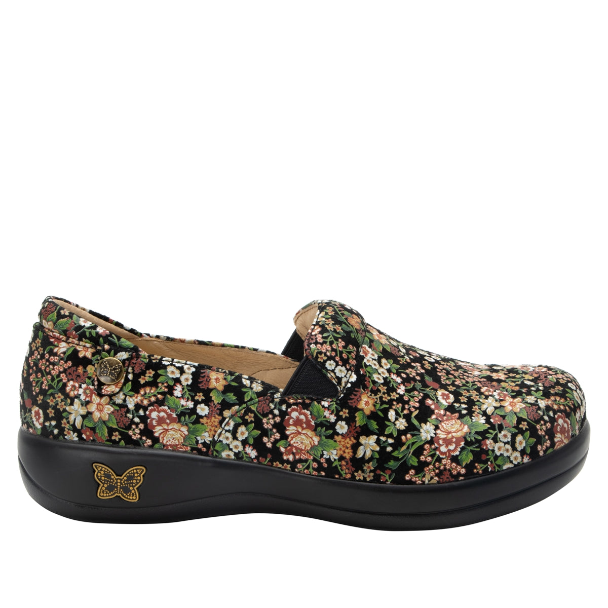 Perfect for nurses, teachers, retail workers and anyone who works on their feet all shift, the Keli features double elastic gores for easy on-and-off wear, a padded collar at the back for ankle support, and the signature removable and replaceable Alegria footbed for extra support and comfort. A 1.25 inch heel height on the career casual outsole gives you just the right amount of height while still protecting you from slick surfaces with its slip-resistant construction.Features you will find in all Alegria Keli shoes include: