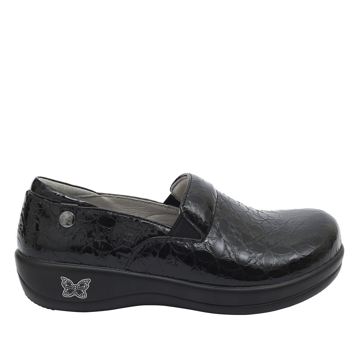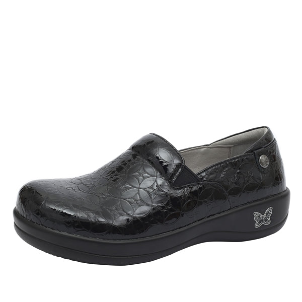 Perfect for nurses, teachers, retail workers and anyone who works on their feet all shift, the Keli features double elastic gores for easy on-and-off wear, a padded collar at the back for ankle support, and the signature removable and replaceable Alegria footbed for extra support and comfort. A 1 ¼-inch heel height on the career casual outsole gives you just the right amount of height while still protecting you from slick surfaces with its slip-resistant construction.