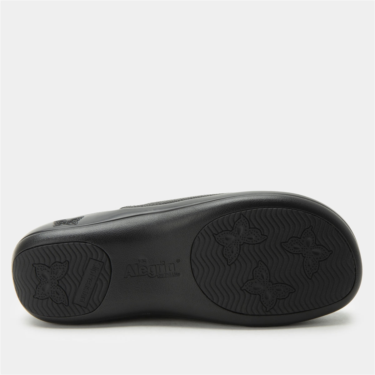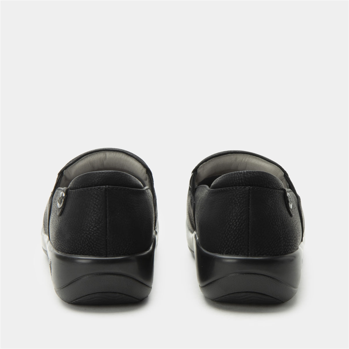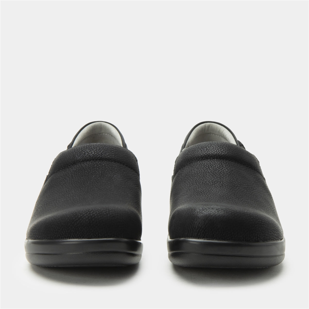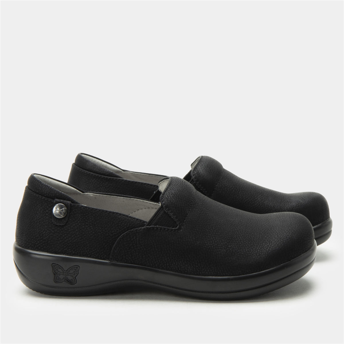 The Alegria Keli Nu Black delivers a sleek, professional look with all the comfort features busy workers rely on. Its stain-resistant black leather upper has a subtly textured finish for a modern, versatile style that pairs effortlessly with any uniform. Slip-on convenience is made easy with double elastic gores, and a padded collar adds ankle support. Inside, the removable and replaceable Alegria footbed offers superior arch support, while the slip-resistant outsole ensures stability throughout your day. A 1 1/4-inch heel height gives just the right boost to this classic essential.Features you will find in all Alegria Keli shoes: