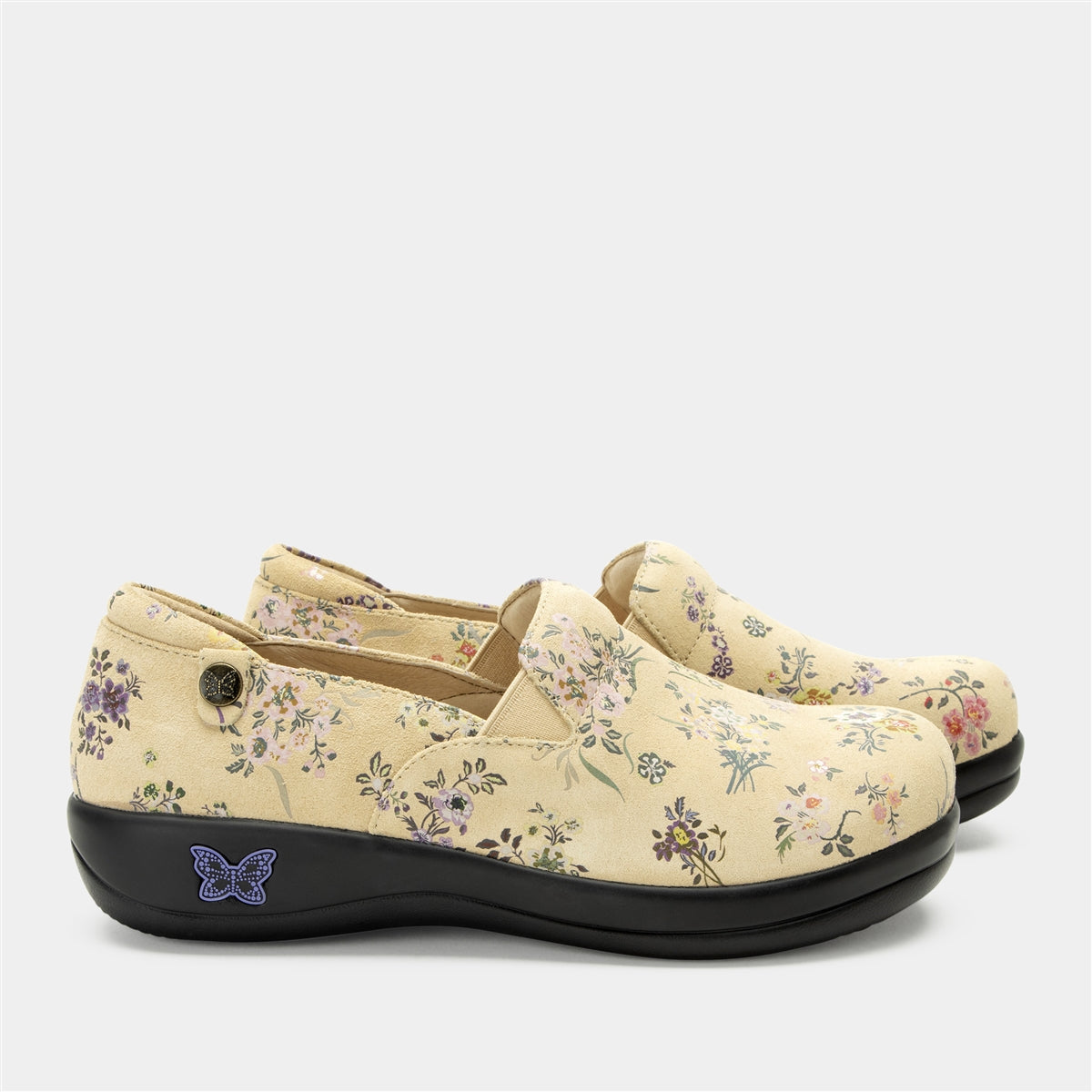 Perfect for nurses, teachers, retail workers and anyone who works on their feet all shift, the Keli features double elastic gores for easy on-and-off wear, a padded collar at the back for ankle support, and the signature removable and replaceable Alegria footbed for extra support and comfort. A 1 1/4-inch heel height on the career casual outsole gives you just the right amount of height while still protecting you from slick surfaces with its slip-resistant construction.Features you'll find in all Alegria Keli shoes include: