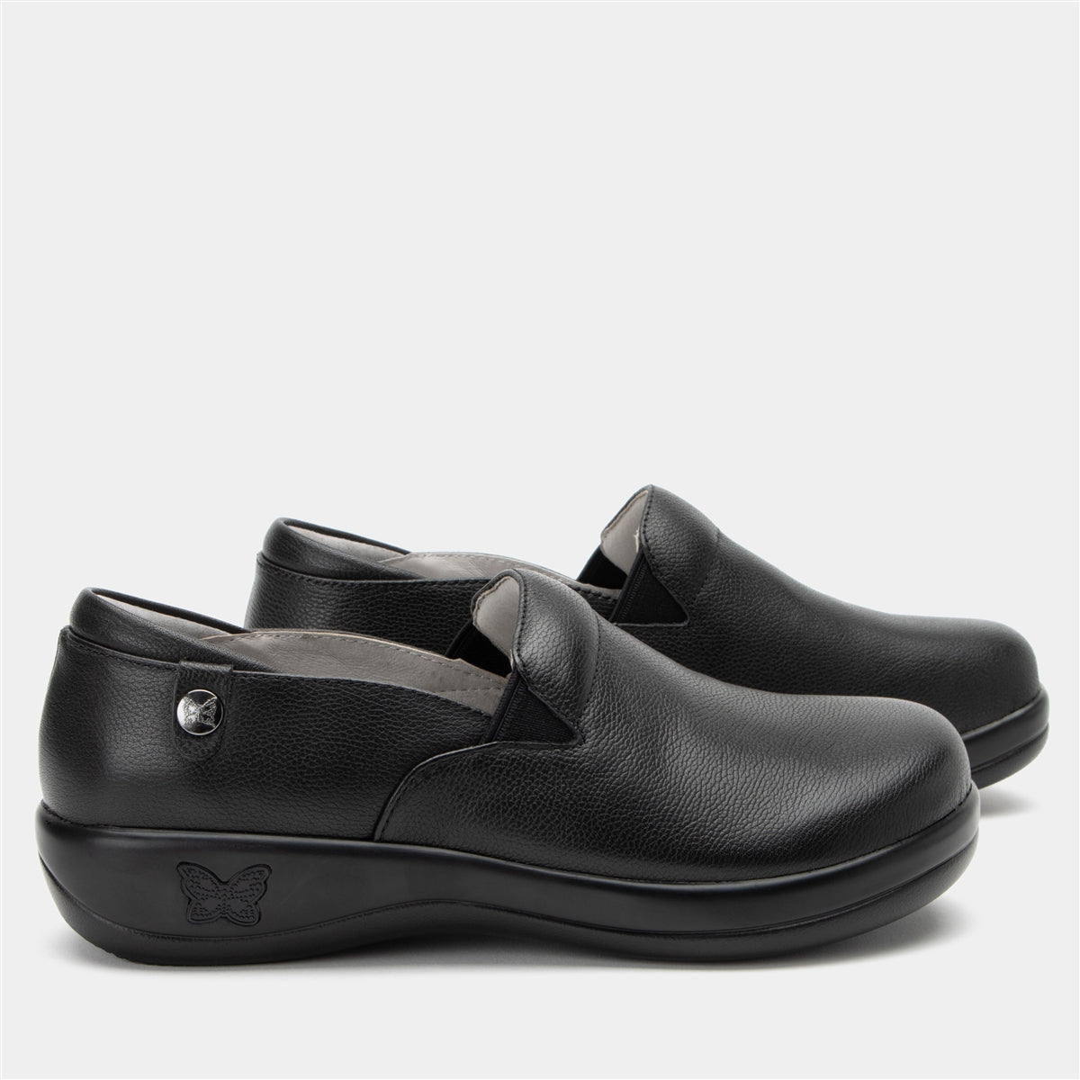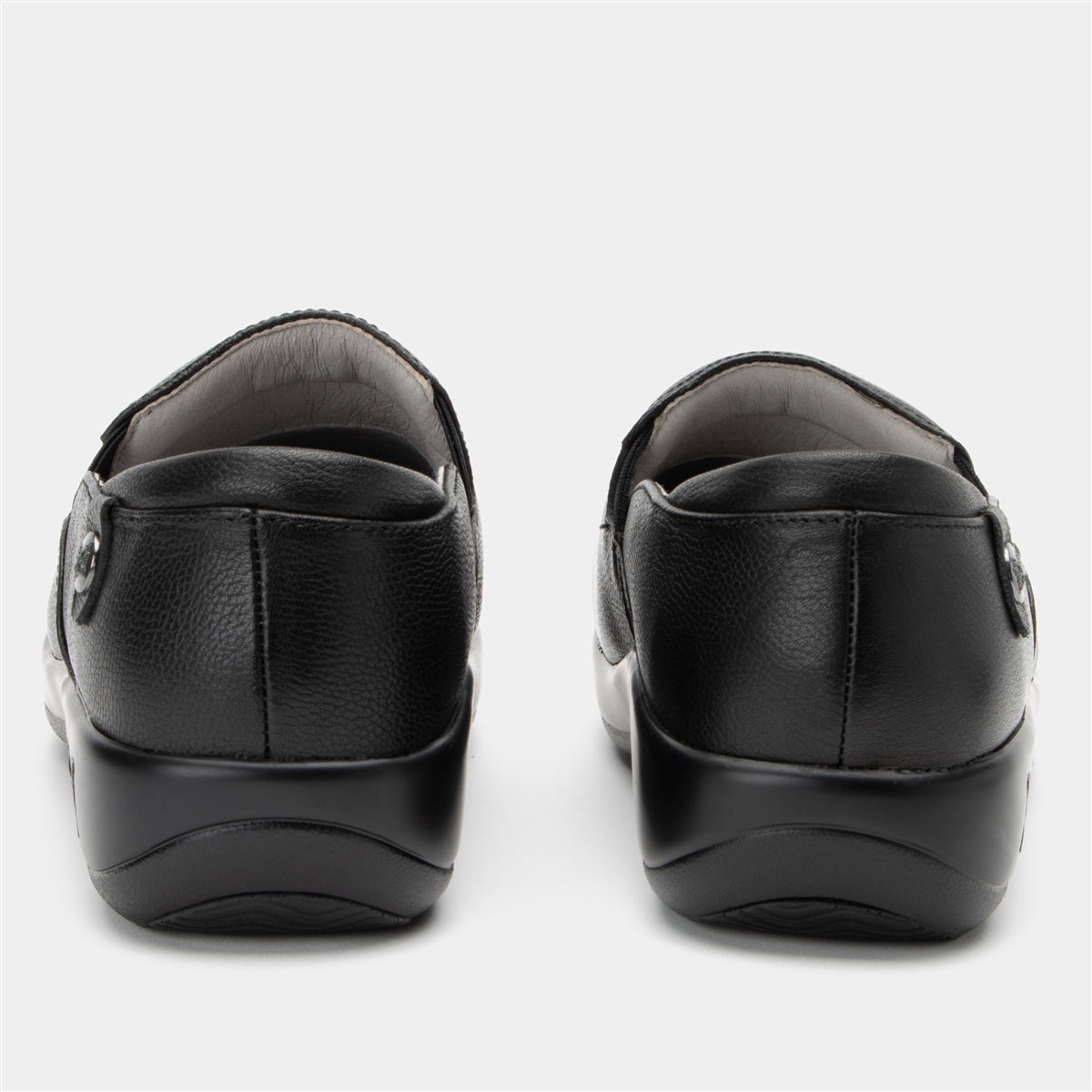 The Alegria Keli Pro that you've come to love has gotten even better with this custom hand-drawn design! A padded collar, elastic gores and cute butterfly button bring this shoe to life. The leather lining surrounds the signature ergonomically designed Alegria footbed that's removable, replaceable and can convert to wide width. Try the sophisticated look of the Alegria Keli in Upgrade today!Additional Benefits: