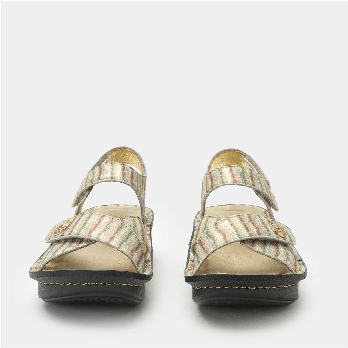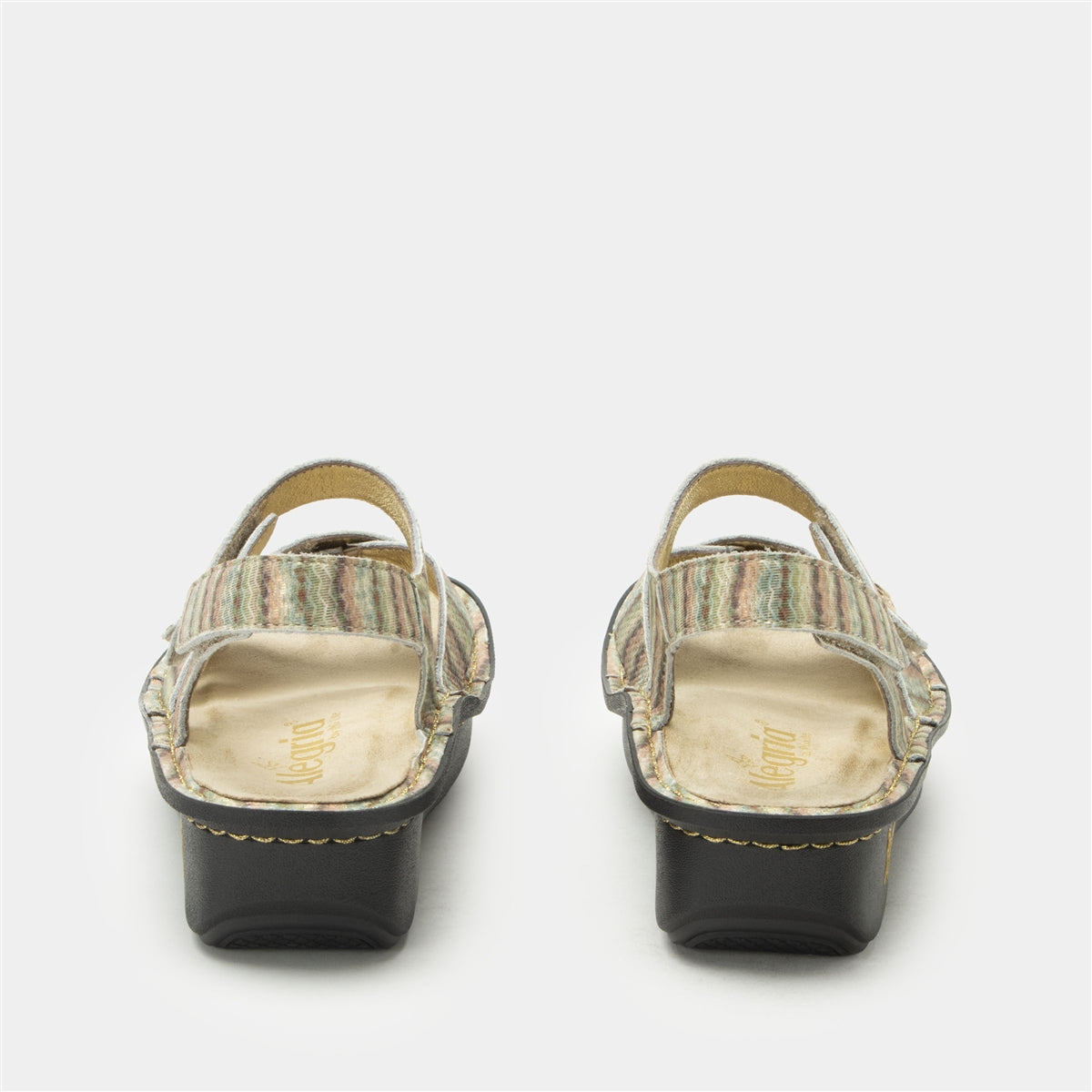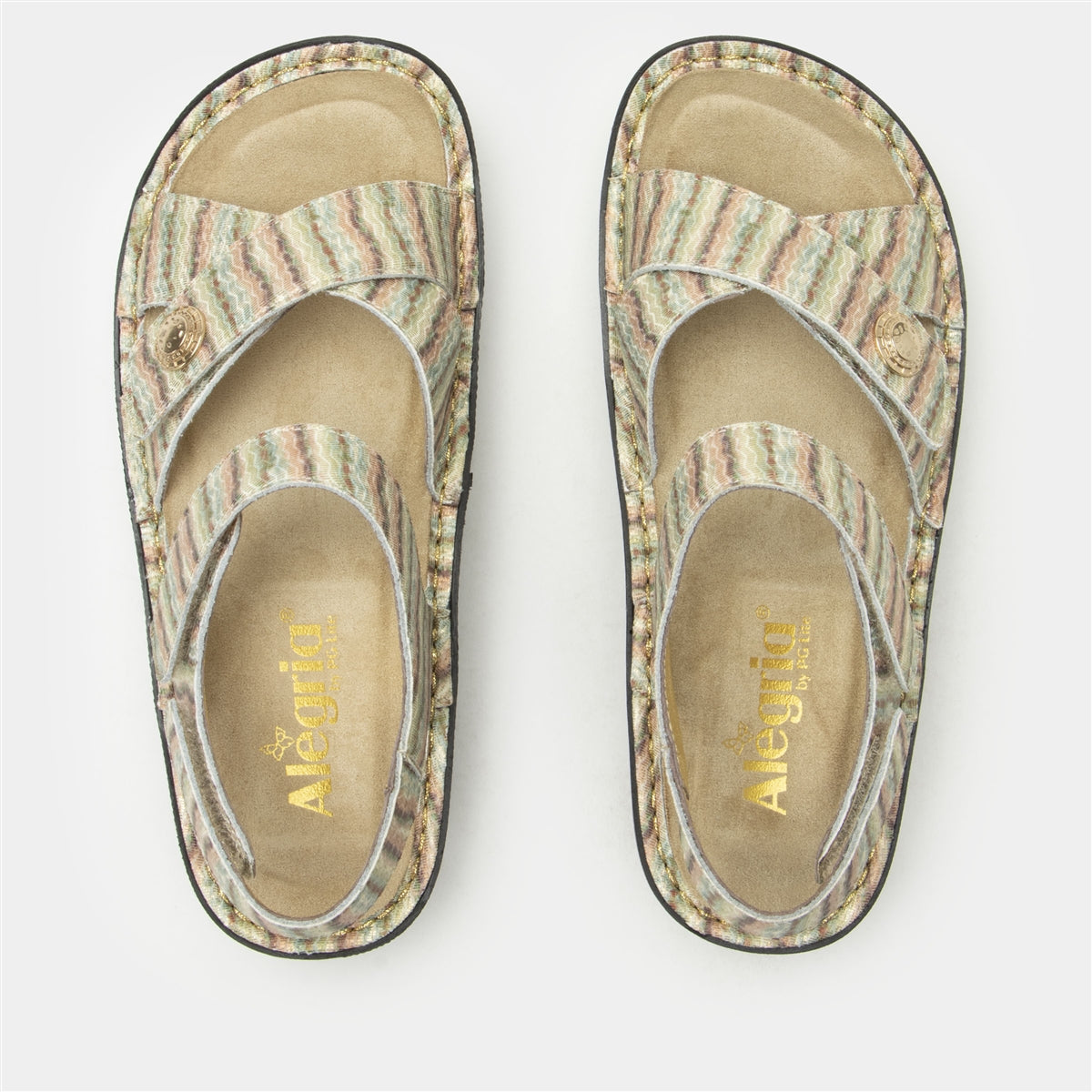 The Alegria Kelsi sandal in Spumoni brings a vibrant touch to your wardrobe with its eye-catching, multicolored leather uppers. This lively design combines bold style with the signature comfort Alegria is known for. The smooth leather lining keeps every step comfortable, while the slip-resistant classic rocker outsole offers stability and a supportive 1 3/4 inch height. Featuring three adjustable hook-and-loop closures and a hidden elastic band under the front strap, the Kelsi Spumoni ensures a secure and customized fit for all-day wear. Perfect for adding a pop of color to your warm-weather adventures.Features you will find in every pair of Alegria Kelsi sandals include: