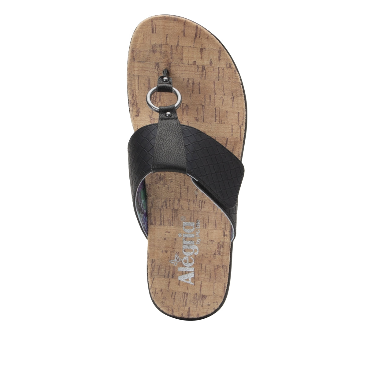 The Lanie thong sandal is on the featherweight, slip-resistant Comfort Flat Outsole. The sandal features an adjustable hook-and-loop closure with an O-ring hardware detail. The durable microsuede footbed is soft against the feet and offers ample arch support for all day comfort.Features you’ll find in every Alegria Lanie sandals style include: