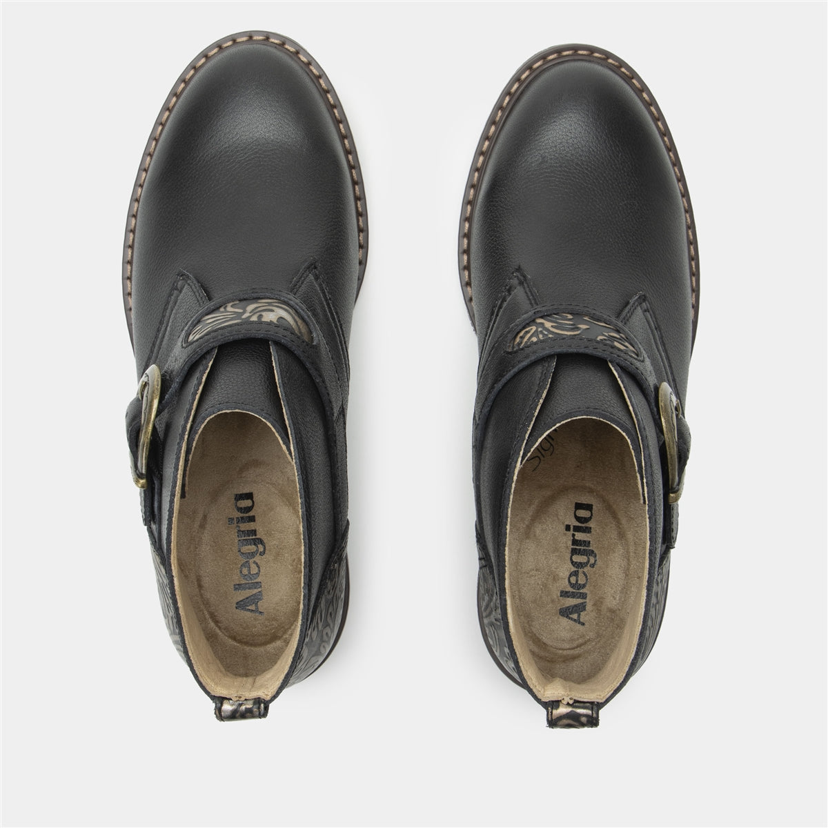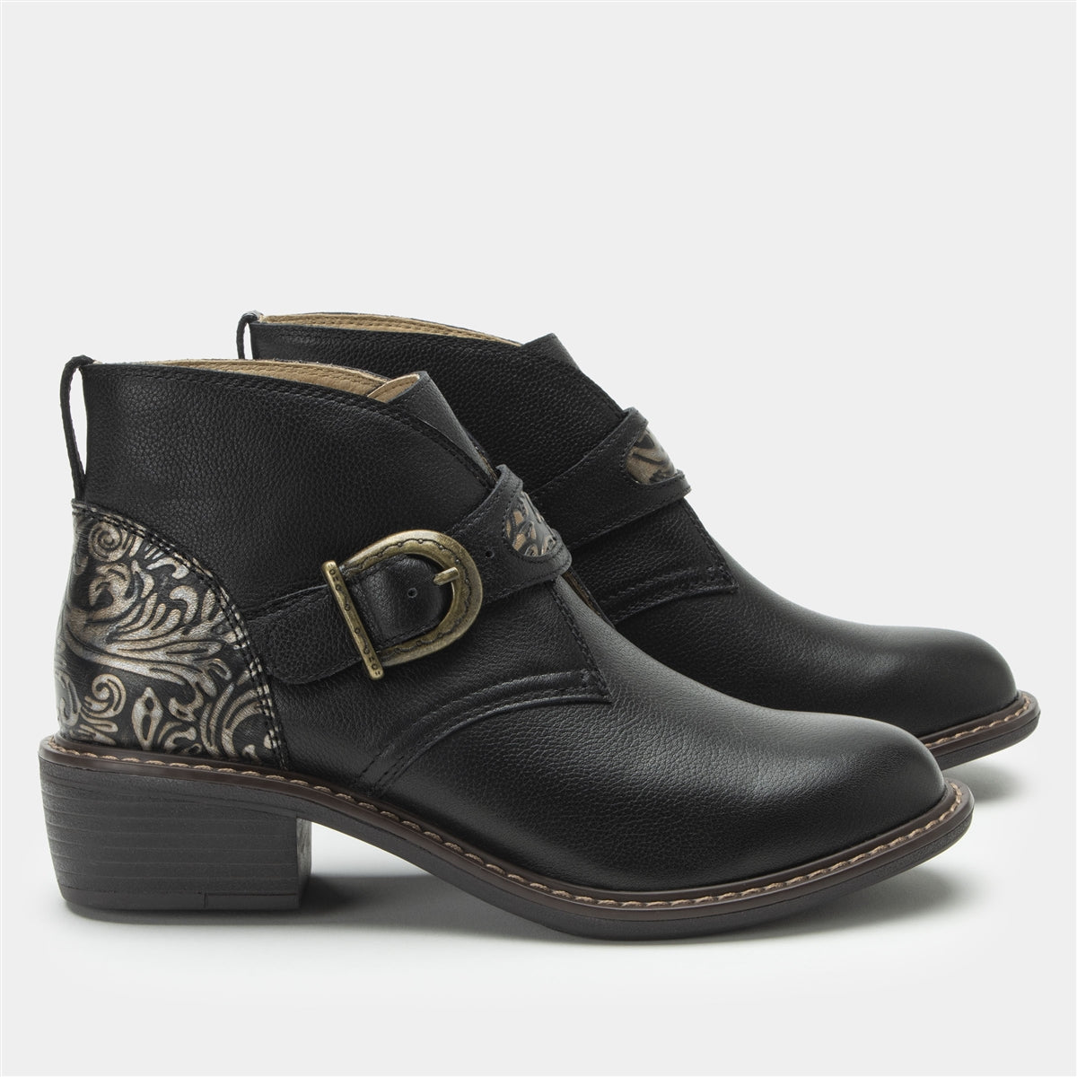 Meet the Alegria Mikki bootie in Showboat, a vibrant take on the classic cowboy-inspired bootie with a contemporary flair. This eye-catching bootie showcases a bold oversized buckle, merging cutting-edge design with Alegria's renowned comfort. The slip-resistant outsole, cushioned footbed, and sleek silhouette ensure that the Mikki bootie offers both standout style and all-day comfort, making it an ideal choice when your look needs a touch of boldness.Additional Benefits: