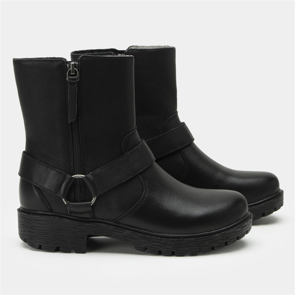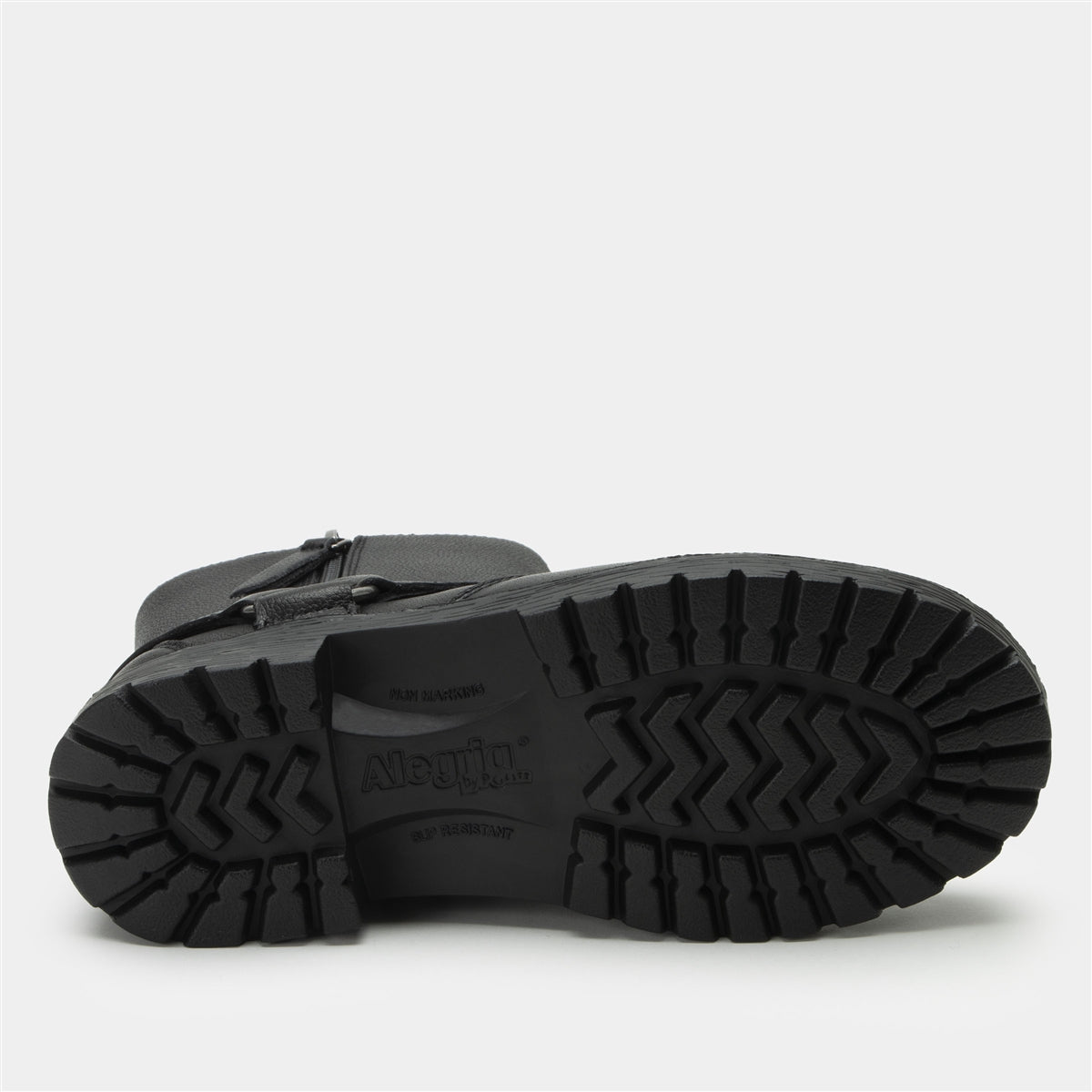 The Alegria Olympia boot in Black Bird delivers a sophisticated style with unparalleled comfort and support. Crafted from a stain-resistant leather upper, this boot is both stylish and practical for everyday wear. The soft suede leather footbed ensures a cushioned step, while the slip-resistant polyurethane outsole provides reliable traction on any surface. With its sleek design and comfortable heel height, the Olympia boot in Black Bird is a perfect choice for those who value both elegance and functionality in their footwear.Additional Benefits: