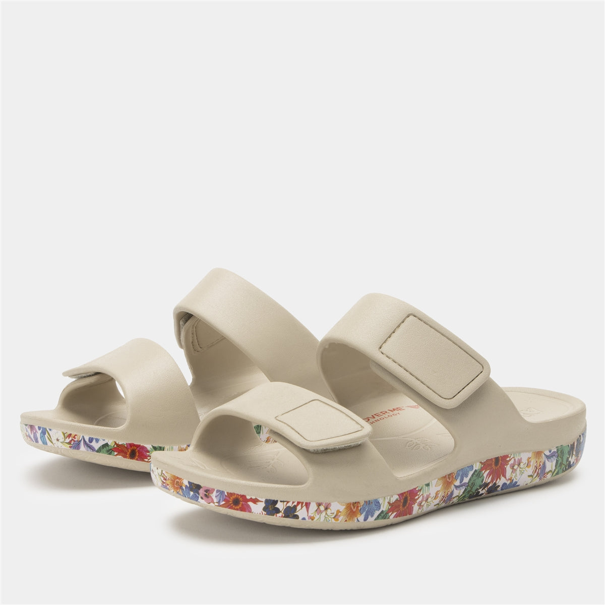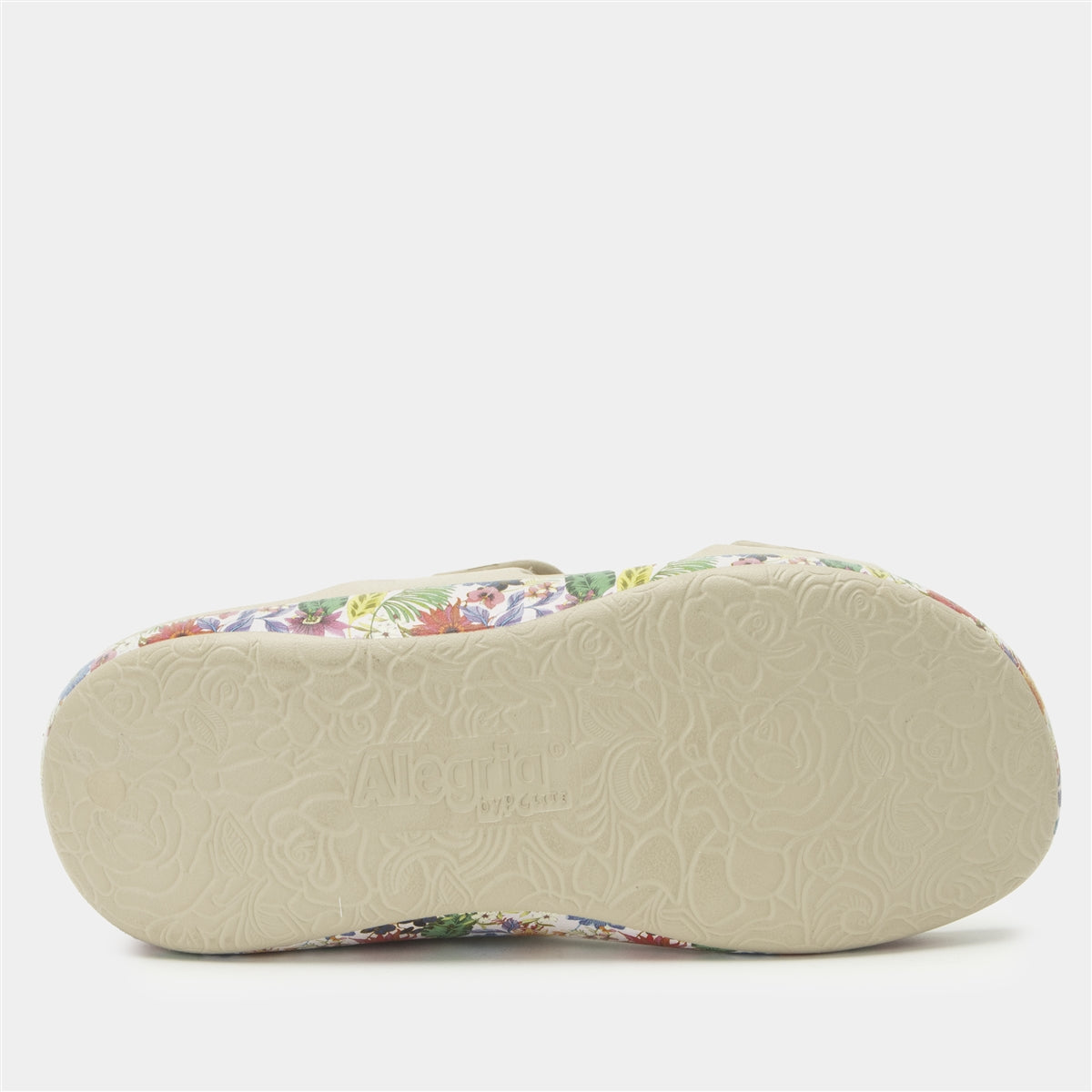 Alegria's propriety technology incorporating gentle rocker bottom and built-in arch components for superior comfort. Alegria's proprietary RecoverMe technology incorporates a gentle rocker bottom that allows the foot to naturally roll forward and a built-in arch that provides stability and balance while helping eliminate pressure points at the heel and ball of the foot.