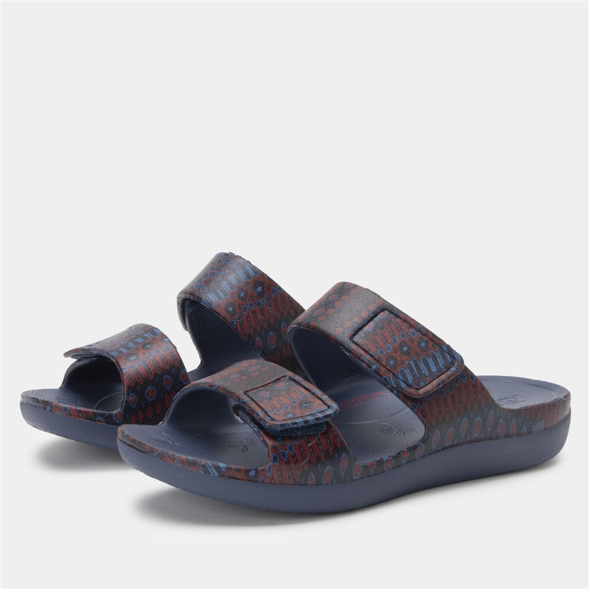Step lightly in this EVA slide designed with two hook-and-loop close straps for an adjustable fit to your foot. The features continue with a built-in molded arch support and RecoverMeâ„¢ rocker outsole designed to promote balanced pressure distribution and enhanced surface grip.