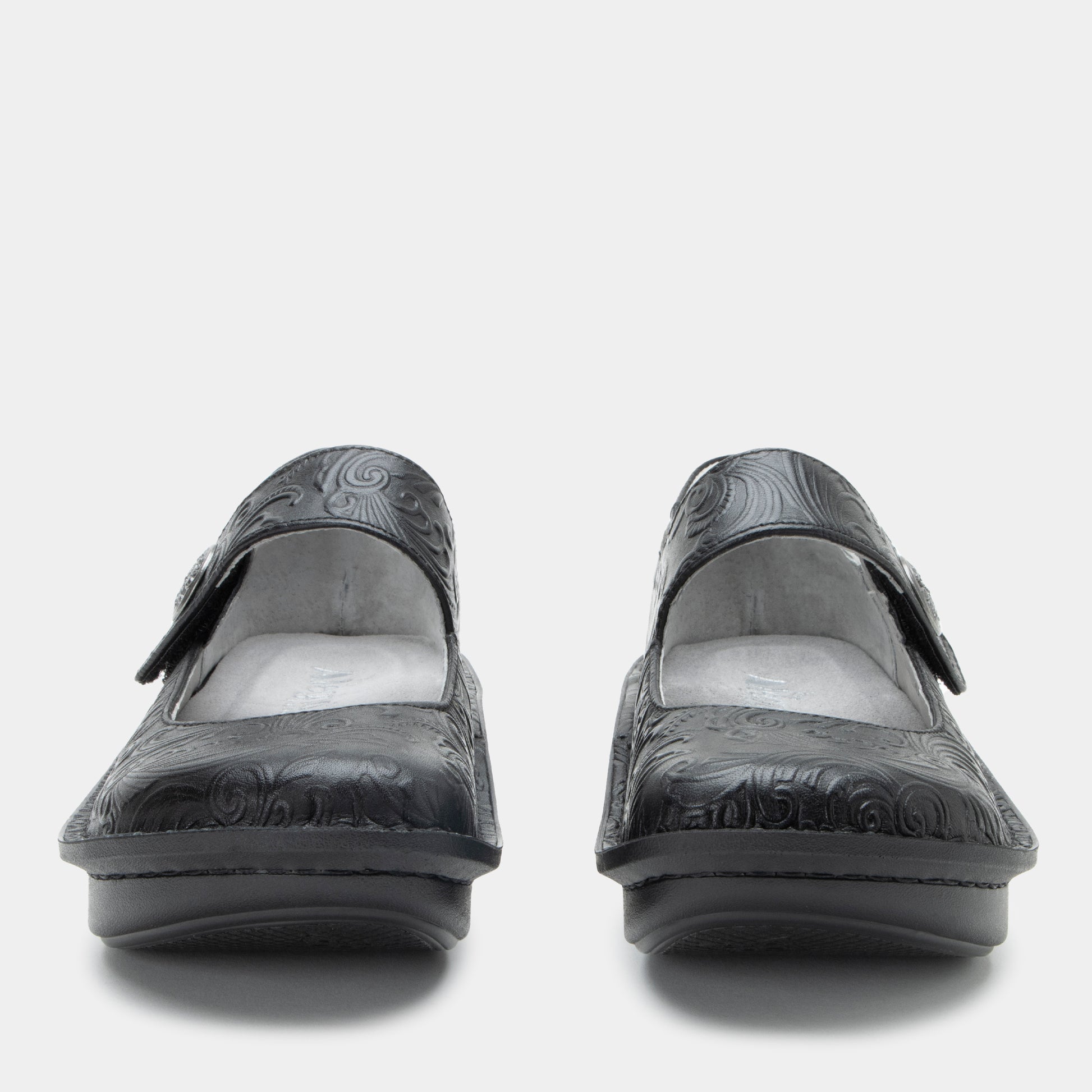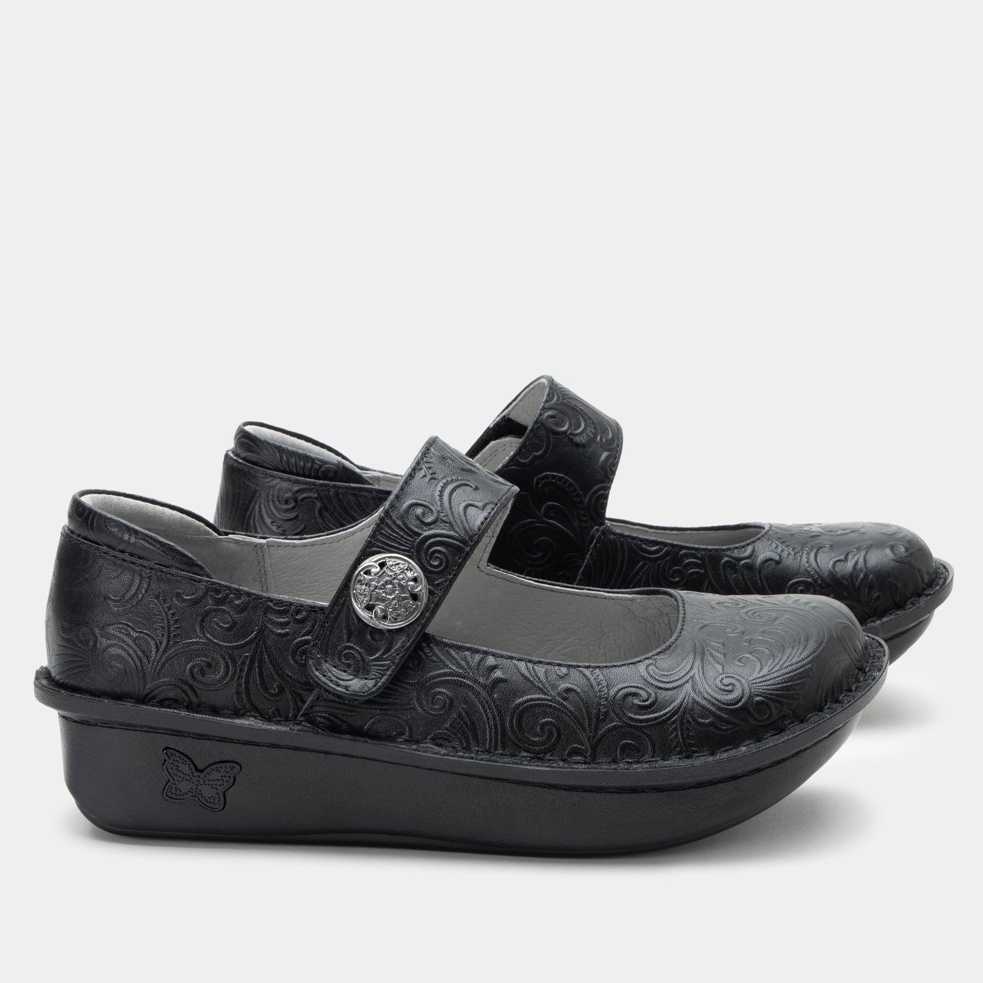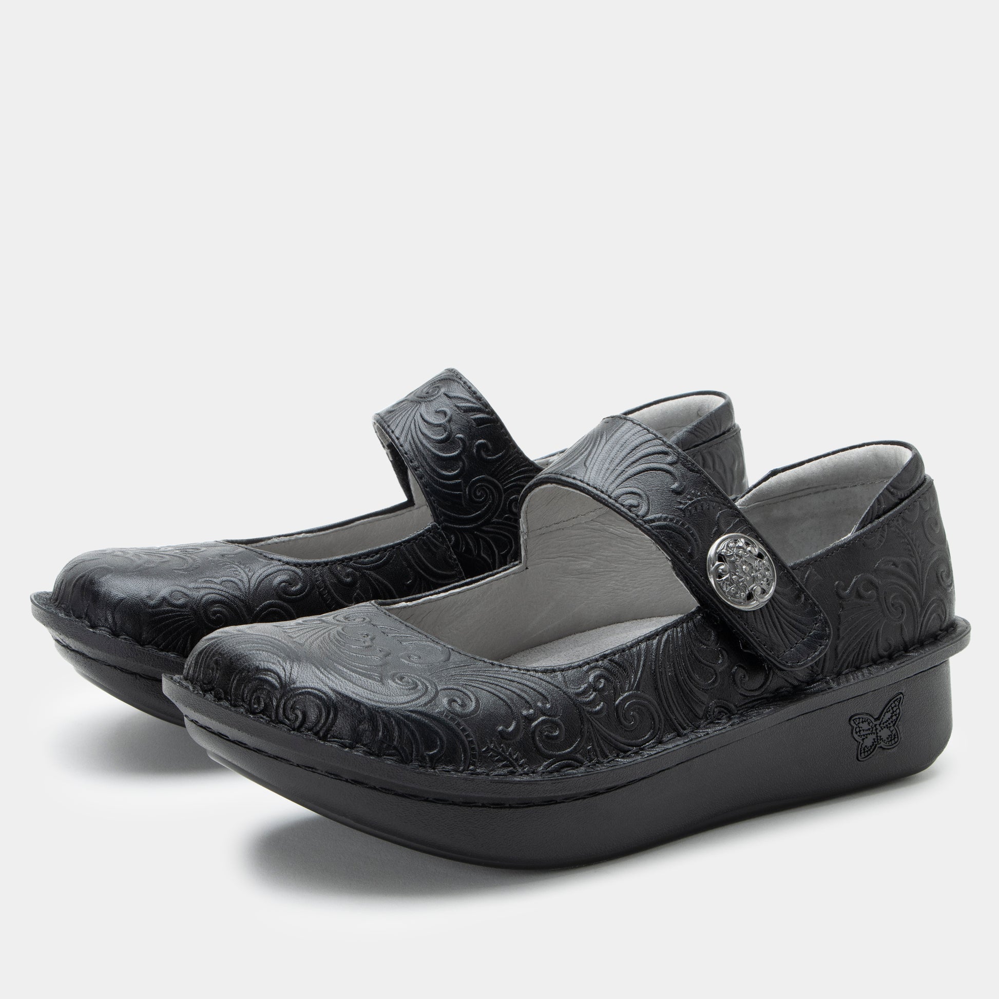 The Night N Gale edition of the Alegria Paloma features a dark, mysterious leather upper with subtle detailing. Podiatrist approved, this shoe provides excellent arch support, making it perfect for relieving heel pain and keeping your feet comfortable during long hours.Features you will find in every Paloma Mary Jane include: