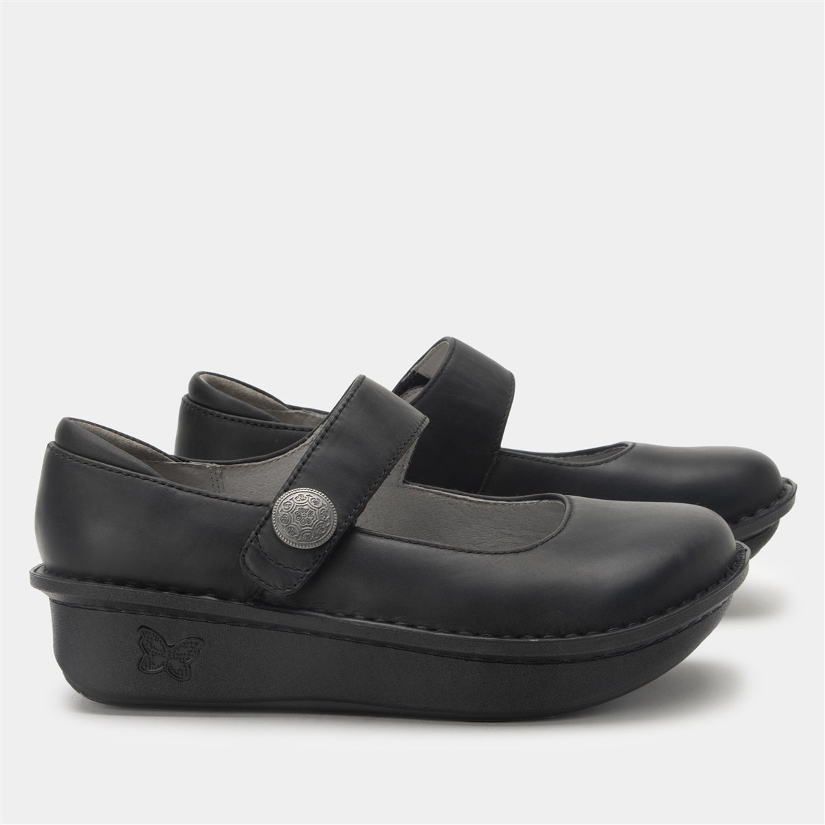 The Oiled Black Alegria Paloma from Alegria Shoes offers a sleek, matte finish on its leather upper, perfect for those who prefer a classic, understated look. This podiatrist-approved shoe is designed to provide superior arch support and comfort, making it ideal for all-day wear.Features you will find in every Paloma Mary Jane include: