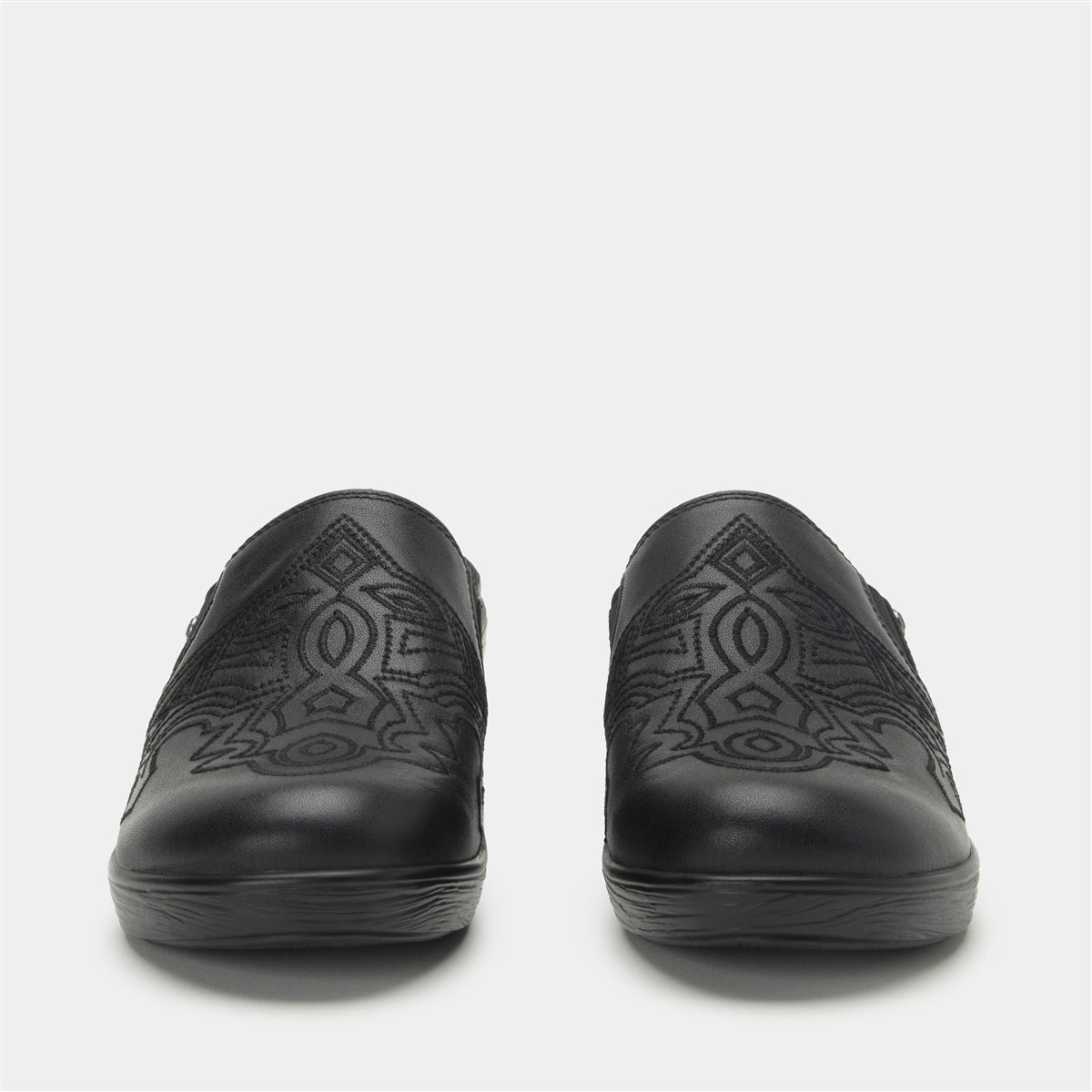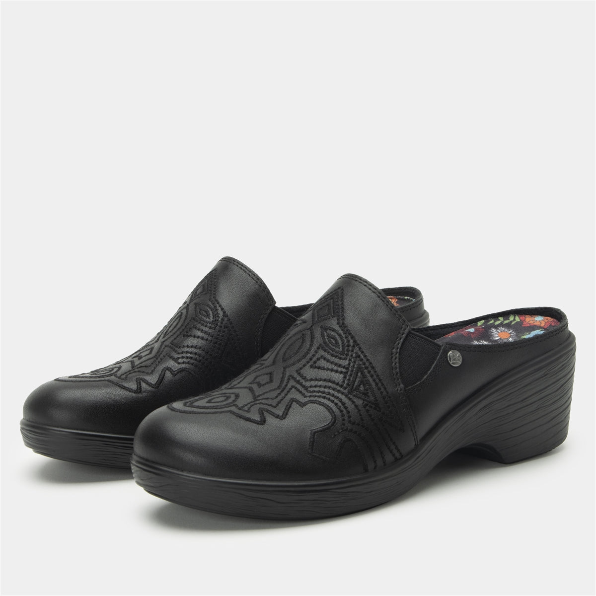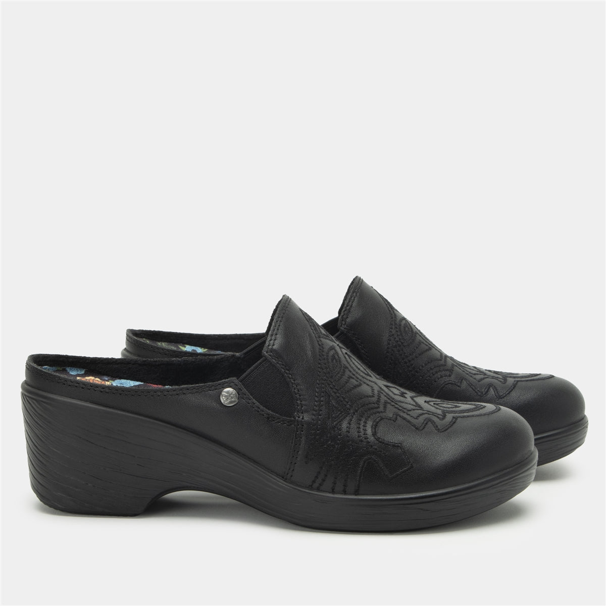 A classic leather clog takes a tailored turn in this refined version set on a lightweight slip-resistant wood look wedge. It’s detailed with matching elastic side gores for a customized fit and removable cushioned footbed finished off with a novelty printed microsuede lining.
