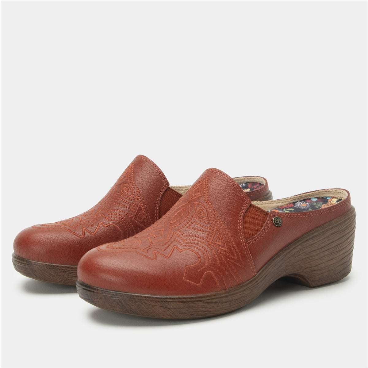 A classic leather clog takes a tailored turn in this refined version set on a lightweight slip-resistant wood look wedge. It’s detailed with matching elastic side gores for a customized fit and removable cushioned footbed finished off with a novelty printed microsuede lining.