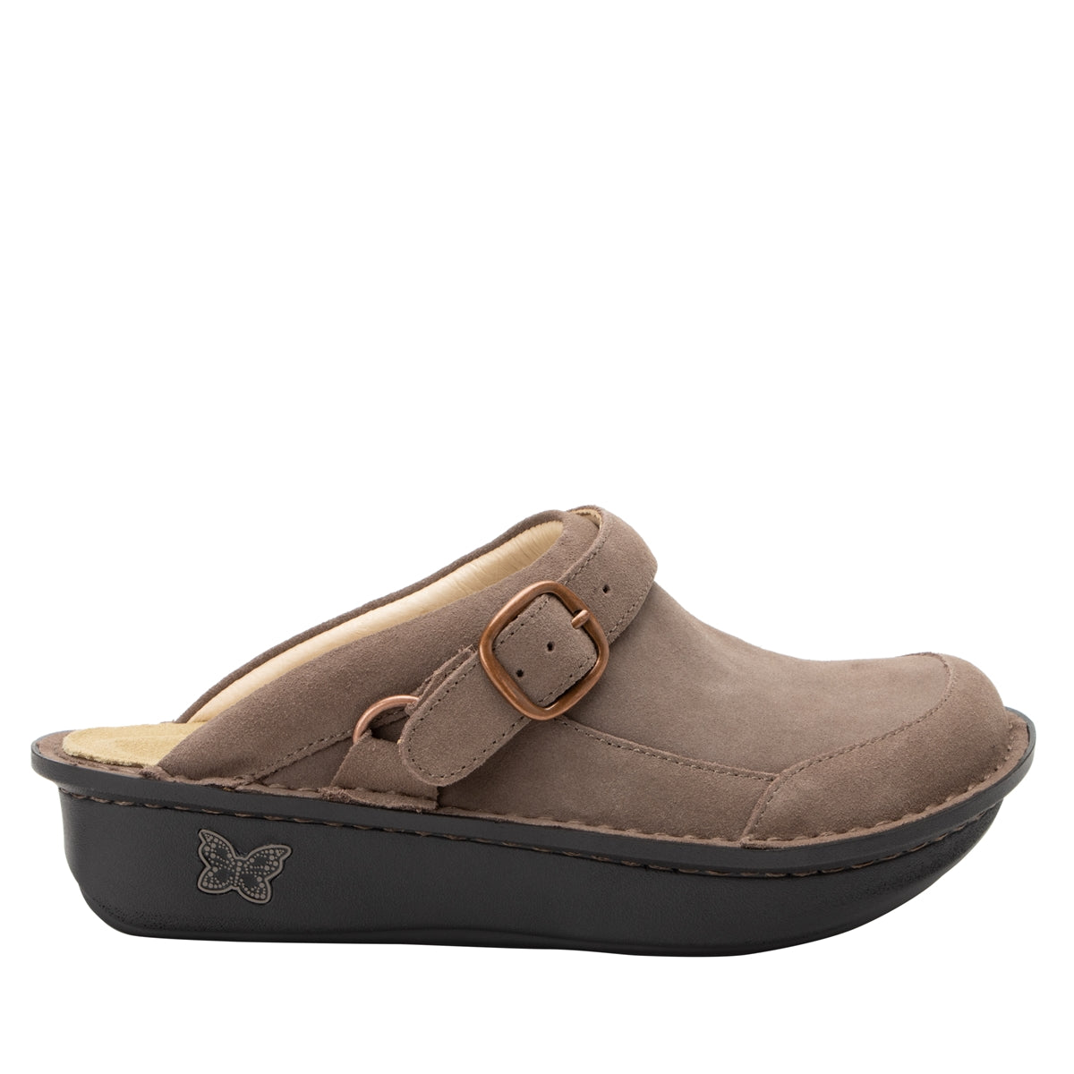 Elevate your everyday style with the Alegria Seville in Taupe Suede, an Alegria Shoe Shop Exclusive designed for unmatched comfort and timeless appeal. Featuring a soft suede leather upper in a versatile taupe hue, this clog effortlessly combines sophistication with all-day support. The adjustable swivel strap allows for a customized fit or can be worn as a backstrap for added stability. Engineered with Alegria’s signature footbed, the Seville provides exceptional arch support and cushioning, making it a must-have for those who prioritize both comfort and style.