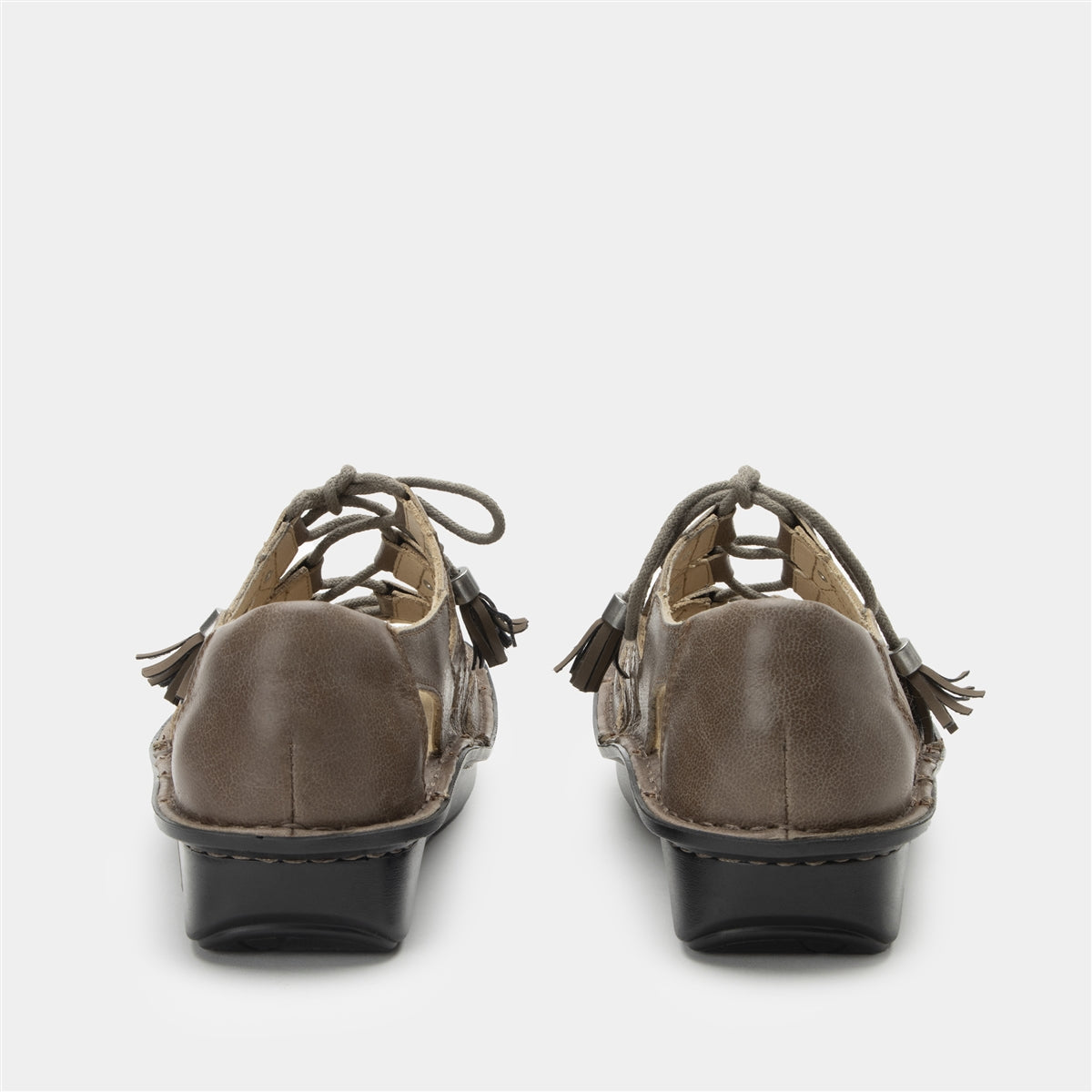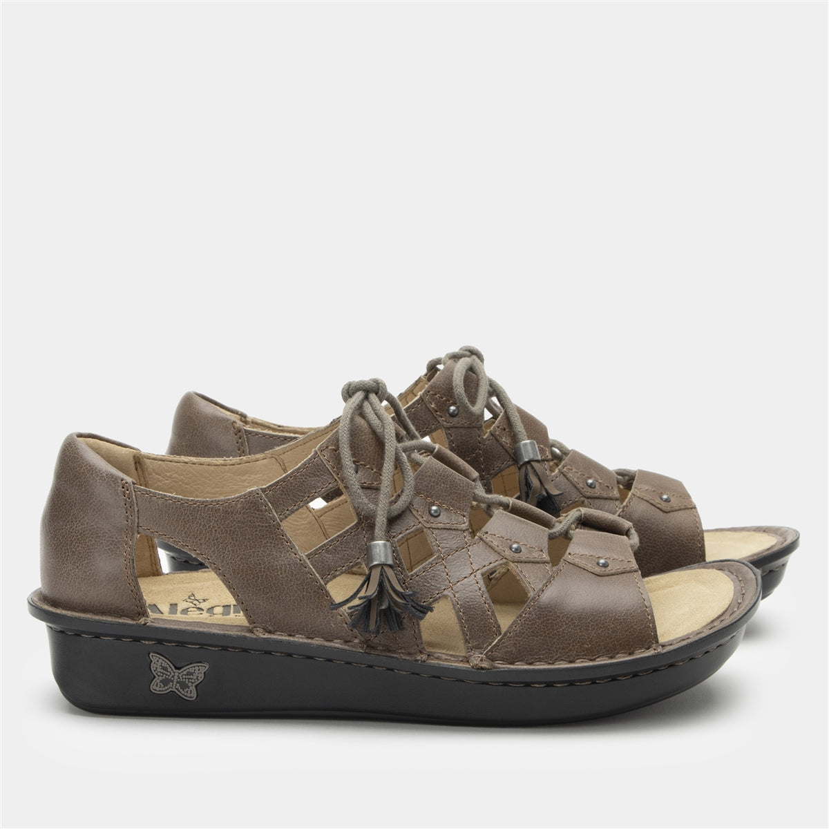 The Valerie is a gladiator-inspired sandal our Mini outsole, designed to mimic a natural rocking motion for improved pressure distribution across the bottom of the foot. It has a leather upper and lining, with adjustable laces beautifully adorned with tassel end-caps. The patented footbed is ergonomically designed to conform the natural contour of the foot, working to relieve legs, hip and back from long standing hours.