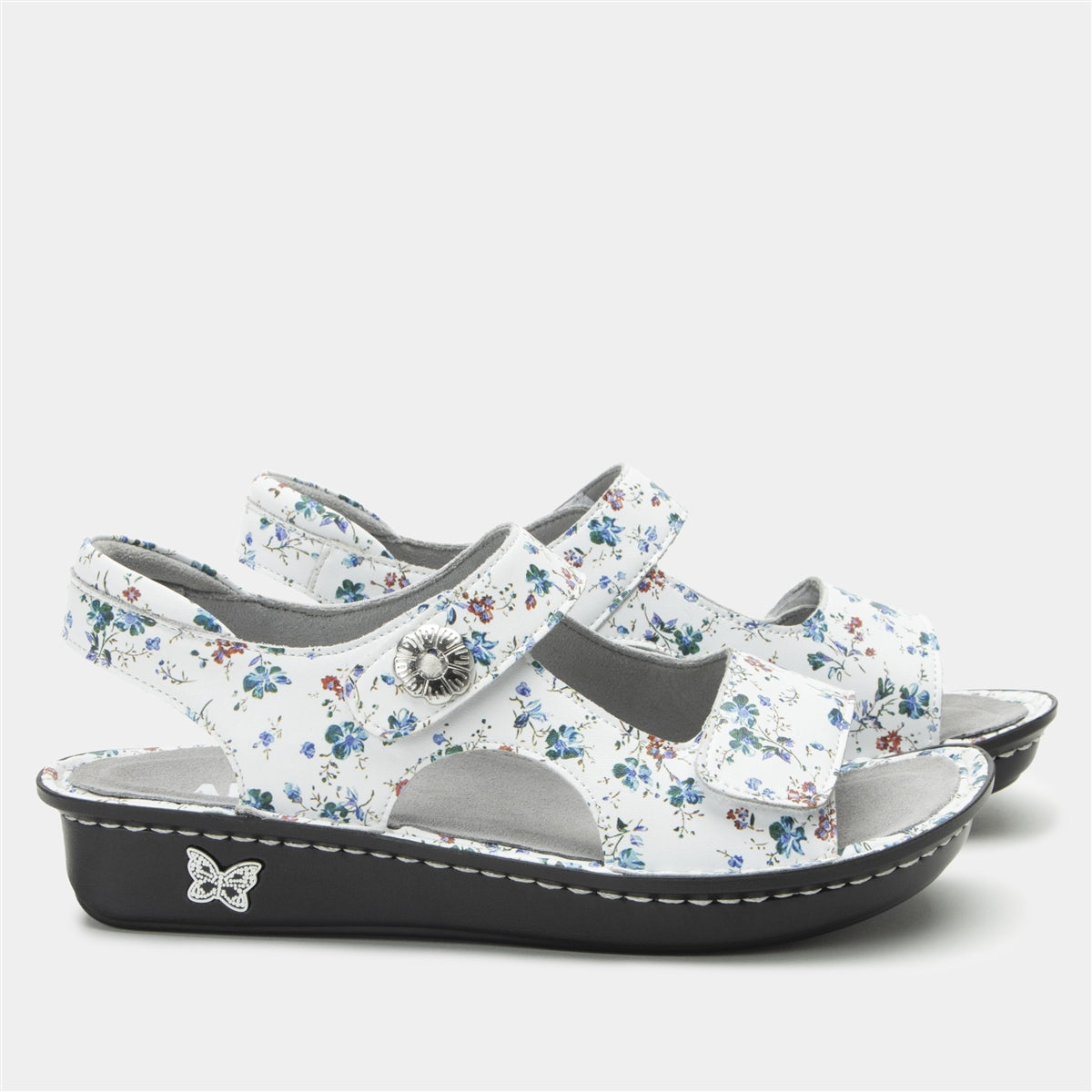 The Vallie sandal in Keep Calm is the perfect blend of comfort and charm with a serene, colorful pattern inspired by tranquility and balance. Featuring soft pastel hues of blues, greens, and lavenders set against a crisp white background, this sandal is both eye-catching and calming. The adjustable hook-and-loop closures ensure a secure and personalized fit, while the padded collar and supportive mini outsole provide unmatched comfort for all-day wear. Whether you are exploring the outdoors or heading to a casual event, this sandal is a must-have for effortless style and ease.Additional Benefits: