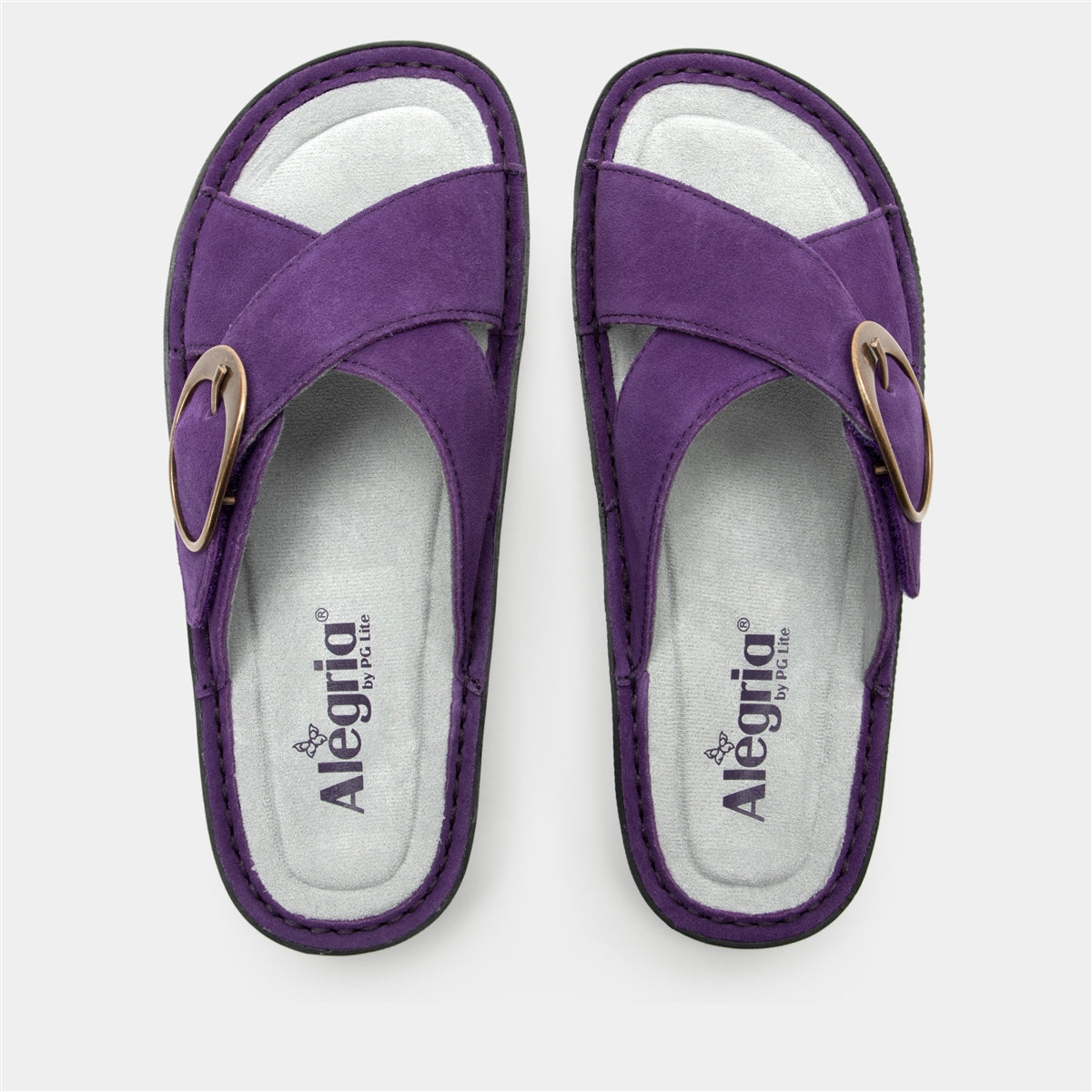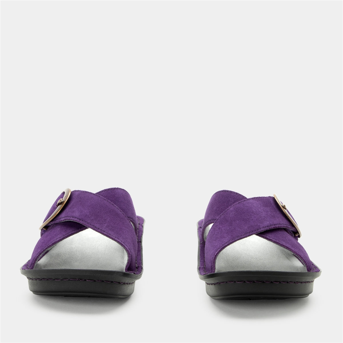 The classic crisscross sandal takes a bold step forward in this handstitched version with an ornamental buckle set on an adjustable hook-and-loop strap. A removable contoured footbed made of cork and memory foam, seamlessly fits into a mini outsole for walking ease. For added versatility, choose from uppers in textured calf hair or smooth leather.Features you will find in every Alegria Vanya sandal style include: