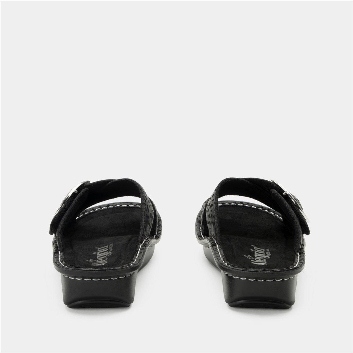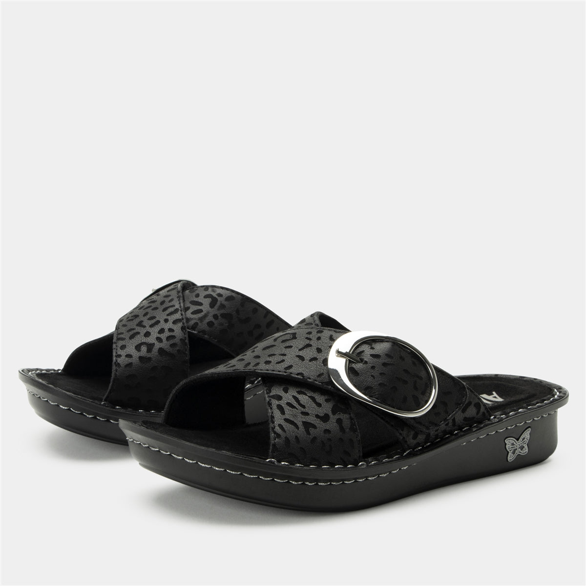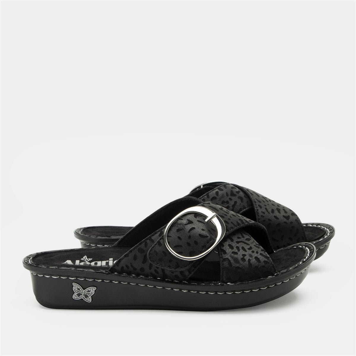 The classic crisscross sandal takes a bold step forward in this handstitched version with an ornamental buckle set on an adjustable hook-and-loop strap. A removable contoured footbed made of cork and memory foam, seamlessly fits into a mini outsole for walking ease. For added versatility, choose from uppers in textured calf hair or smooth leather.Features you will find in every Alegria Vanya sandal style include: