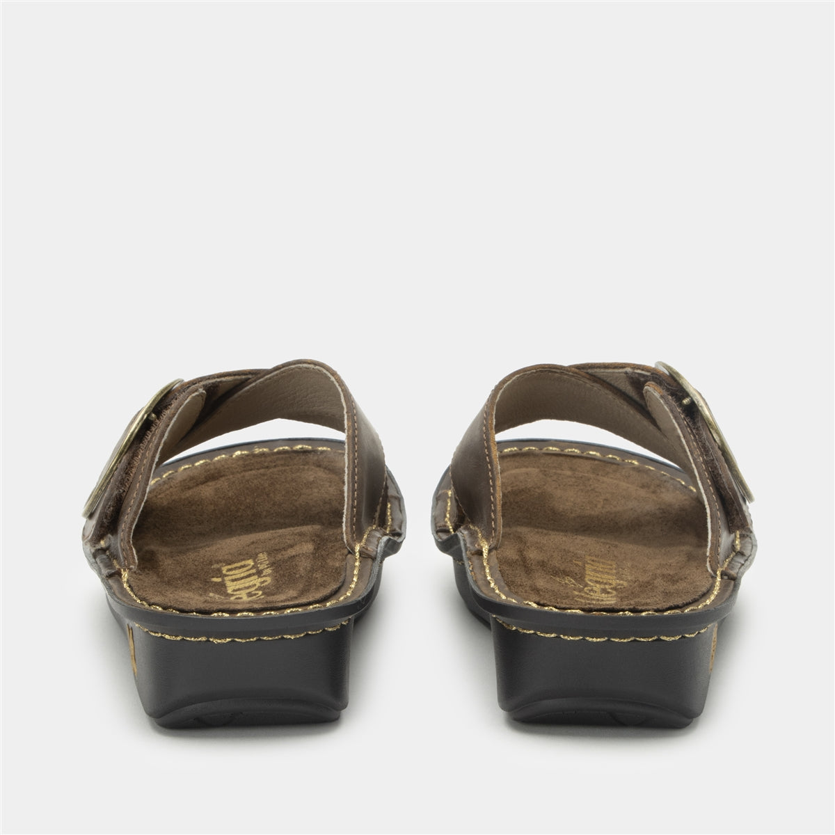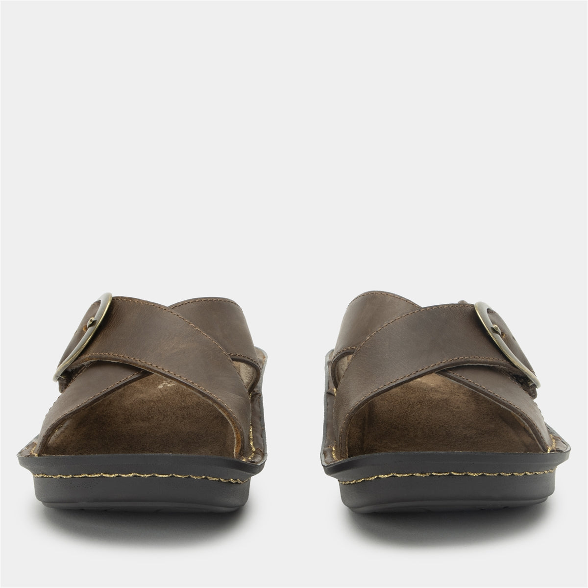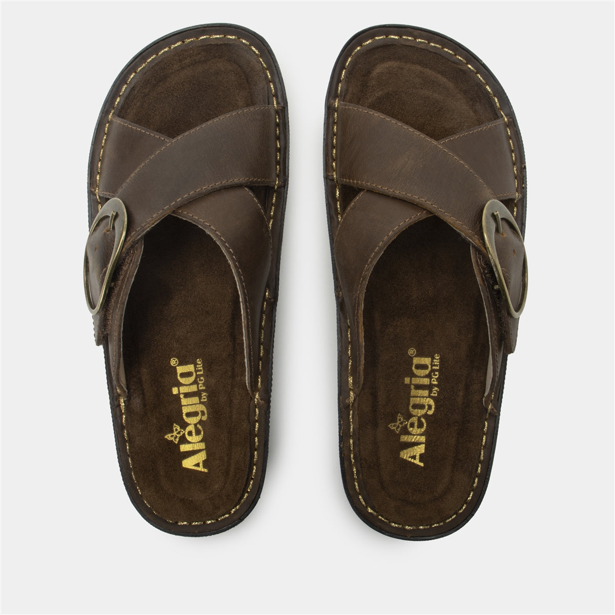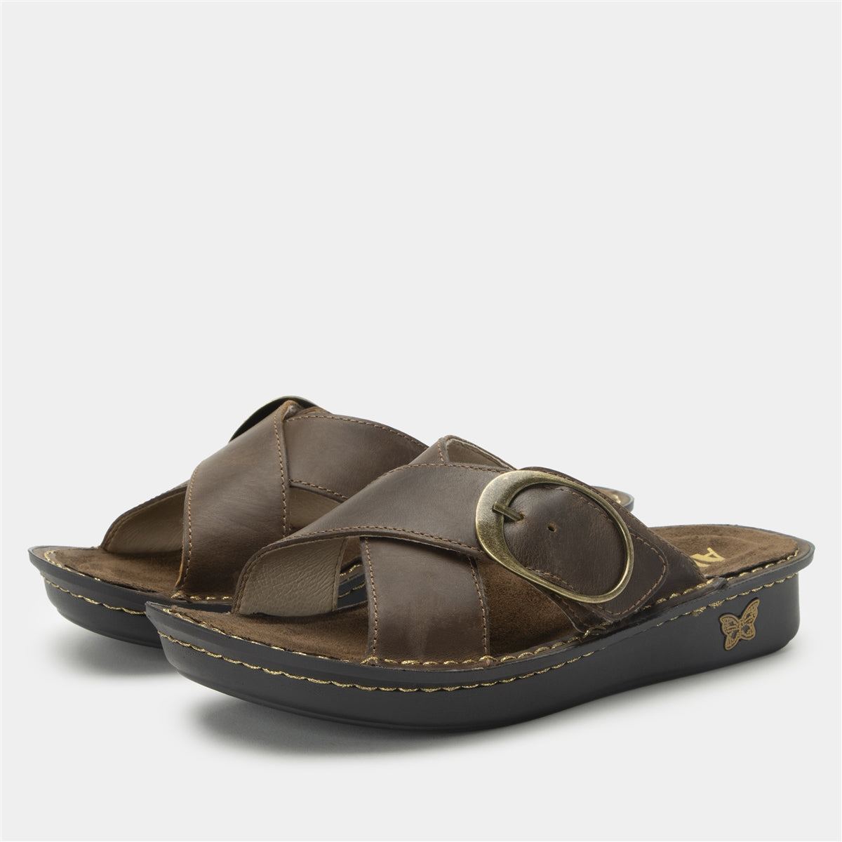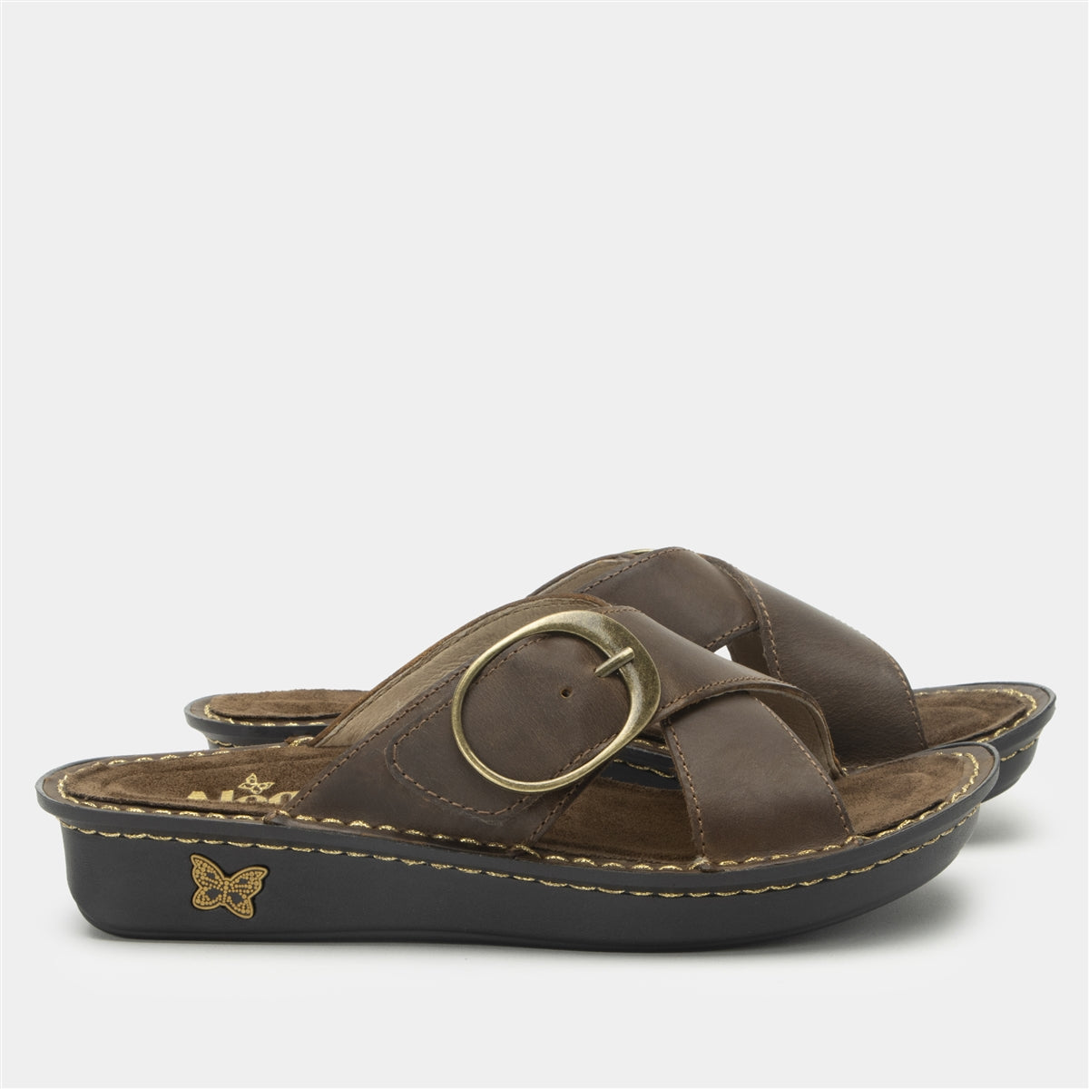 The classic crisscross sandal takes a bold step forward in this handstitched version with an ornamental buckle set on an adjustable hook-and-loop strap. A removable contoured footbed made of cork and memory foam, seamlessly fits into a mini outsole for walking ease. For added versatility, choose from uppers in textured calf hair or smooth leather.Features you will find in every Alegria Vanya sandal style include: