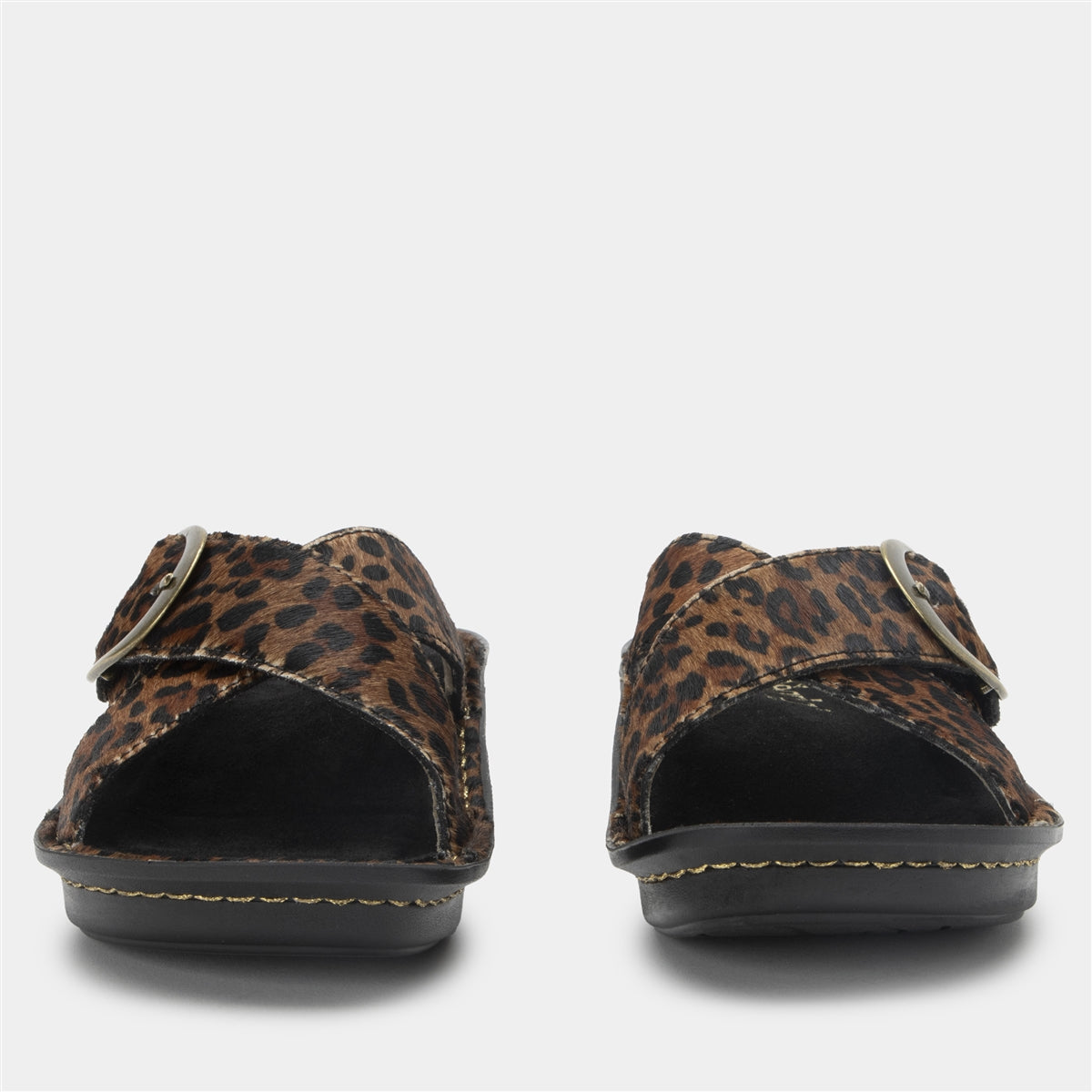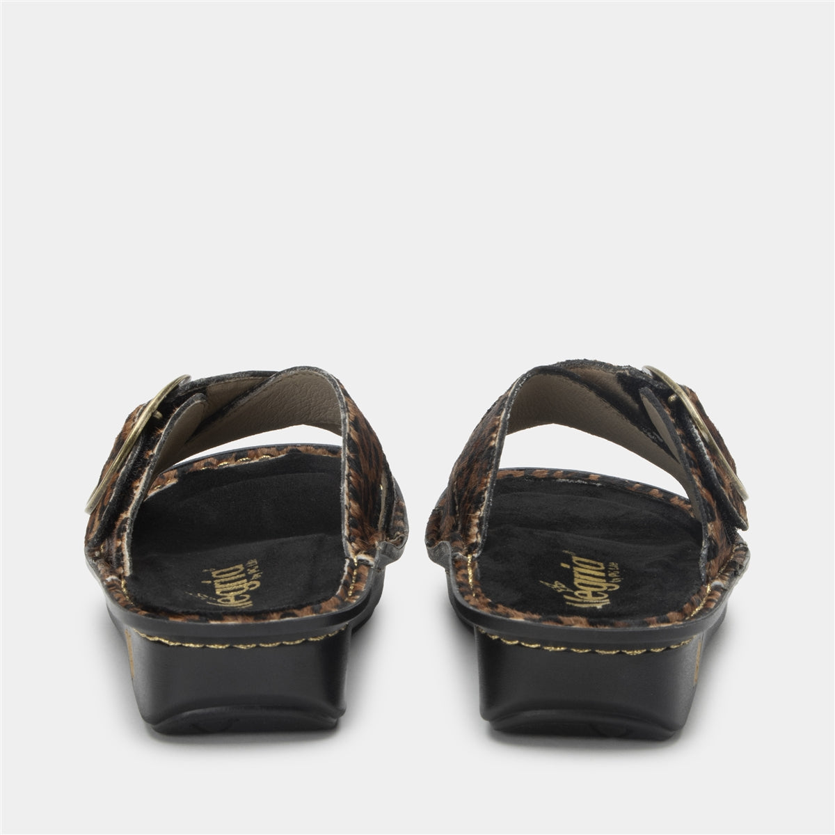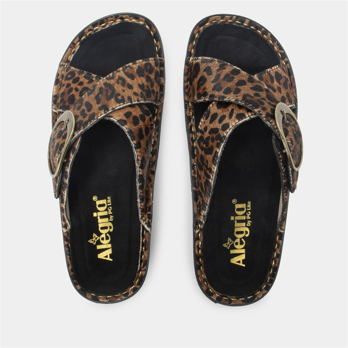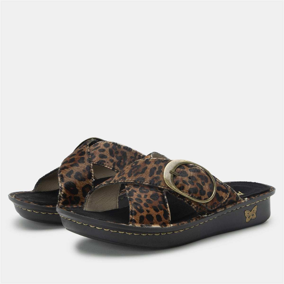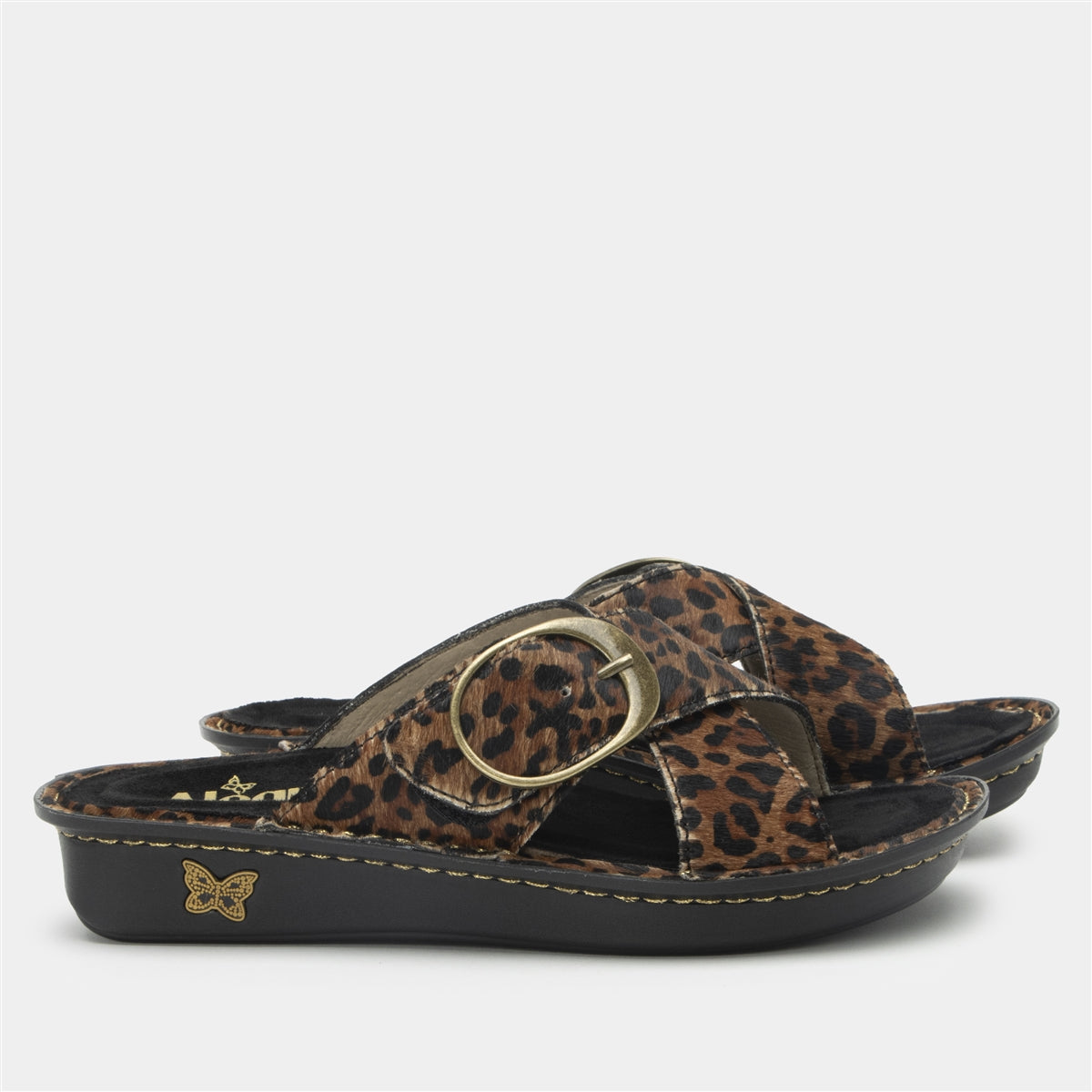 The classic crisscross sandal takes a bold step forward in this handstitched version with an ornamental buckle set on an adjustable hook-and-loop strap. A removable contoured footbed made of cork and memory foam, seamlessly fits into a mini outsole for walking ease. For added versatility, choose from uppers in textured calf hair or smooth leather.Features you’ll find in every Alegria Vanya sandal style include: