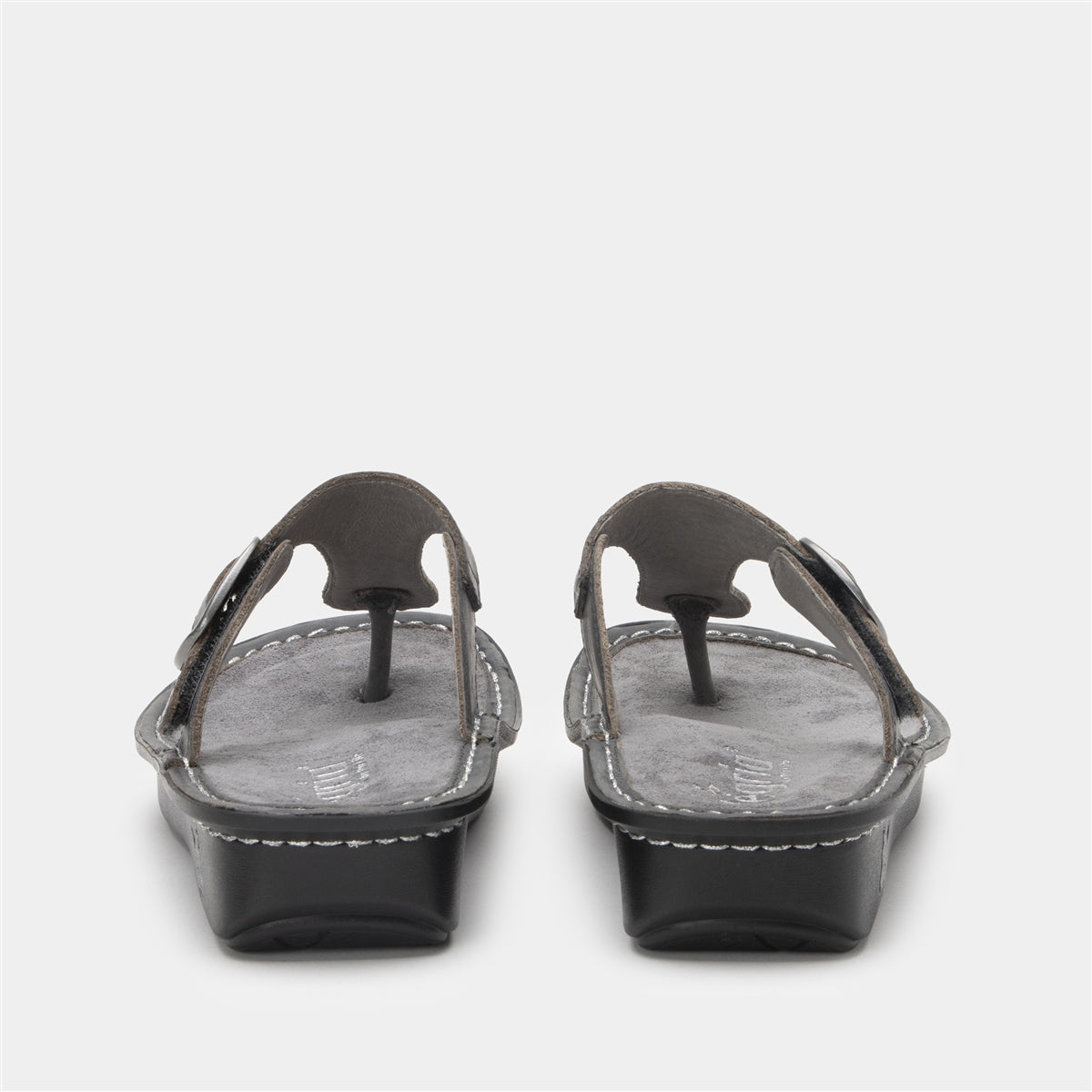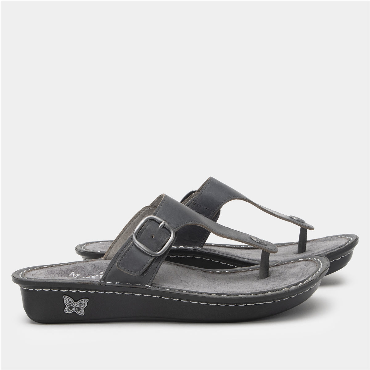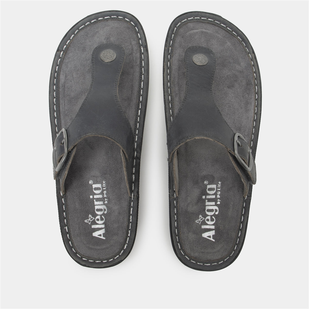 Simply stated, the thong sandal remains a summertime favorite. This leather handstitched style features a decorative buckle over an adjustable hook-and-loop close strap. A contoured footbed made of memory foam and cork is set on mini outsole for enhanced wearability and practicality.Features you’ll find in every Alegria Vella sandal style include:
