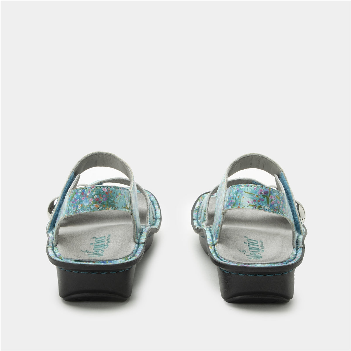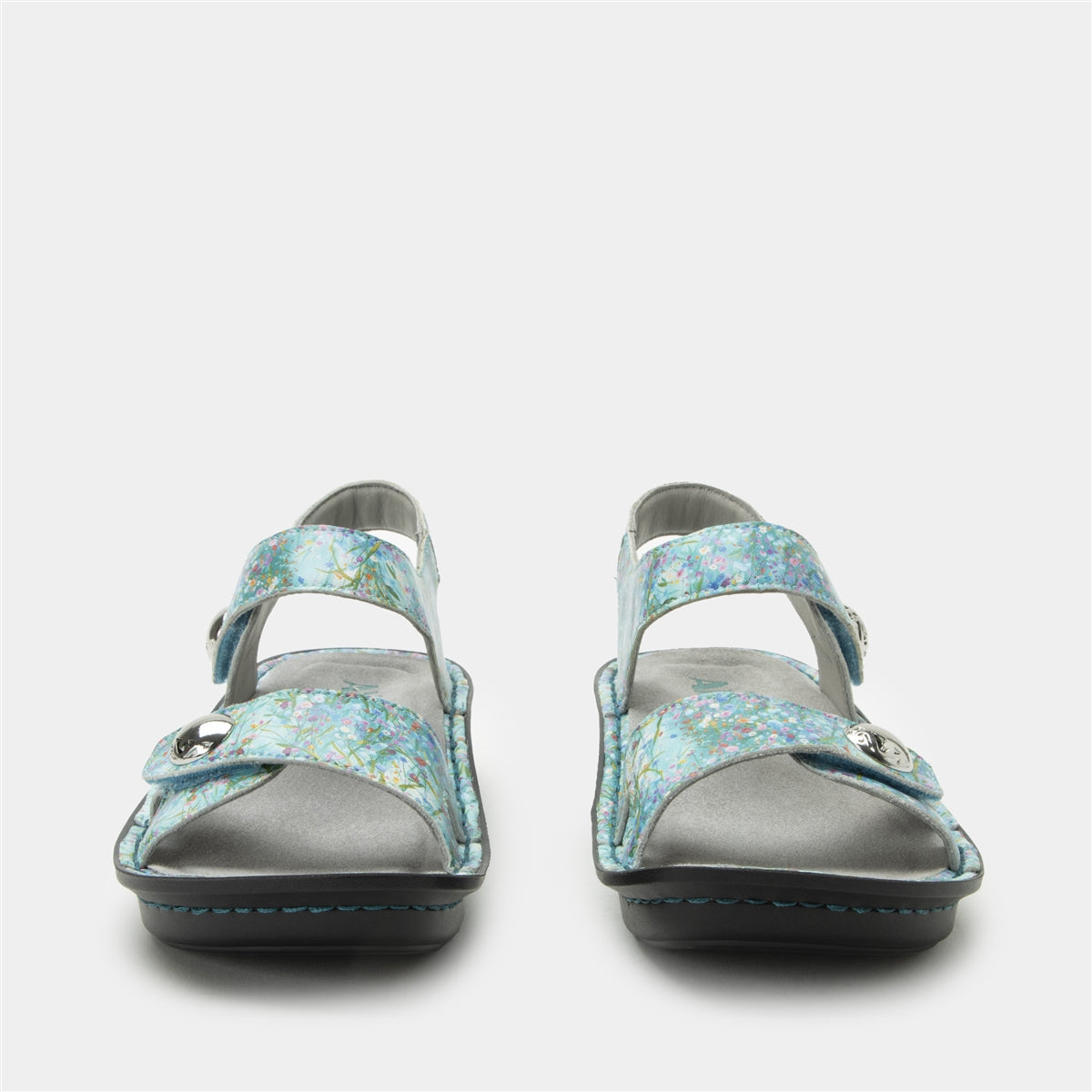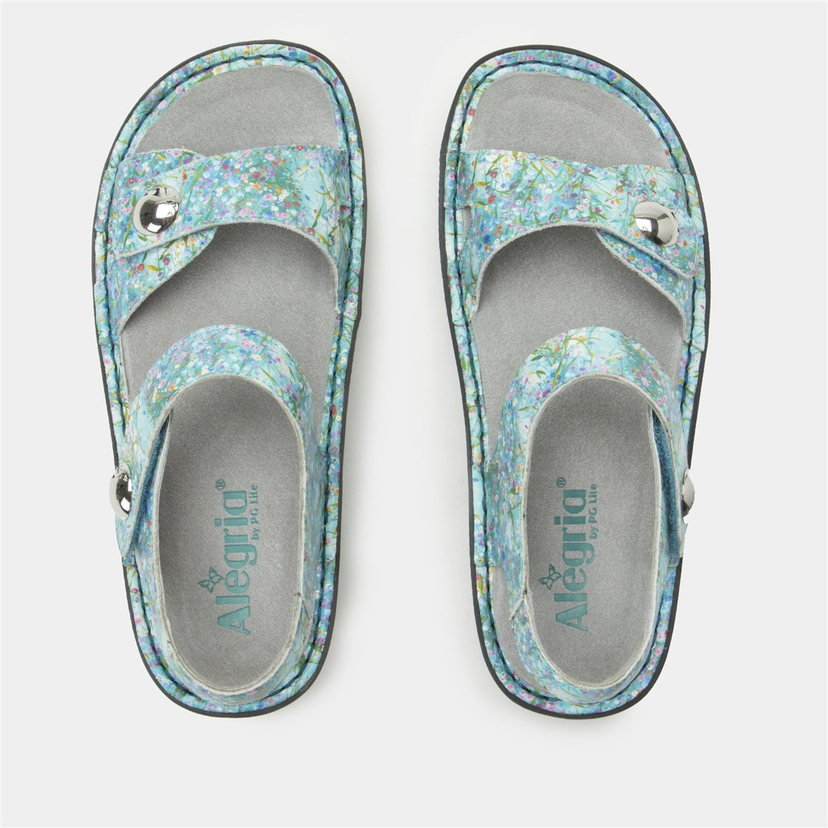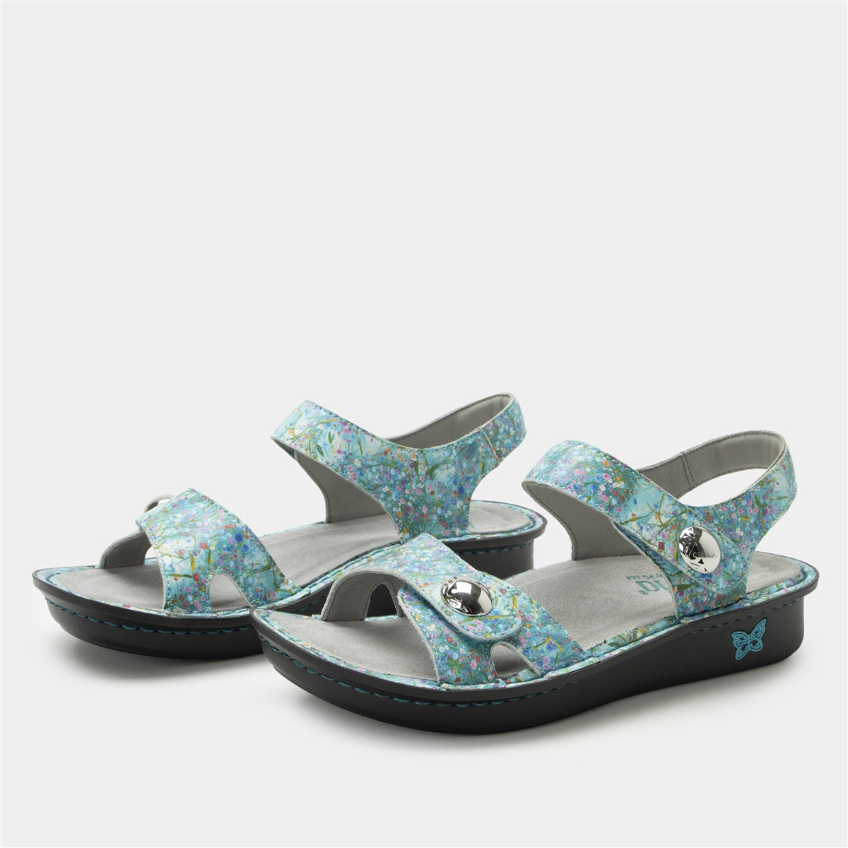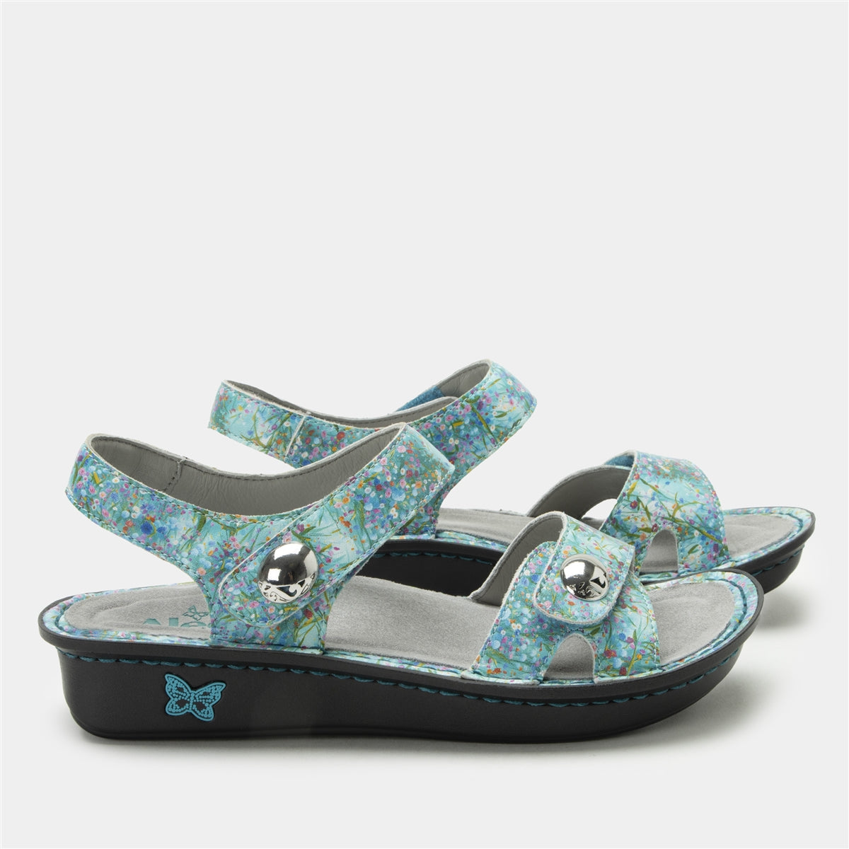 Elevate your warm-weather wardrobe with the Alegria Vienna sandal in Aqua Flora, showcasing vibrant floral patterns on premium leather straps. Designed with two adjustable hook-and-loop closures and a 1-inch heel on the mini-rocker outsole, this sandal offers a personalized fit and stylish comfort. The removable footbed delivers exceptional arch support and long-lasting wear, perfect for sunny days and casual outings.Features you will find in every Alegria Vienna sandal style include: