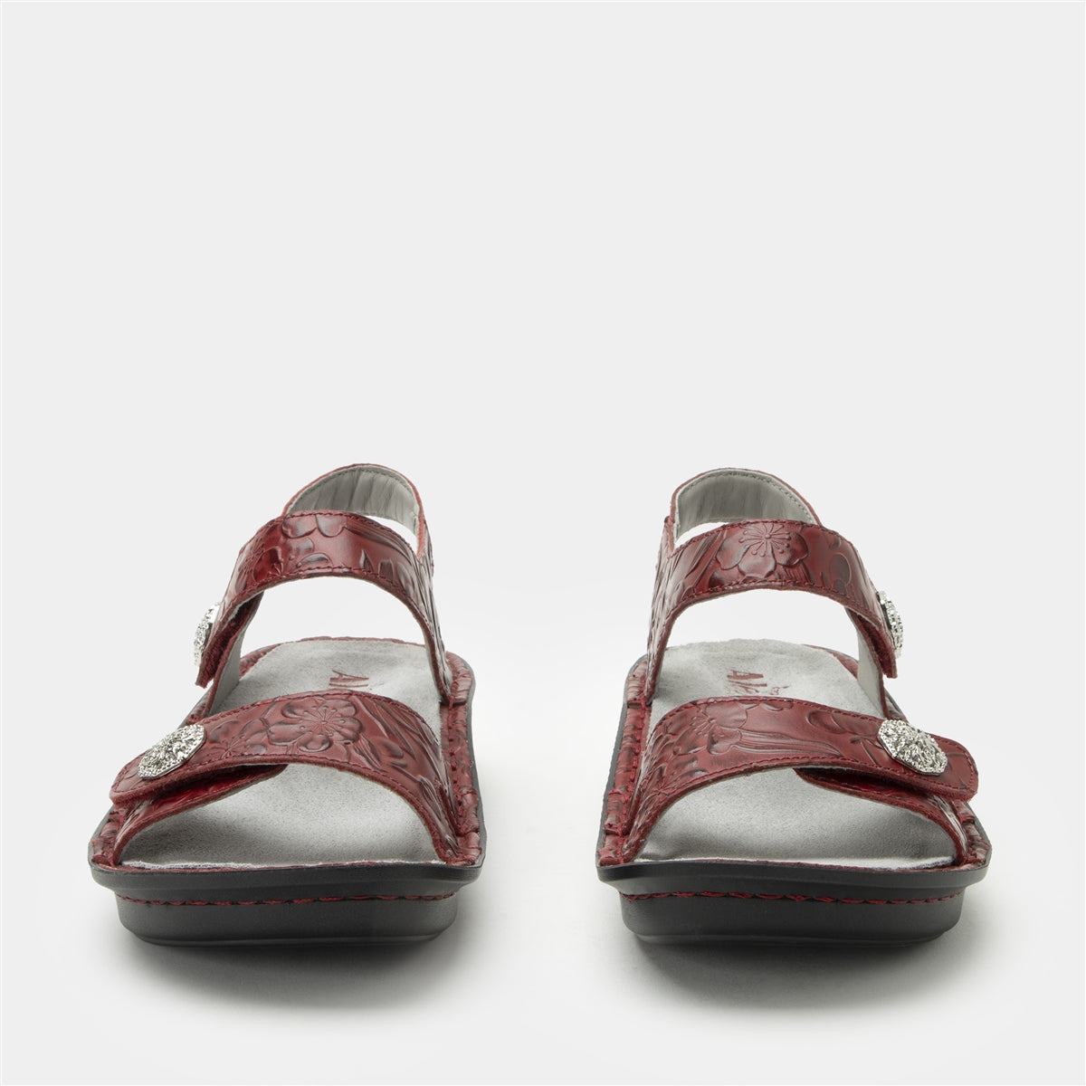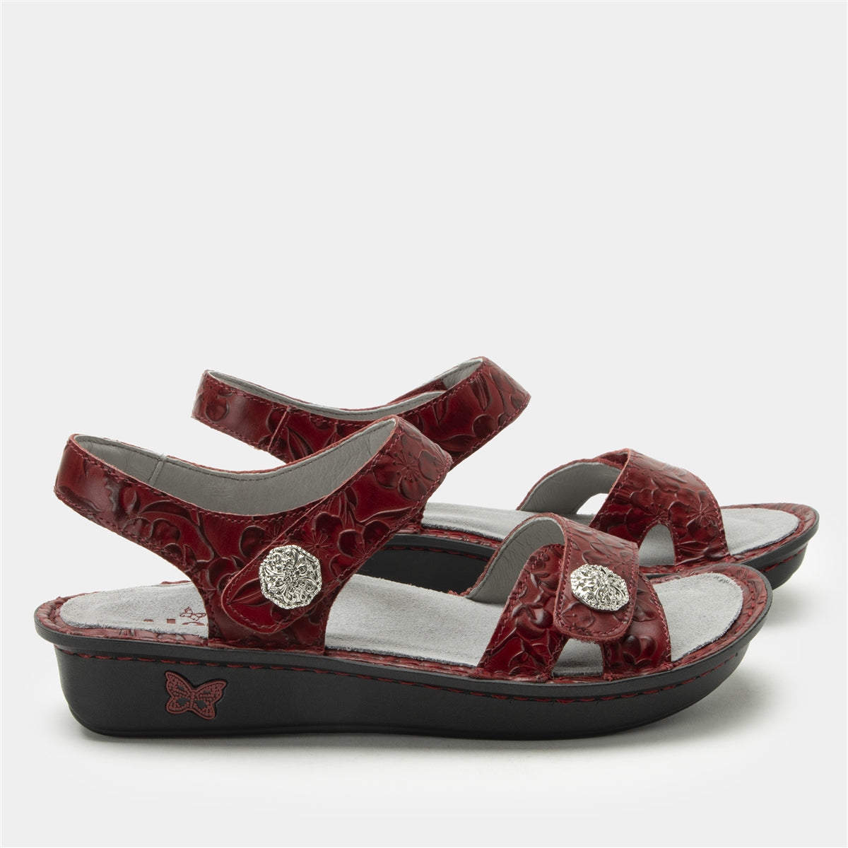 Add a splash of color and flair to your wardrobe with the Alegria Vienna sandal in Loretta Roja. The striking red leather straps, accented with intricate hand-stitching and metal-toned adornments, make this sandal a standout choice. With two adjustable hook-and-loop closures, you’ll enjoy a perfect fit every time. The signature removable and replaceable footbed offers excellent arch support, while the slip-resistant mini-rocker outsole keeps you stable and stylish. Whether strolling through town or heading to an evening event, the Vienna in Loretta Roja ensures comfort and style all day long.Features you will find in every Alegria Vienna sandal style include: