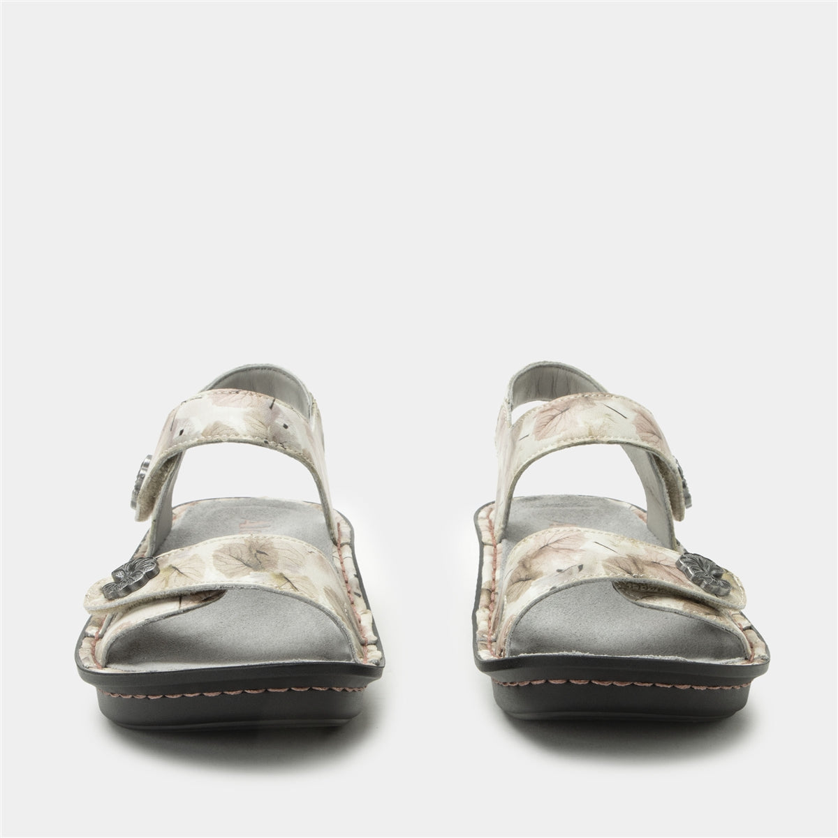 Add a touch of nature-inspired elegance with the Alegria Vienna sandal in Soft As I Leaf You, featuring soft green leather straps with delicate leaf patterns. Two adjustable hook-and-loop closures and a 1-inch heel on the mini-rocker outsole ensure a personalized fit and comfortable wear. The removable footbed offers superior arch support and long-lasting durability, perfect for stylish outdoor adventures and everyday comfort.Features you will find in every Alegria Vienna sandal style include: