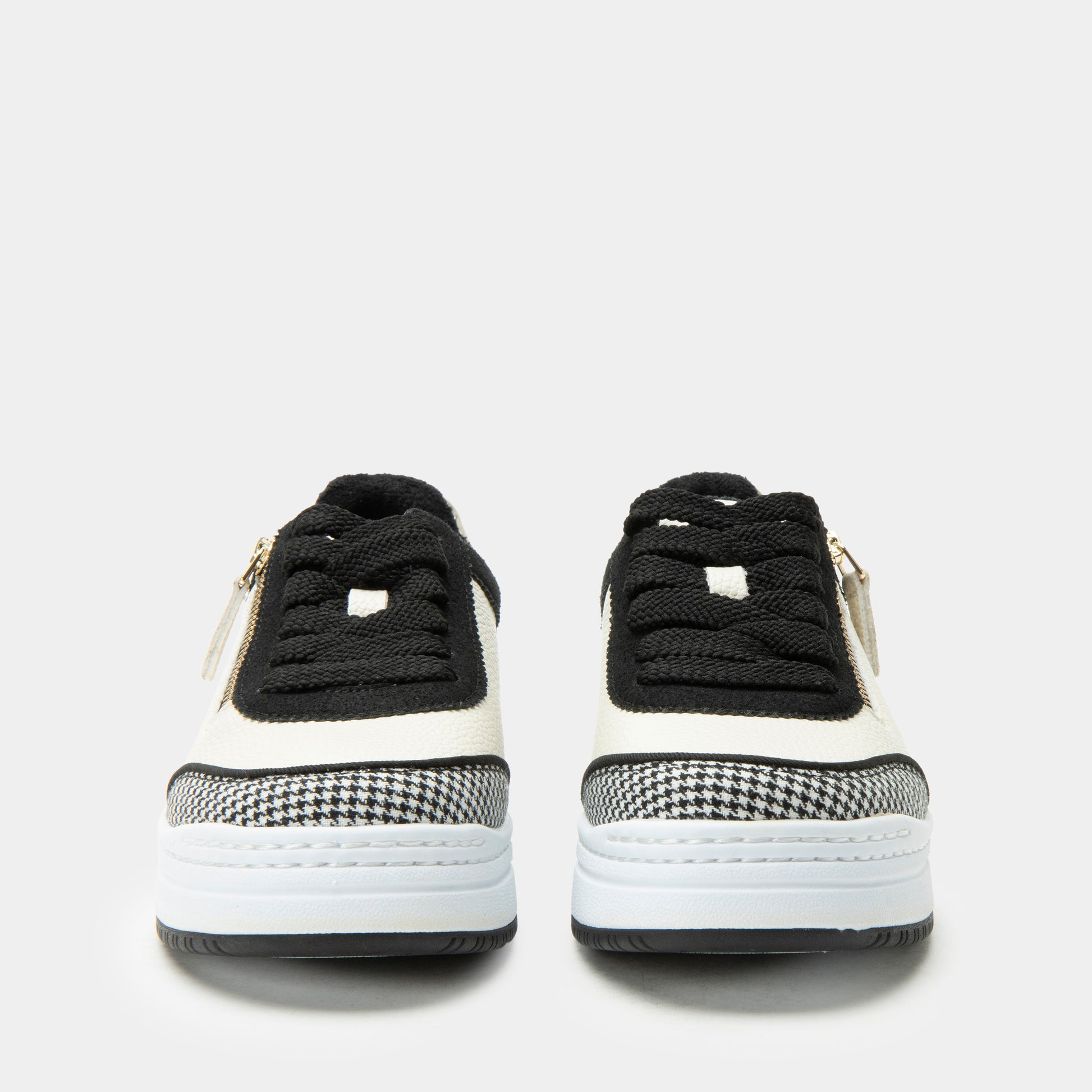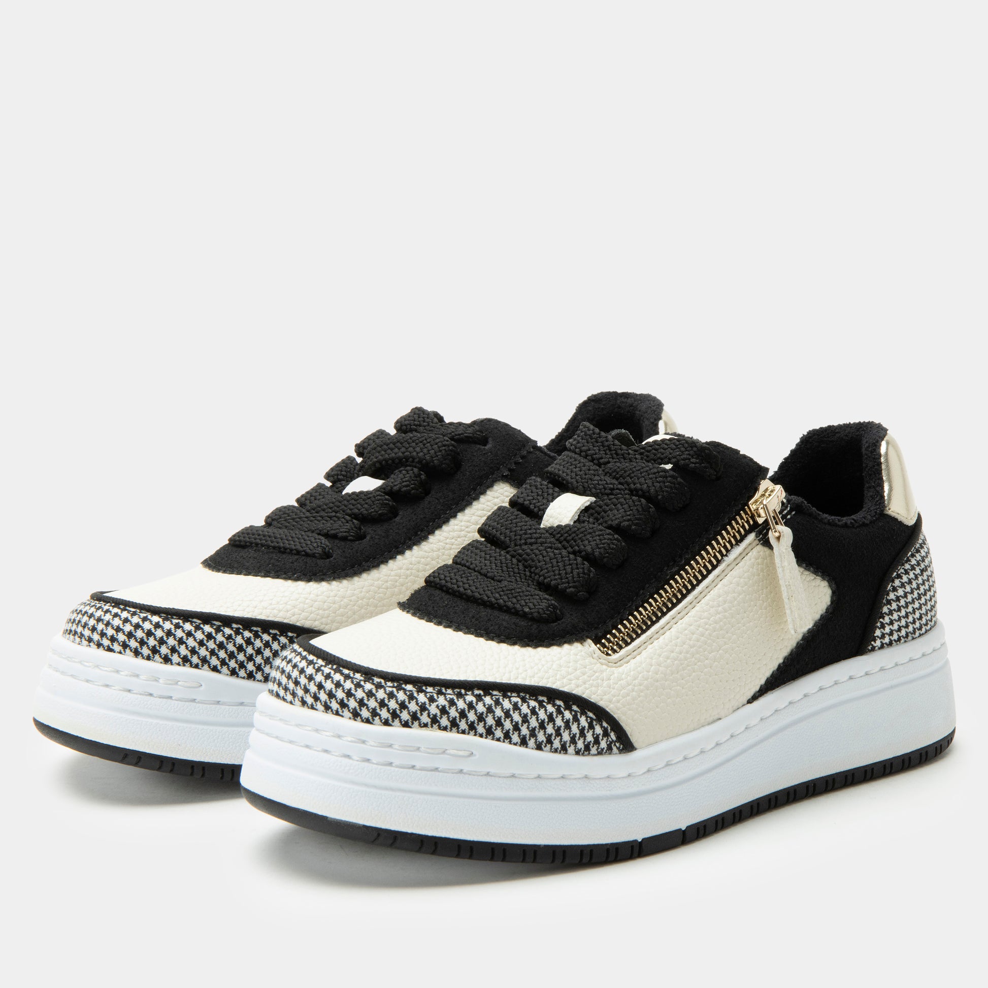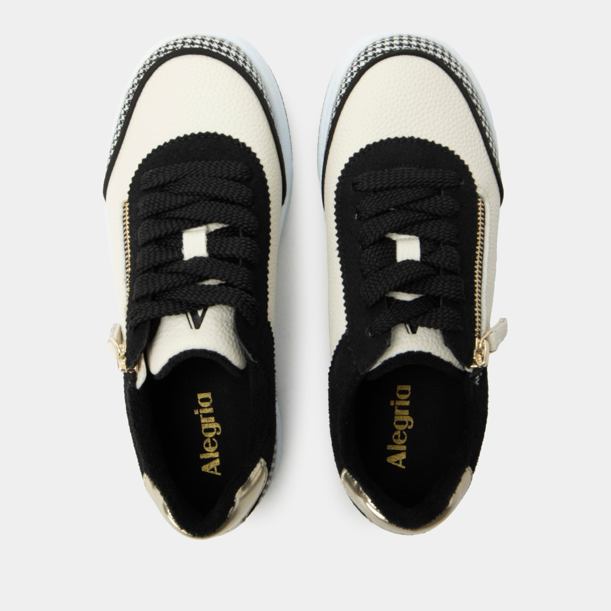 Bring a bold touch to your wardrobe with the Alegria Averie in Houndstooth Black. This retro-inspired sneaker features a slip-resistant EVA Sportform outsole for lightweight comfort, a mix of vegan leather and textured fabric for a modern edge, and a convenient side zipper for easy wear. The cushioned, supportive footbed promotes all-day comfort and foot health, making it perfect for everyday style and function.Additional Benefits: