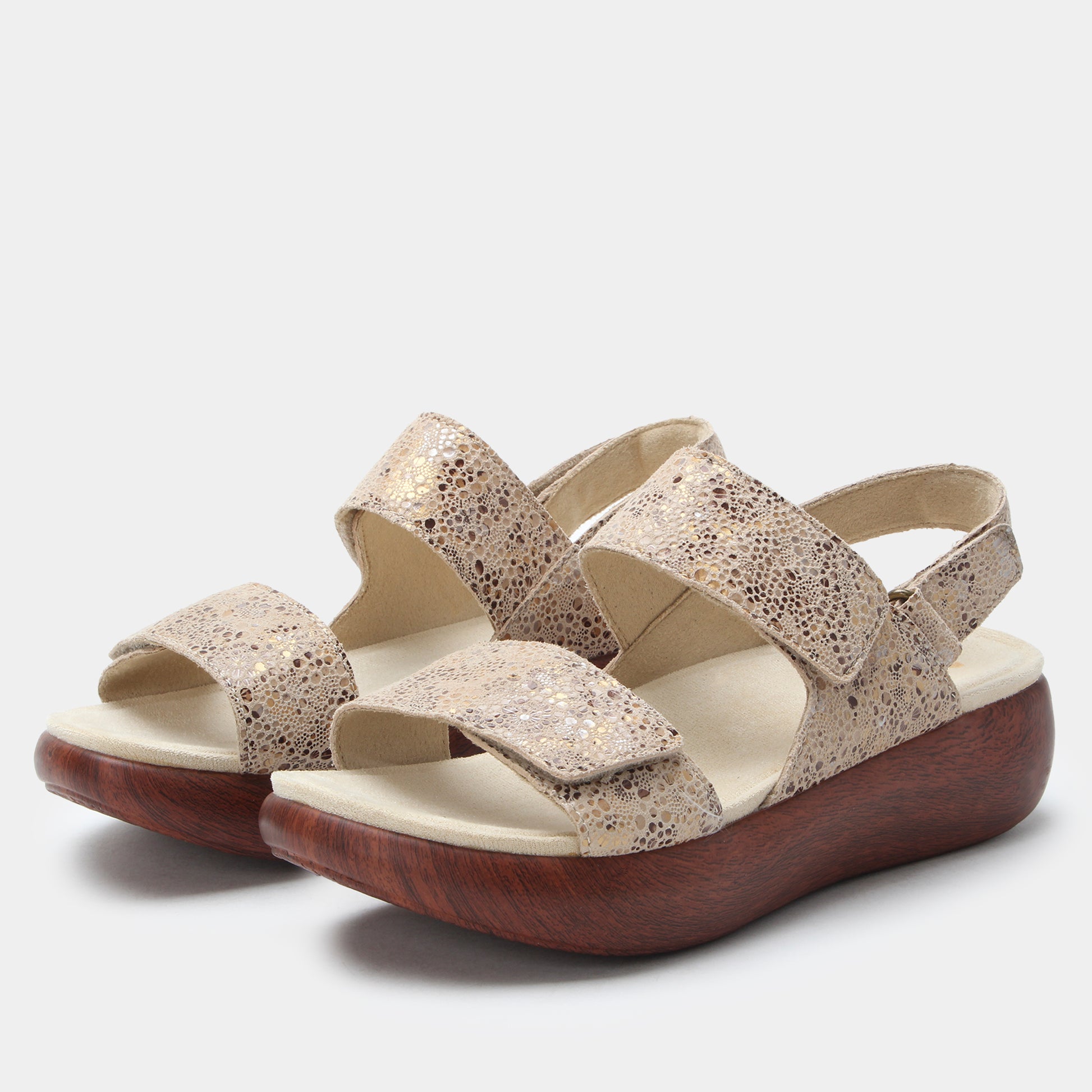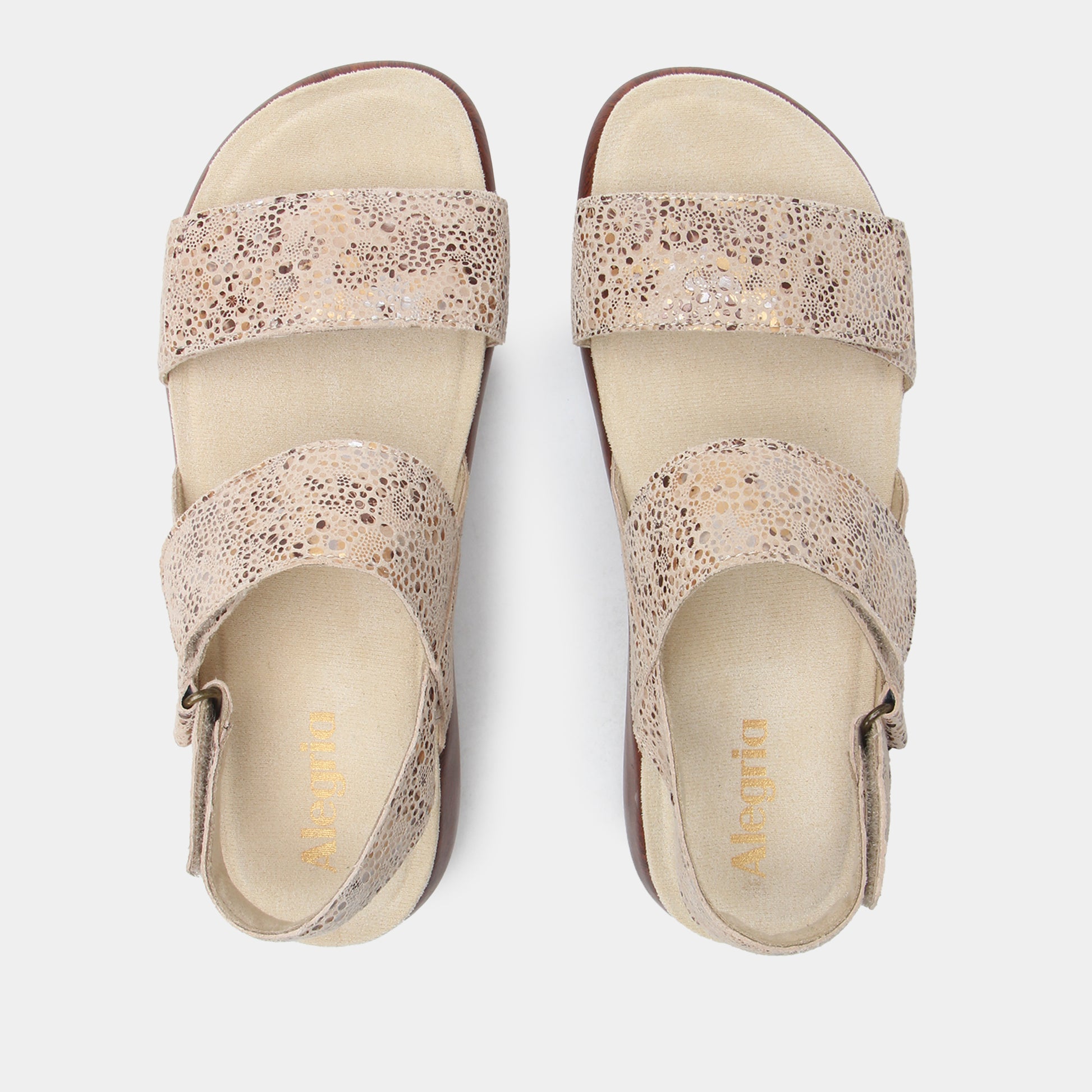 The Alegria Bailee in Walkway offers a warm-weather blend of comfort, support, and understated shimmer. Designed with a soft textured upper featuring subtle metallic accents, this sandal adds a touch of elegance to everyday outfits. Three adjustable hook-and-loop straps allow for a fully customized fit, while the cushioned microsuede footbed provides gentle support to keep you comfortable throughout the day.