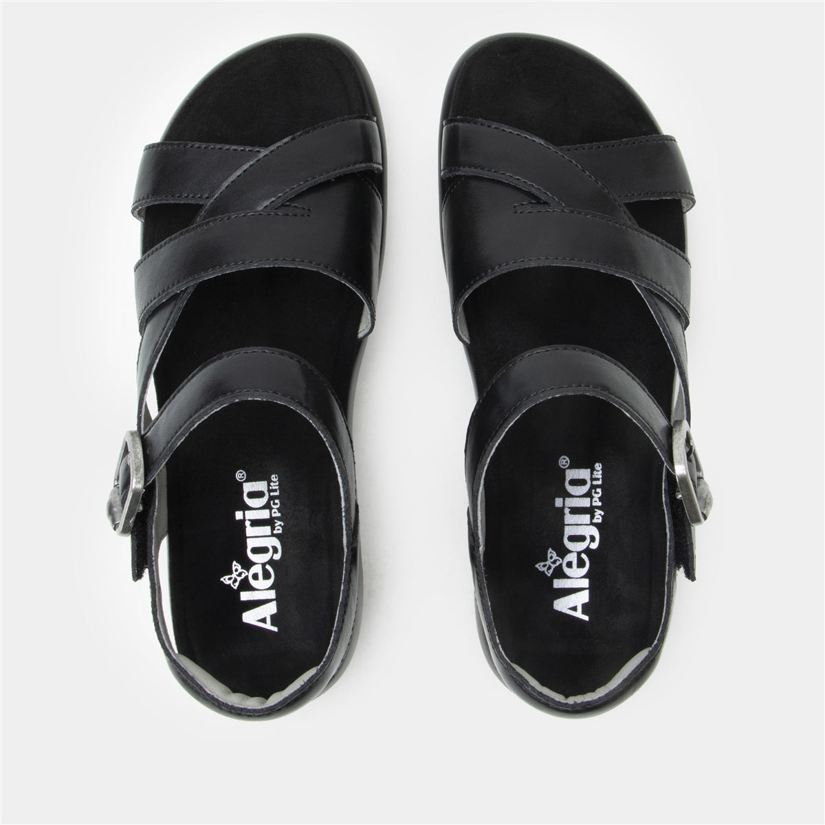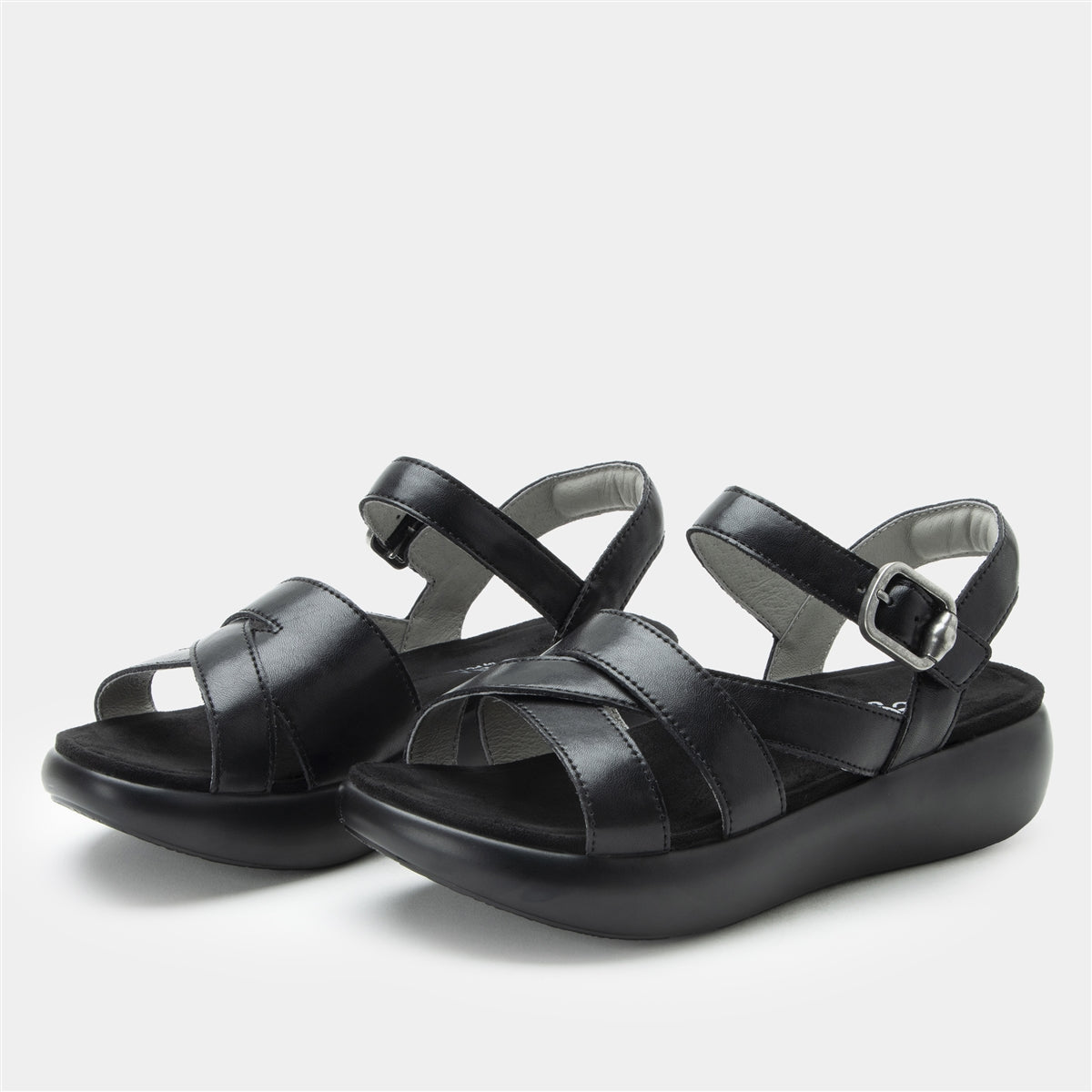 Enjoy effortless style and comfort with the Alegria Bianca Ink Sandals. Designed with a sophisticated deep Ink leather upper and lining, these sandals offer a modern, versatile look that pairs beautifully with any wardrobe. Whether dressing up or down, the Bianca keeps your feet supported while elevating your style. Featuring double built-in arch support in both the insole and outsole, these sandals ensure superior comfort for all-day wear. The durable printed microsuede footbed provides a plush feel, while the padded heel counter strap adds extra stability. An adjustable hook-and-loop ankle strap ensures a secure and customized fit. The non-flexing rocker outsole promotes natural movement and balance, while the slip-resistant, non-marking outsole delivers traction on various surfaces.Why You Will Love the Alegria Bianca Ink Sandals