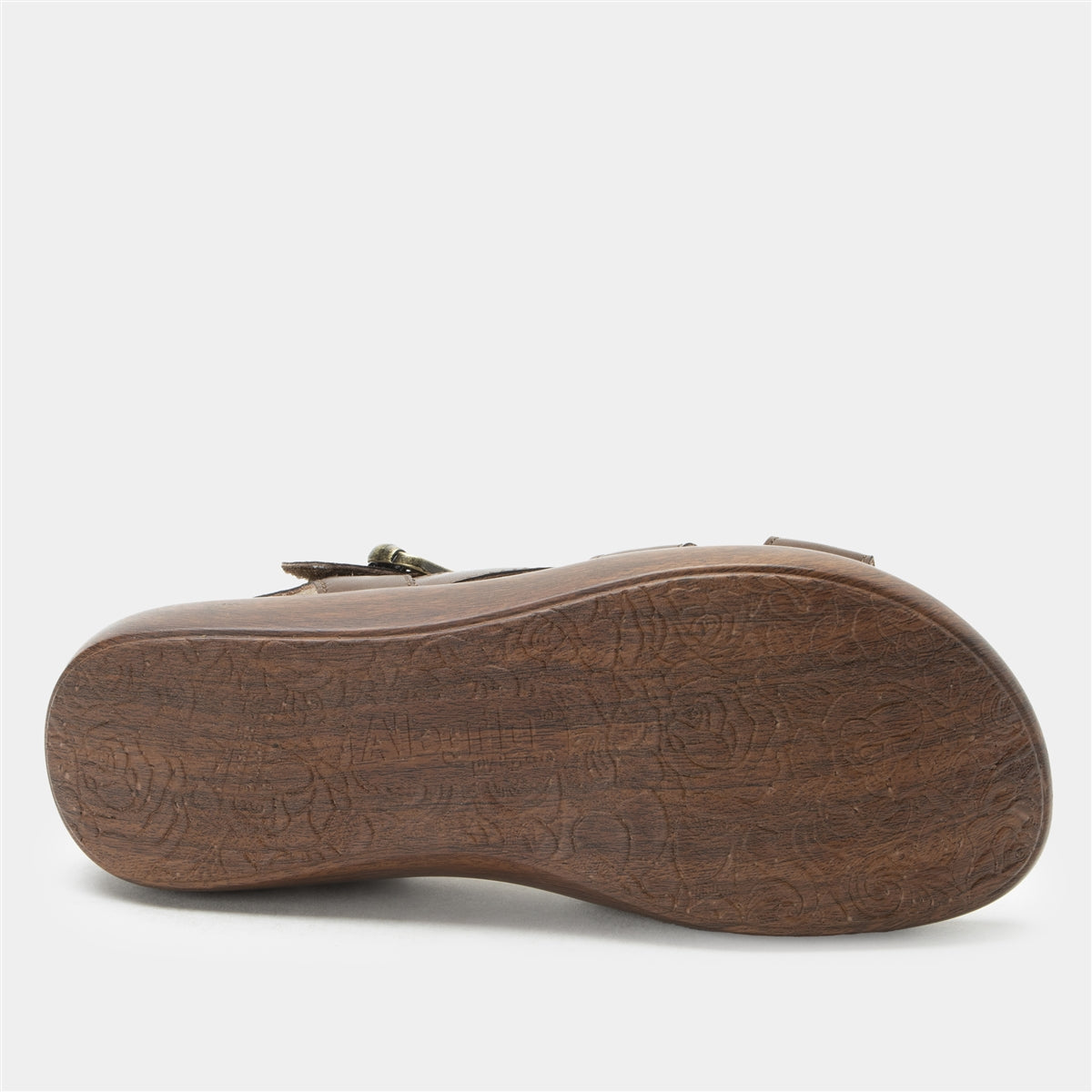 Experience the perfect balance of elegance and comfort with the Alegria Bianca Walnut Sandals. Crafted with a rich Walnut leather upper and lining, this versatile sandal offers durability and a timeless appeal that pairs effortlessly with any outfit. Whether for casual wear or an elevated look, the Bianca keeps your feet supported in style. Designed with double built-in arch support in both the insole and outsole, these sandals provide exceptional comfort, while the durable printed microsuede footbed adds a soft, luxurious feel. A padded heel counter strap enhances stability, and the adjustable hook-and-loop ankle strap ensures a secure, customized fit. The non-flexing rocker outsole promotes natural movement and balance, while the slip-resistant, non-marking outsole offers reliable traction on various surfaces.Why You Will Love the Alegria Bianca Walnut Sandals
