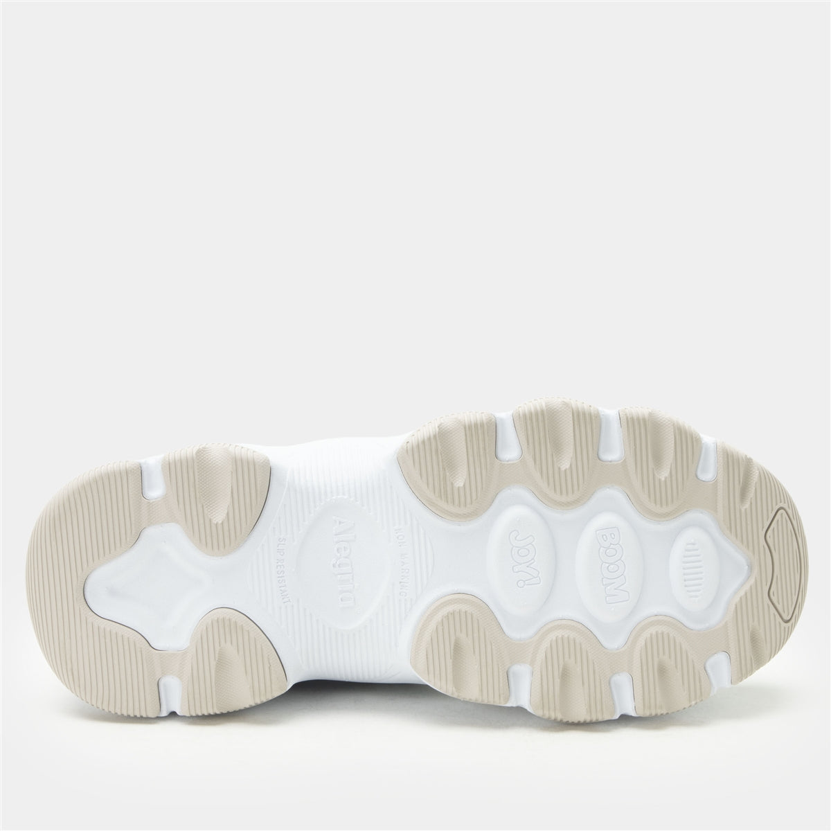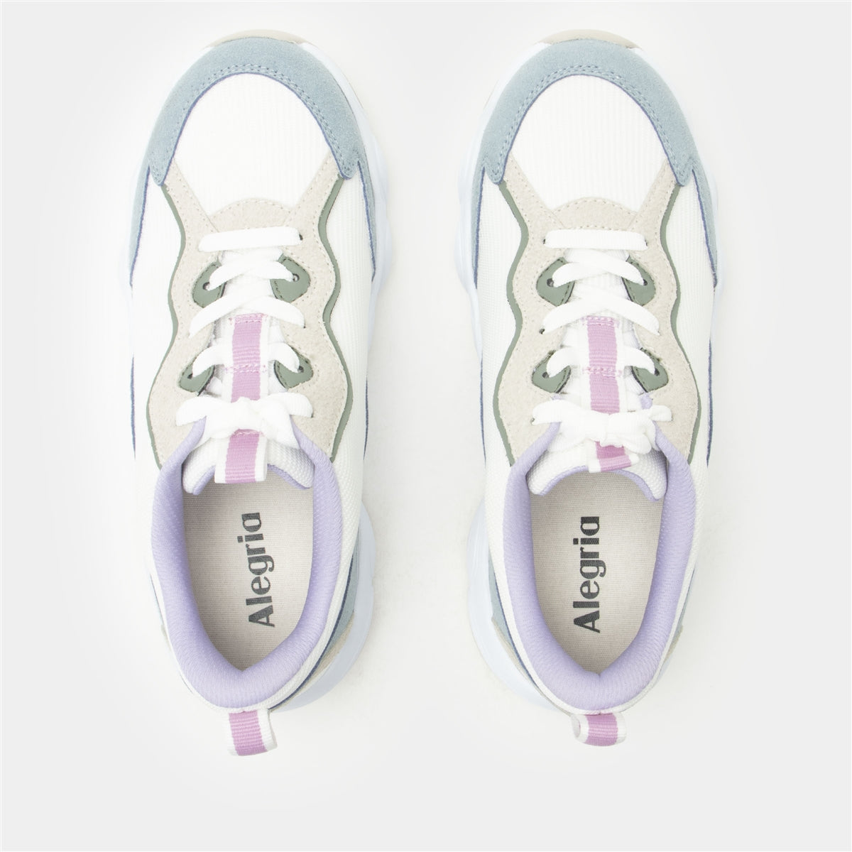 Step into effortless style with the Alegria Boom Joy sneaker in Desert Garden, featuring a sleek combination of white, soft blue, and beige tones. This Alegria sneaker includes a chunky slip-resistant sole and a lace-up design for modern comfort and versatility. Designed for year-round wear, it offers exceptional support and all-day comfort for any activity.