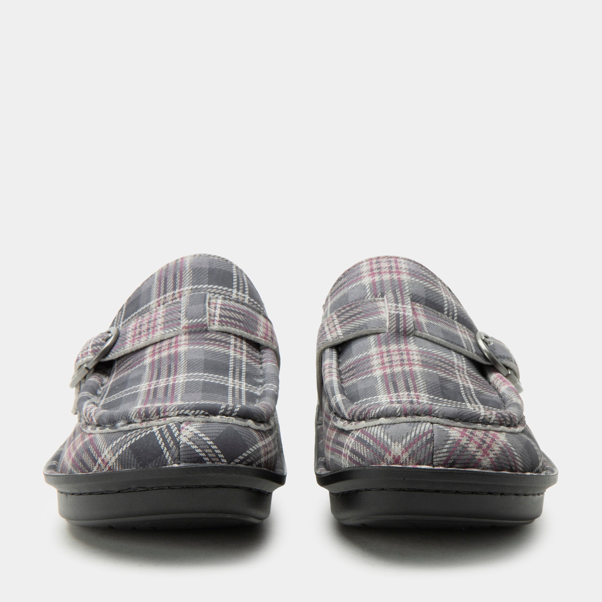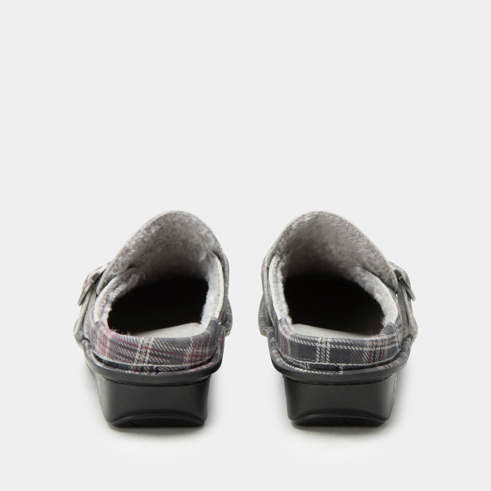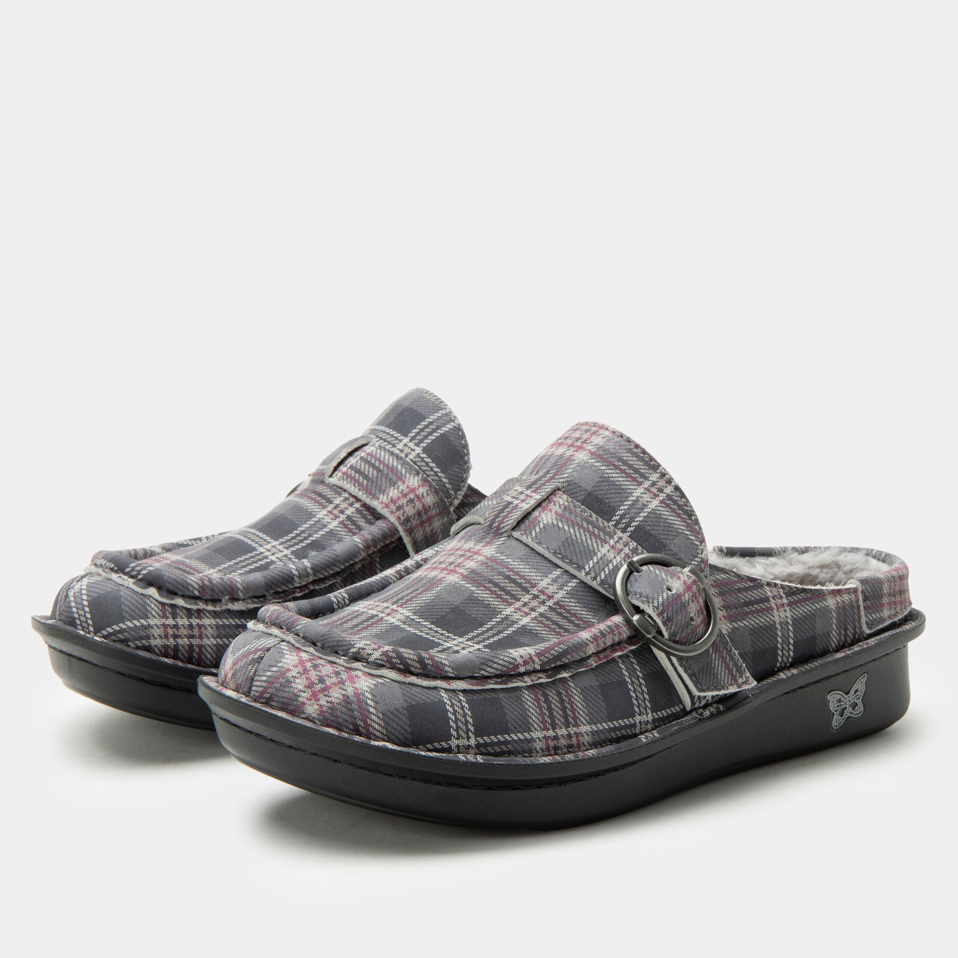 Cozy up in plaid with the Brigid in Winter Is Coming Sherpa. This slip-on style features a grey and burgundy plaid pattern with a soft sherpa lining to keep your feet warm through chilly days. The decorative side buckle adds a touch of rustic charm, while Alegria’s patented footbed provides the perfect balance of cushioning and support. With its slip-resistant outsole, this versatile shoe is ideal for both lounging and casual wear.Additional Benefits: