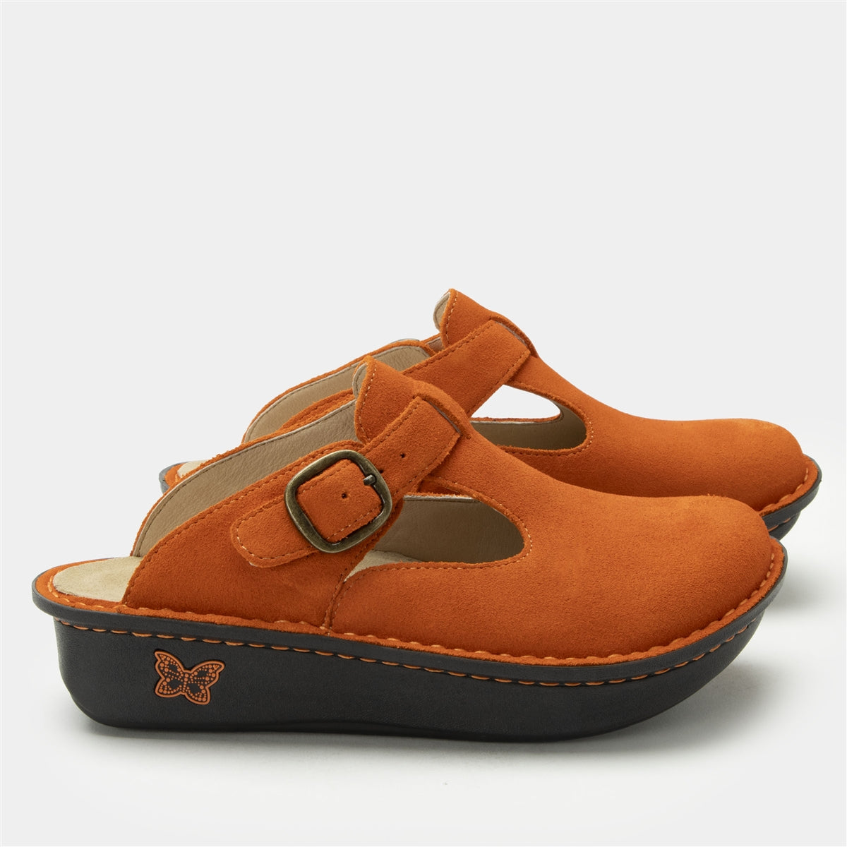 The Alegria Classic in Orange You Glad features a vibrant orange suede leather that adds a bold pop of color to this beloved clog. Crafted for superior comfort, it helps alleviate foot, back, and knee pain, making it especially beneficial for those with plantar fasciitis. With a cushioned footbed and excellent support, this clog delivers all-day relief and standout style.Additional Benefits: