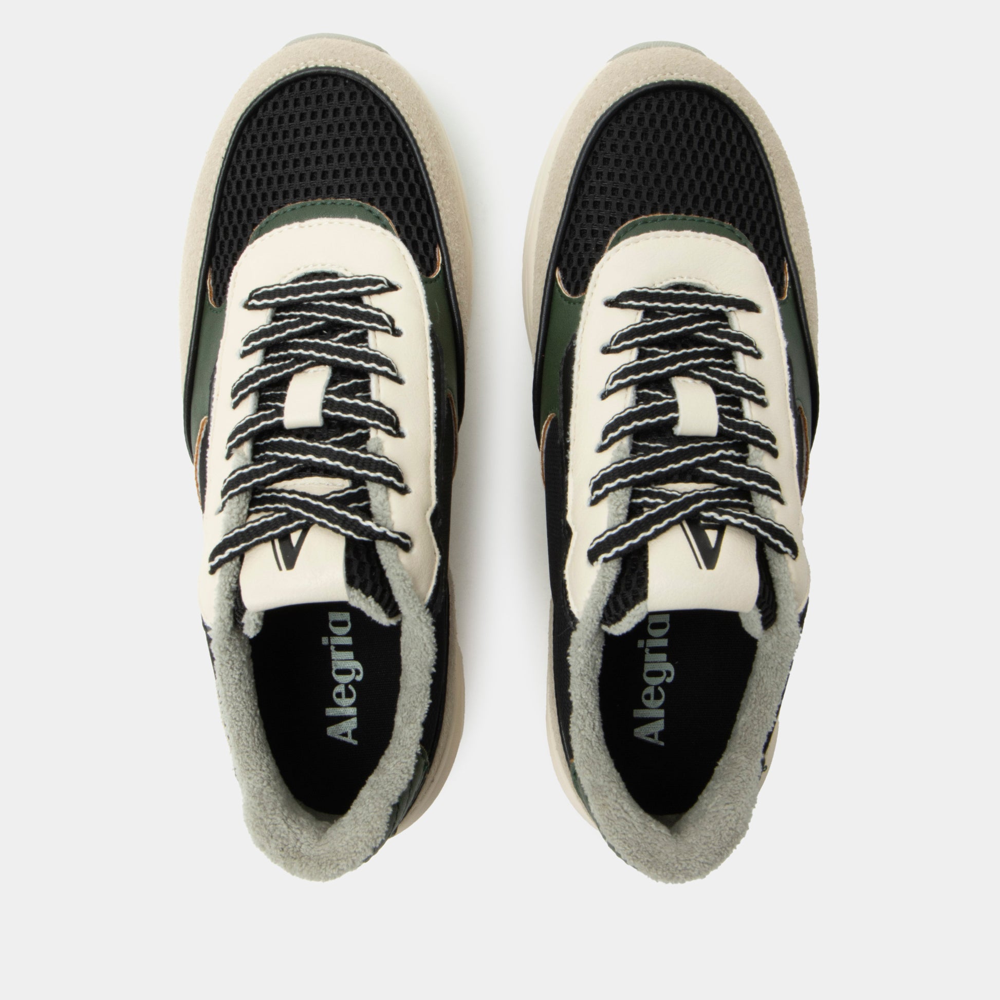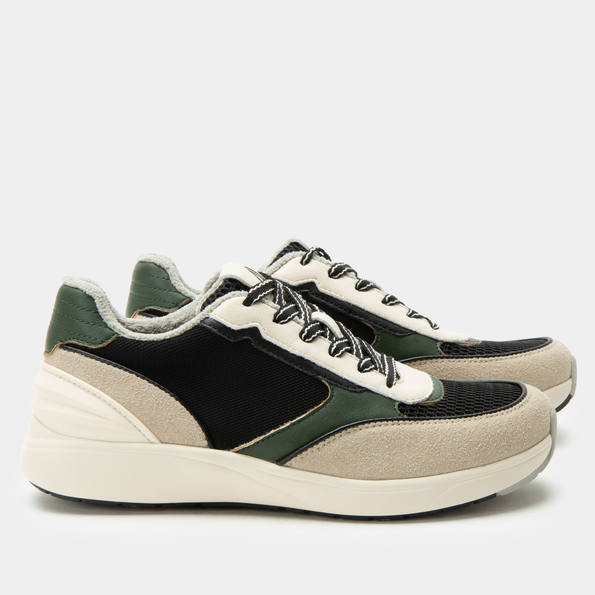 Step into style and all-day support with the Alegria Embyr in Emerald. Blending earthy tones of green, black, cream, and beige with unique textural accents, this sneaker delivers a modern athleisure vibe that works just as well for casual outings as it does for active days. Designed for comfort, it features a cushioned insole, breathable mesh panels, and a durable outsole for dependable stability. Whether you are strolling through the park, running errands, or enjoying a weekend adventure, the Embyr in Emerald offers a perfect balance of style and function.Additional Benefits: