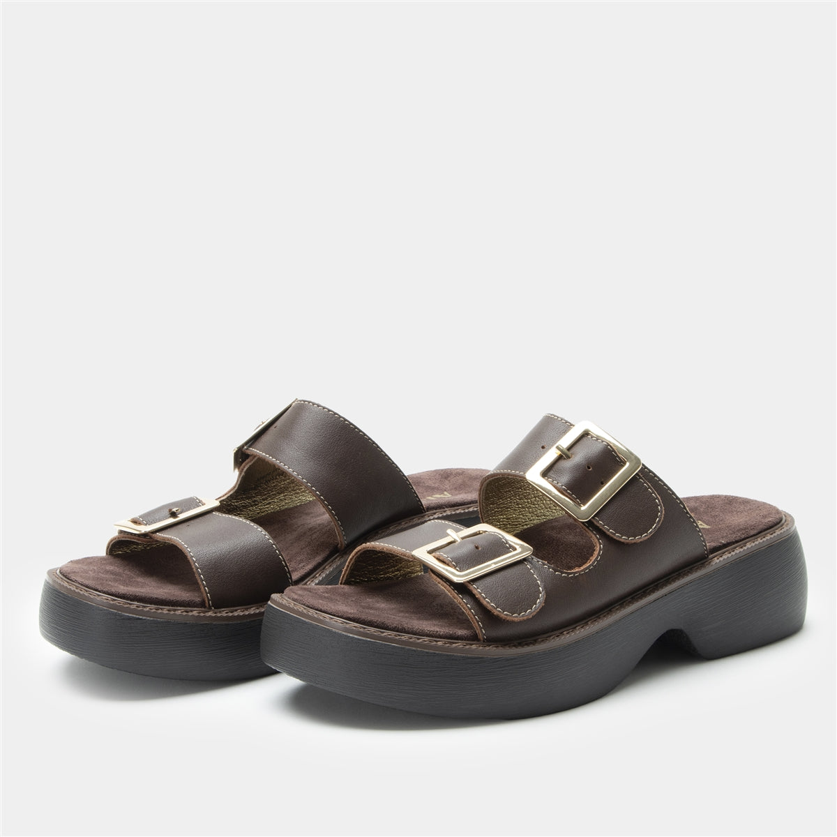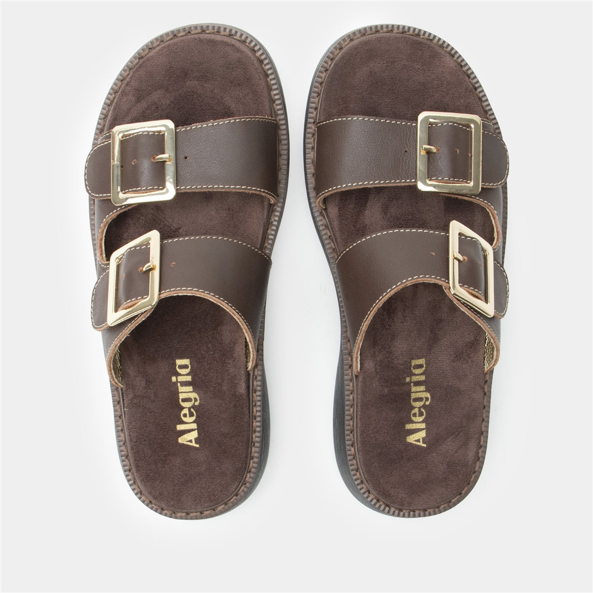 Step into '90s nostalgia with the Alegria Iza in Chocolate, a platform slide sandal that blends retro charm with modern comfort. Featuring two adjustable hook-and-loop closures with decorative buckles, this sandal offers a customizable fit with a rich leather upper. The chunky platform sole adds just the right amount of height while maintaining a relaxed, effortless feel. Whether you're dressing up a casual outfit or elevating your summer wardrobe, the Iza in Chocolate delivers all-day support with undeniable style.Additional Benefits: